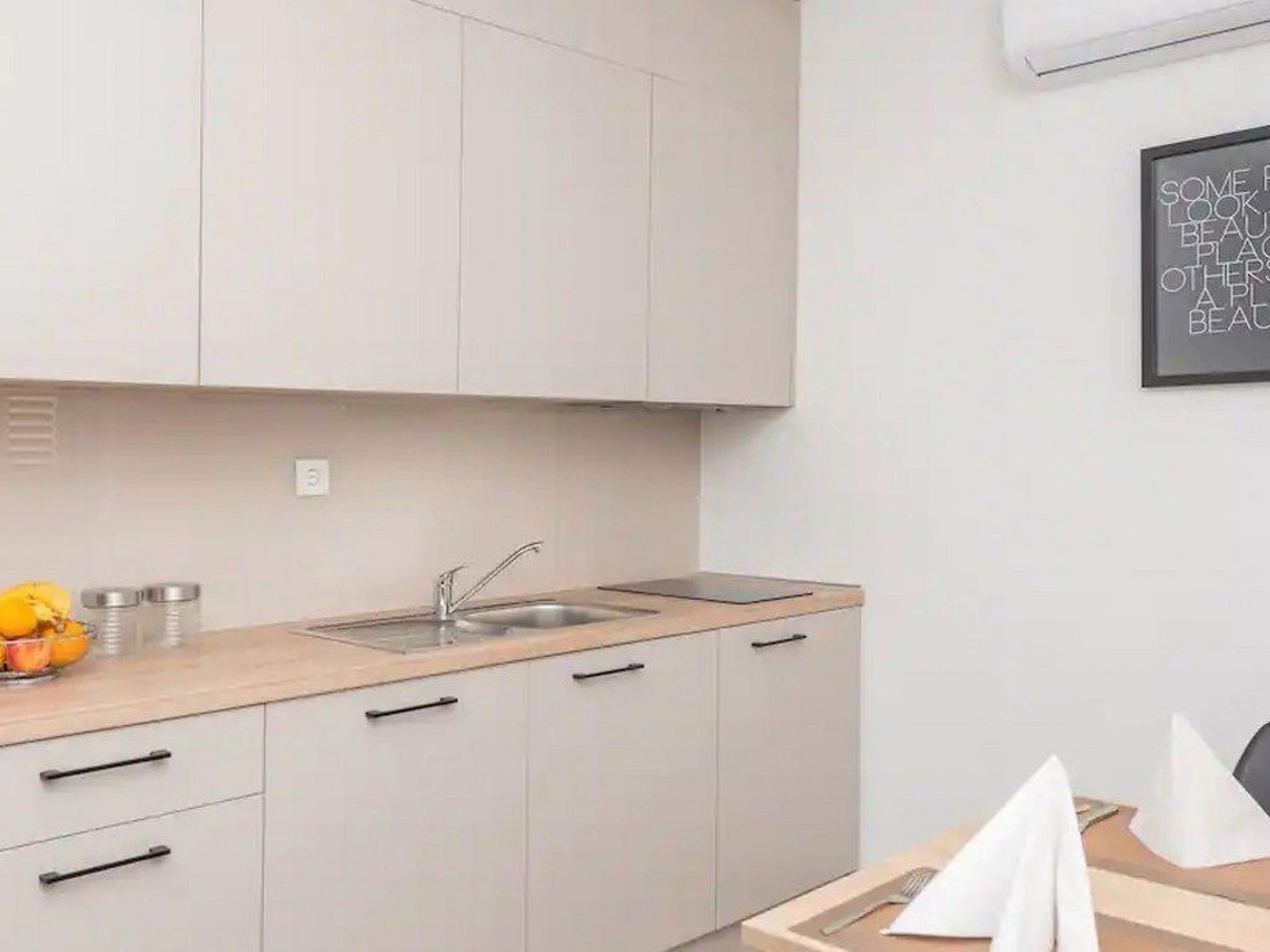 Inside, you will find carefully furnished accommodation equipped with everything you need to make your stay as comfortable as possible. The high-quality building materials, together with thoughtful amenities such as air conditioning to keep the temperature comfortable throughout the flat and a tumble dryer for your exclusive use, emphasise our commitment to providing you with the best possible living environment.