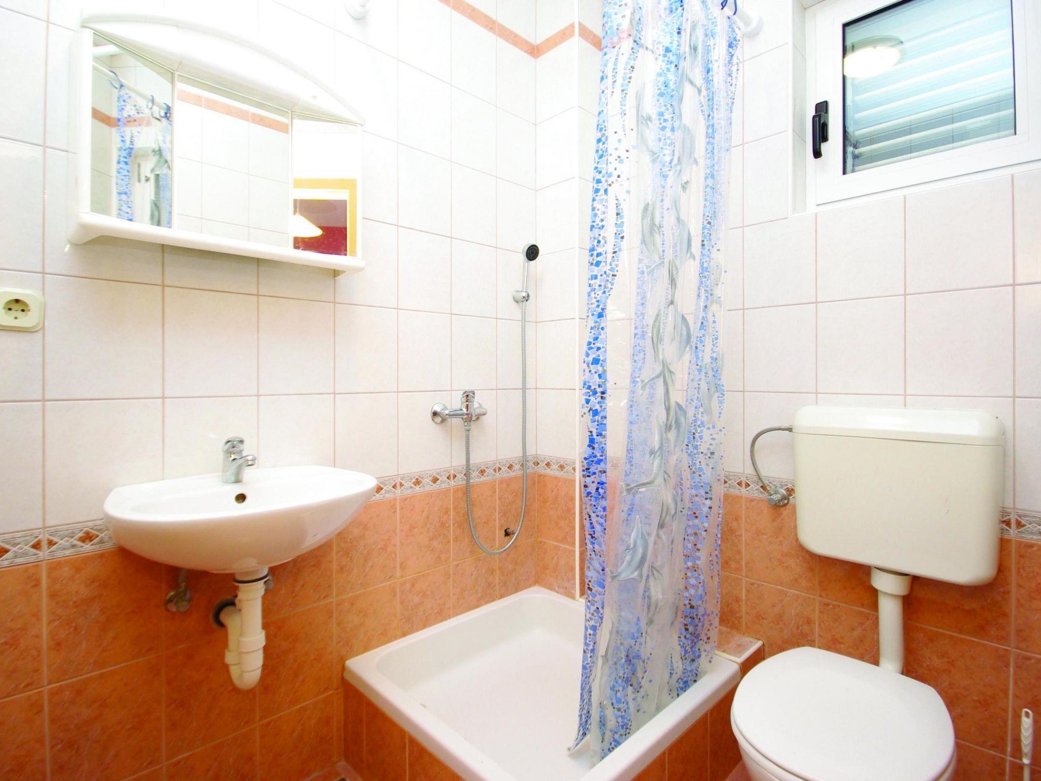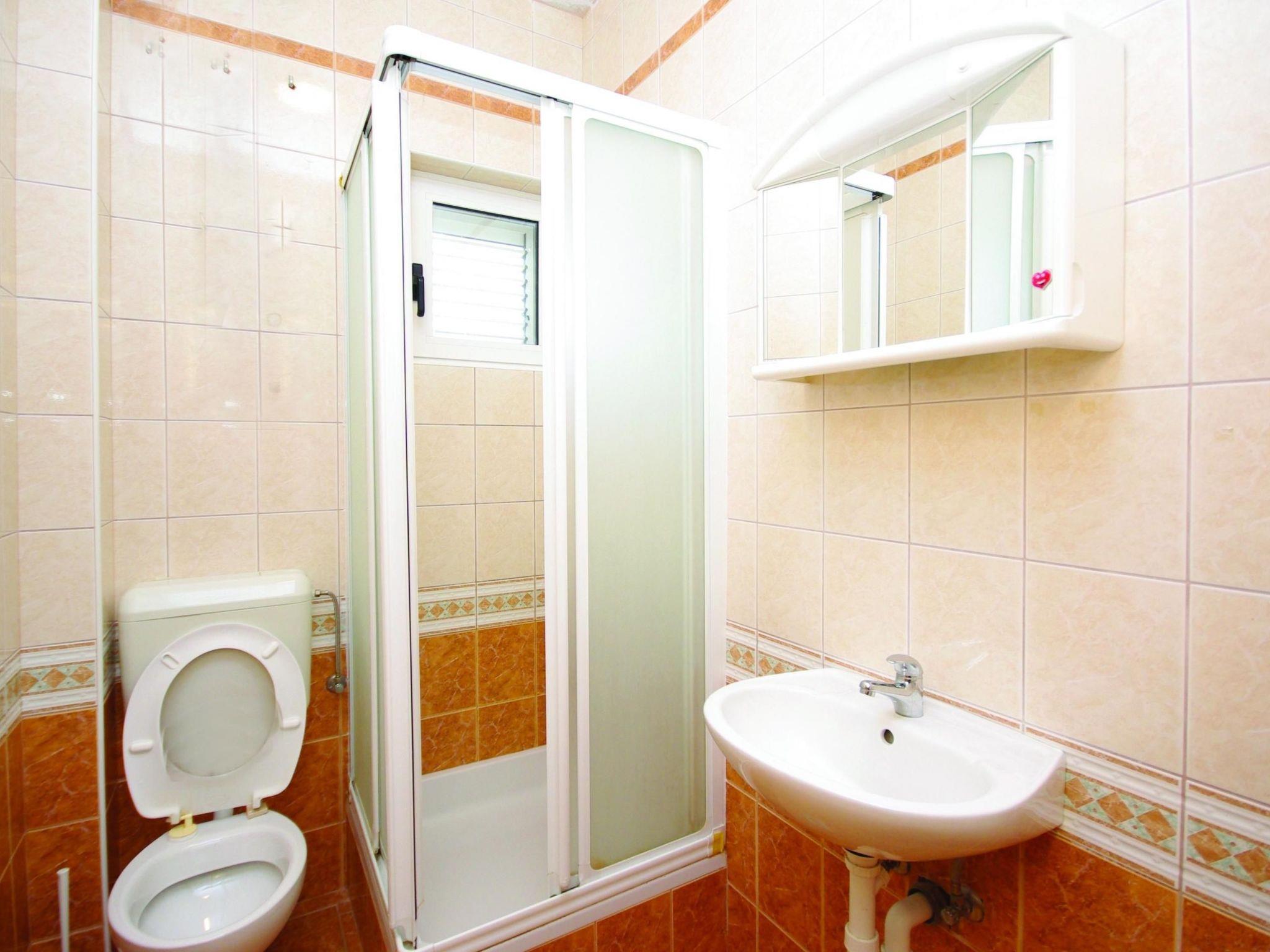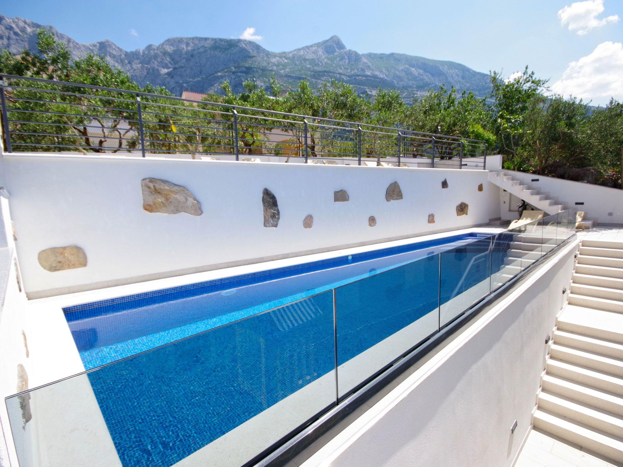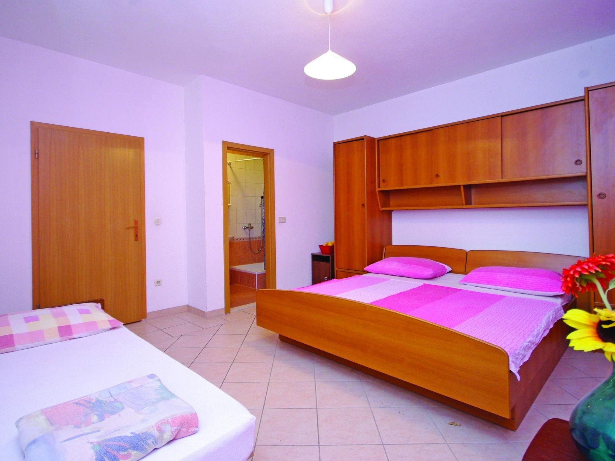 The 110m² apartment is on the first floor. It has three bathrooms with a shower and toilet, and three bedrooms. Each bedroom has a double bed and a single bed. There is also a sofa bed for two people in the living room. The kitchen is equipped with a hob, oven, coffee machine, microwave, kettle and fridge. House have pool and playground for children's.