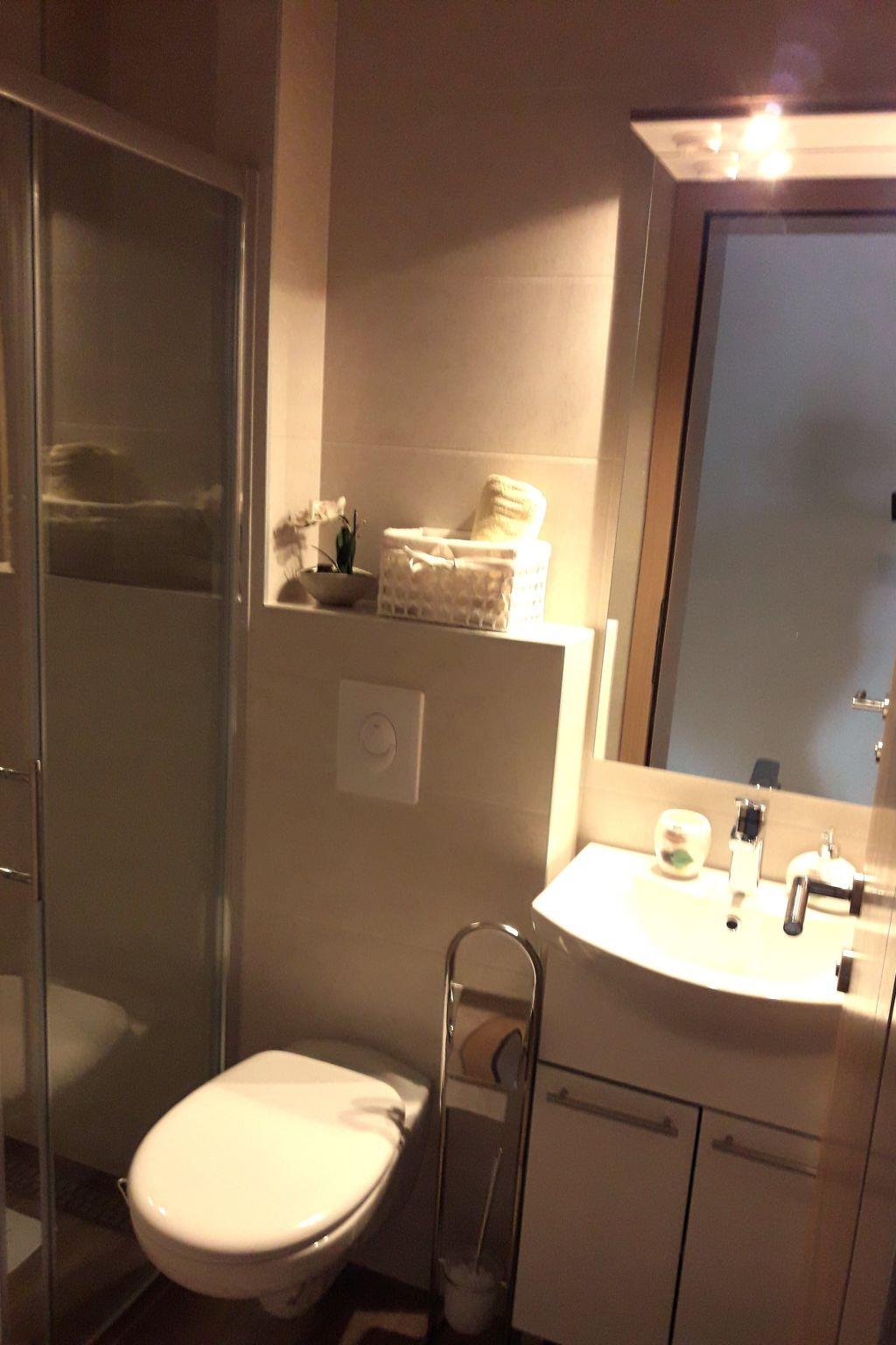 The house has three floors, but the second floor is closed. This makes the holiday flat ideal for a shared and relaxing holiday with groups of friends or a large family of up to twelve people, while still offering plenty of privacy. Built in 2013, emphasis was placed on comfortable and modern furnishings. On two living areas totalling 260 square metres, you are welcomed into six bedrooms, five of which have a double bed and one has two single beds. The living space is divided into three living and dining areas with three open-plan kitchens. There are also five shower rooms. In four bedrooms you will find a comfortable night's sleep in a double bed with a width of 180 cm. There are two bedside tables with reading lamps on both sides of the bed. The window, which can be fully opened on both sides, gives you a view of the greenery. In one bedroom, a wide double bed (160 cm) also offers you a restful night's sleep and has been furnished with a wardrobe at the headboard. Here, too, you can look out of the window and enjoy the view of nature. Another bedroom is slightly narrower and welcomes you with two single beds, which can be put together on request before your arrival. There is also a wardrobe and a bedside table with a reading lamp in this room. From the window, you can enjoy a sweeping view of the hilly surroundings. In the living room, you can sit together on three comfortable sofas. Three large flat screens with digital satellite TV and TV USB connection allow you to watch international TV as well as organise a film evening using the external USB storage device you have brought with you. On the way from the living room to the kitchen (in two separate flats), you will pass a massive dining table with six upholstered high-back chairs. The three kitchens are equipped with a fridge-freezer, dishwasher, microwave, built-in oven, gas/electric hob and small electrical appliances such as a coffee machine, kettle and toaster for your extensive self-catering needs. All five bathrooms are equipped with a wash hand basin, mirror, WC and shower curtain. While one bathroom has a shower in the bathtub, the others are equipped with a shower in the corner of the room. In addition to bed linen and towels, which are provided free of charge, Internet access via WLAN is also included. Inside the house, all rooms are equipped with air conditioning.