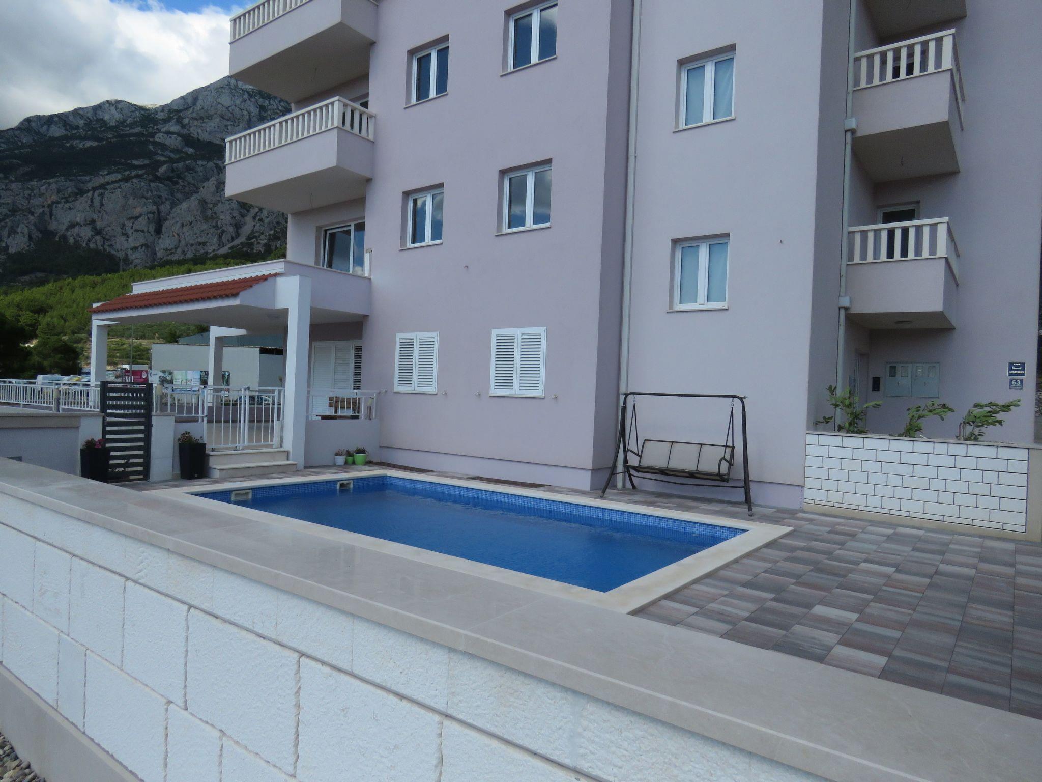 This comfortable and modern holiday flat with pool is located on the ground floor and first floor of an uninhabited private house with private parking and large terraces. The property is located in the eastern part of the town of Makarska, a town in the south of Croatia, southeast of Split, in the immediate vicinity of the city centre.