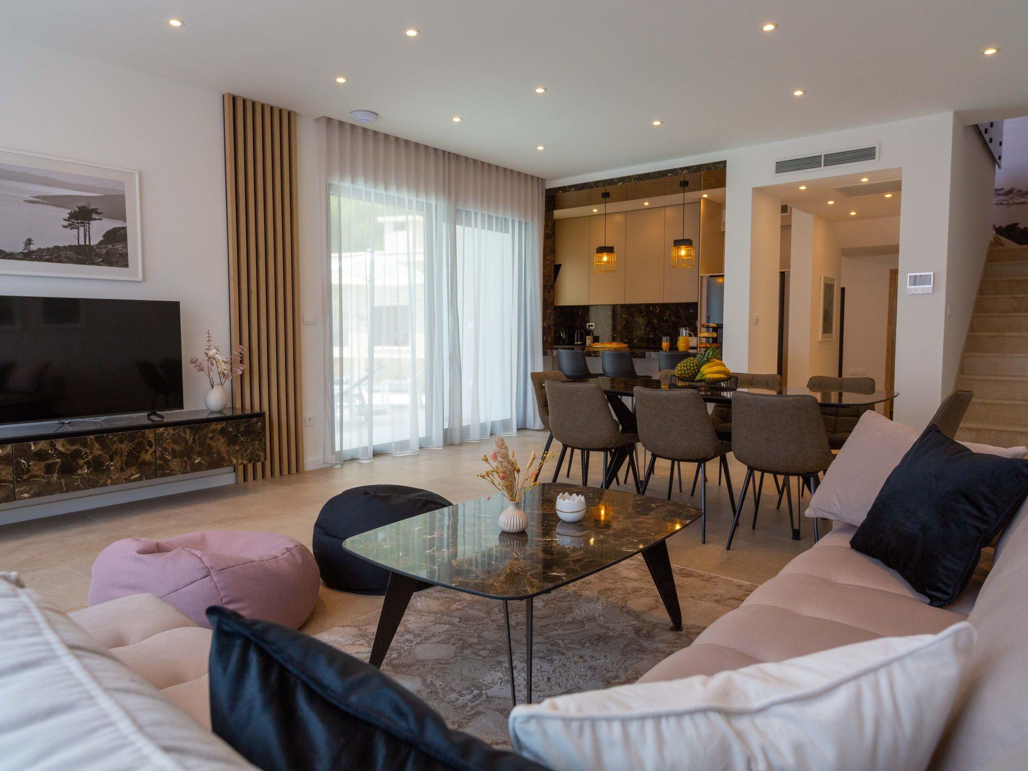 The private swimming pool is ideal to chill out and keep cool in the hot Croatian sun. There is also a dining area and BBQ, hot tub, and exterior shower at the guests’ disposal. The garden is surrounded by a fence for the children’s safety. In this beautiful villa, you can experience some unforgettable moments with family and friends.