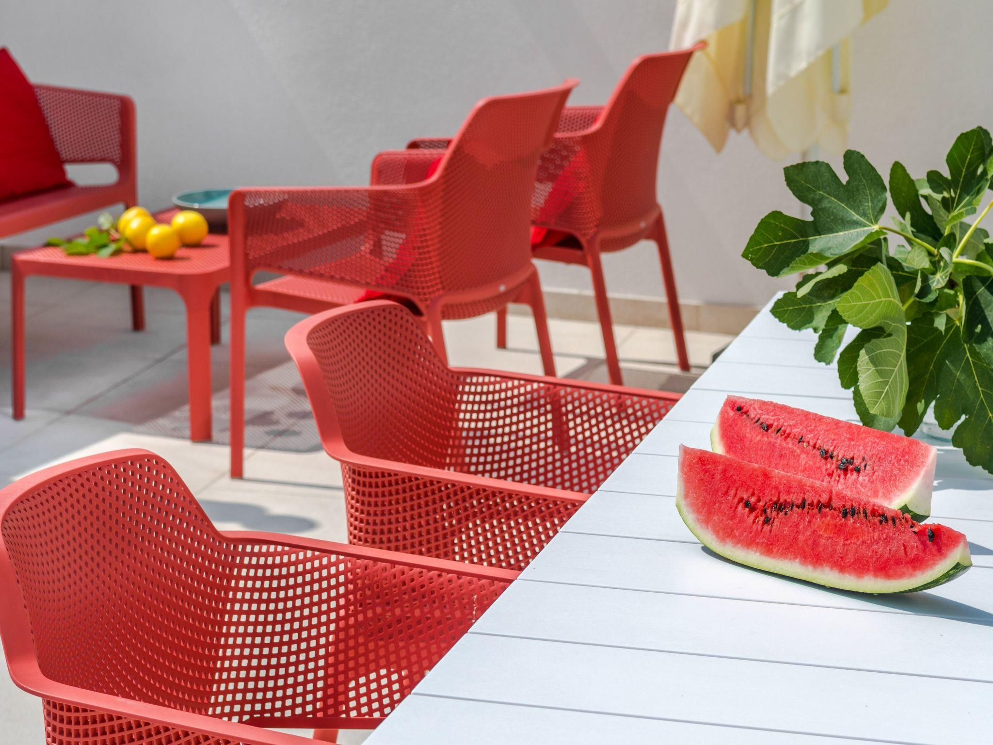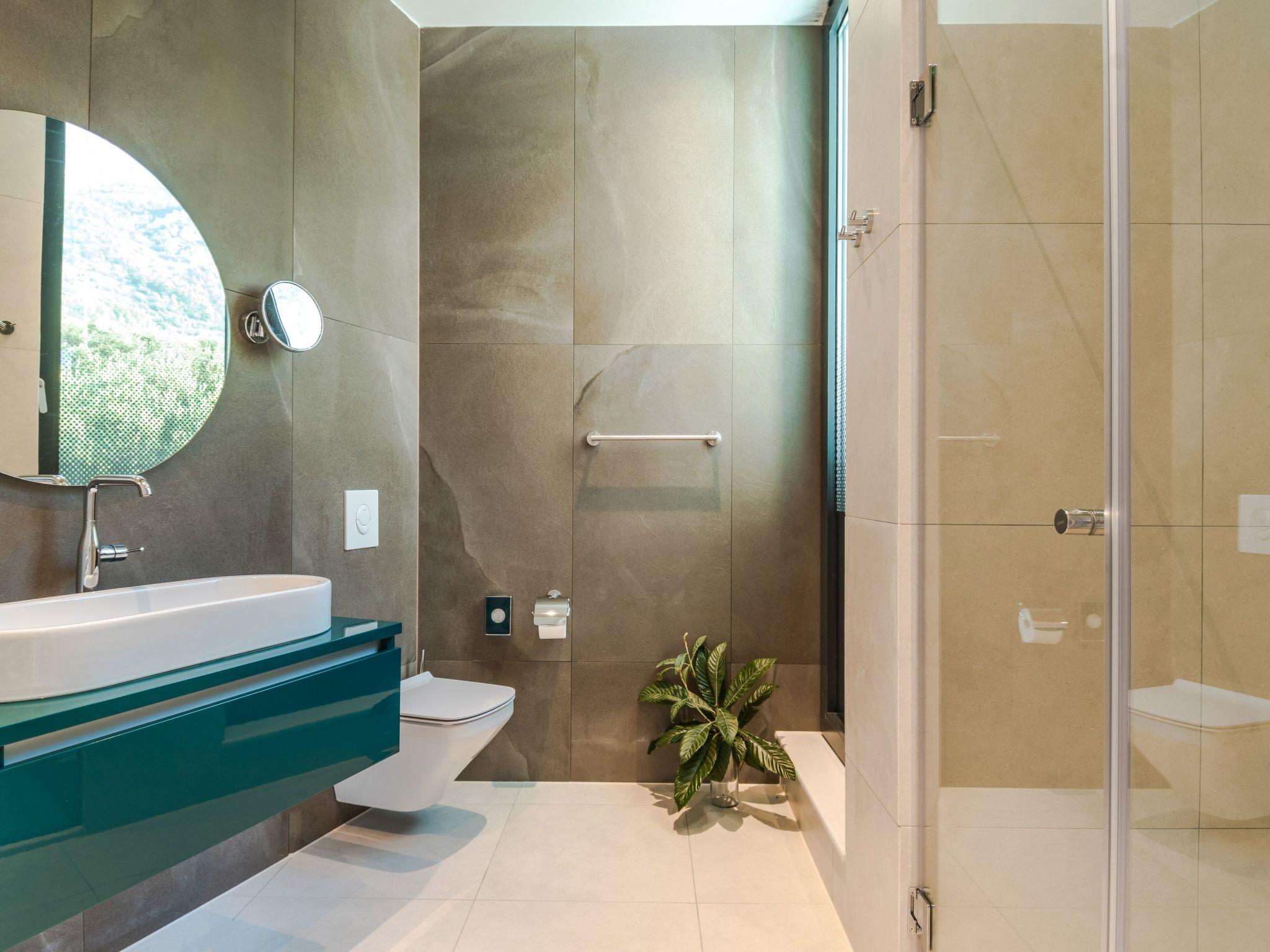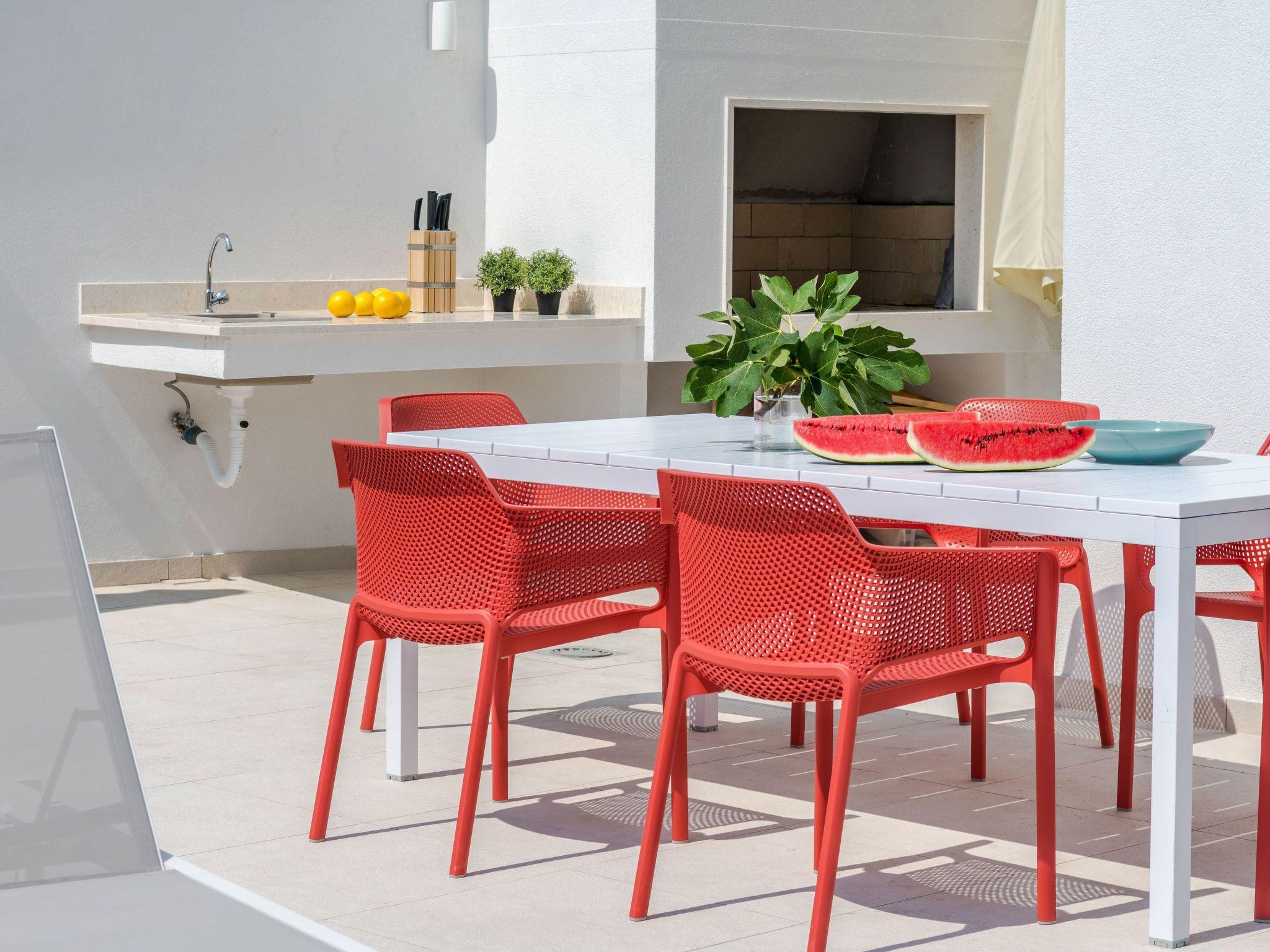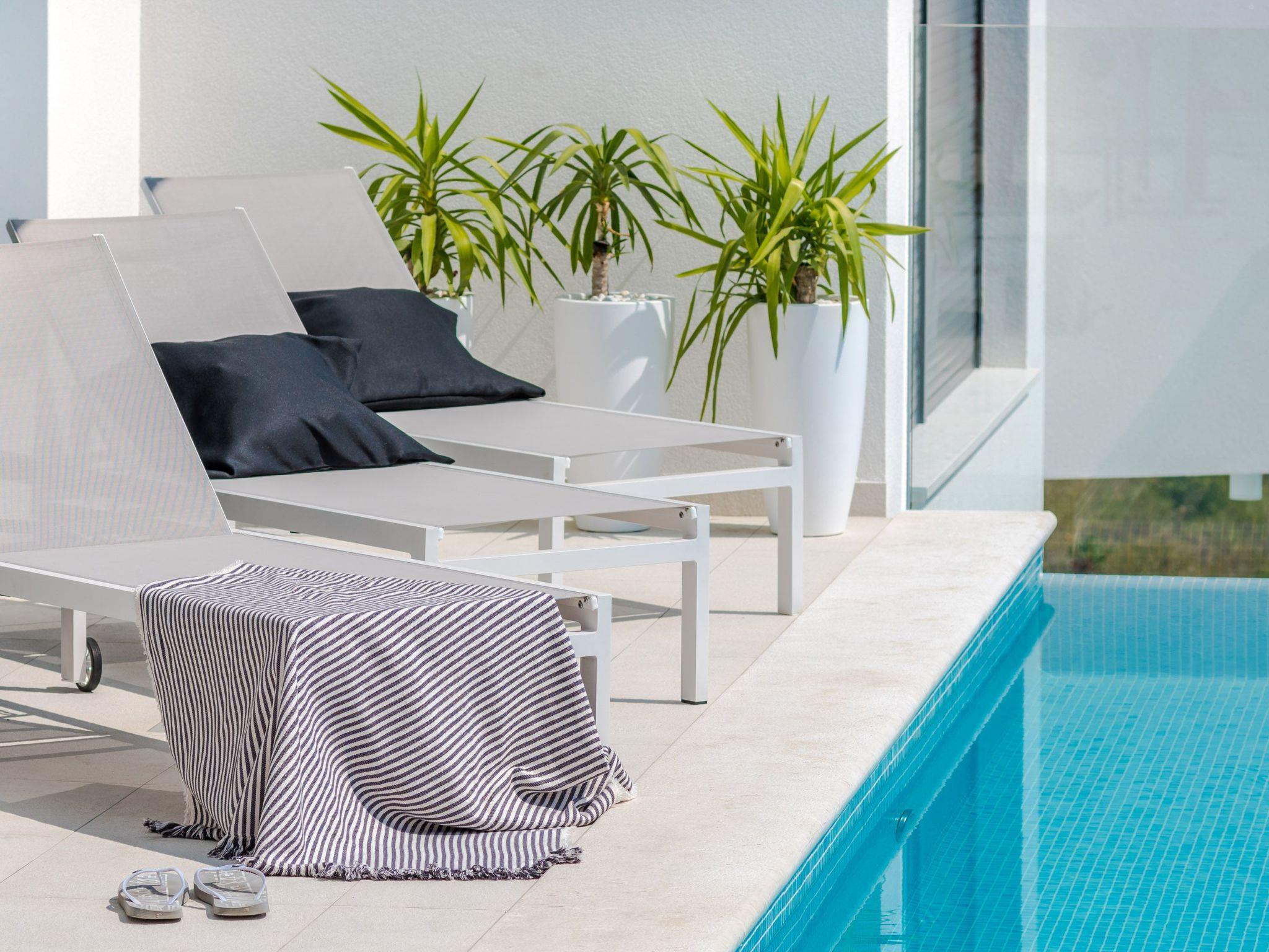 From the ground floor you can directly access the spacious terrace surrounding your own pool, where you can spend your days soaking up the sun or relaxing in the shade on high quality sun loungers.