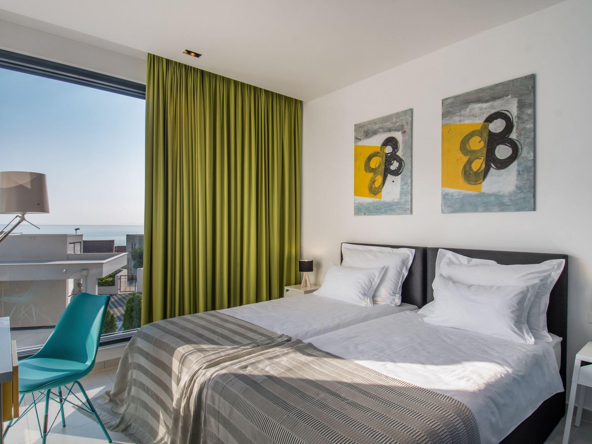 This beautiful villa has charm of minimalistic moder touch. On the ground floor you will find an elegant living room connected to the dining area and the villa's fully equipped kitchen. Both the living room located on the ground floor, as well as the bedrooms are air conditioned so you can fully relax during the hot summer days. Two bedrooms are with single beds and 1 bedroom with a double bed as well as bathrooms are at your disposal, however, there is also a sofa bed in the living room which means that the villa can accommodate up to eight persons.