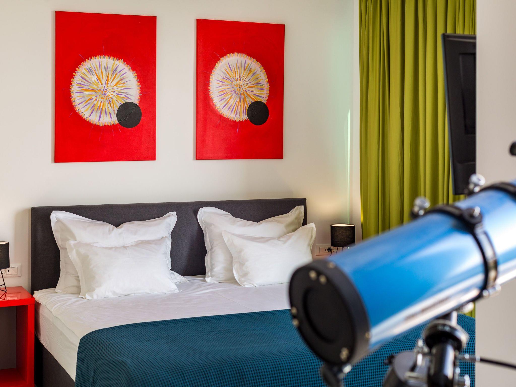 The beach is about 1,5 km and short walk from the nearest restaurants and stores.