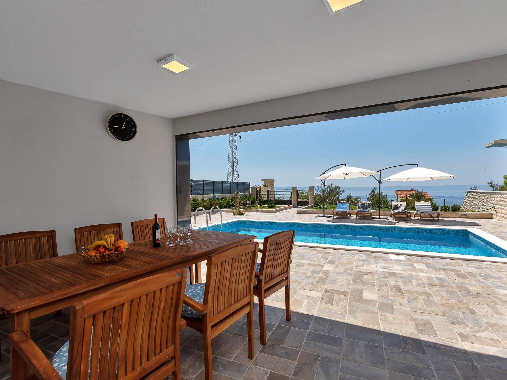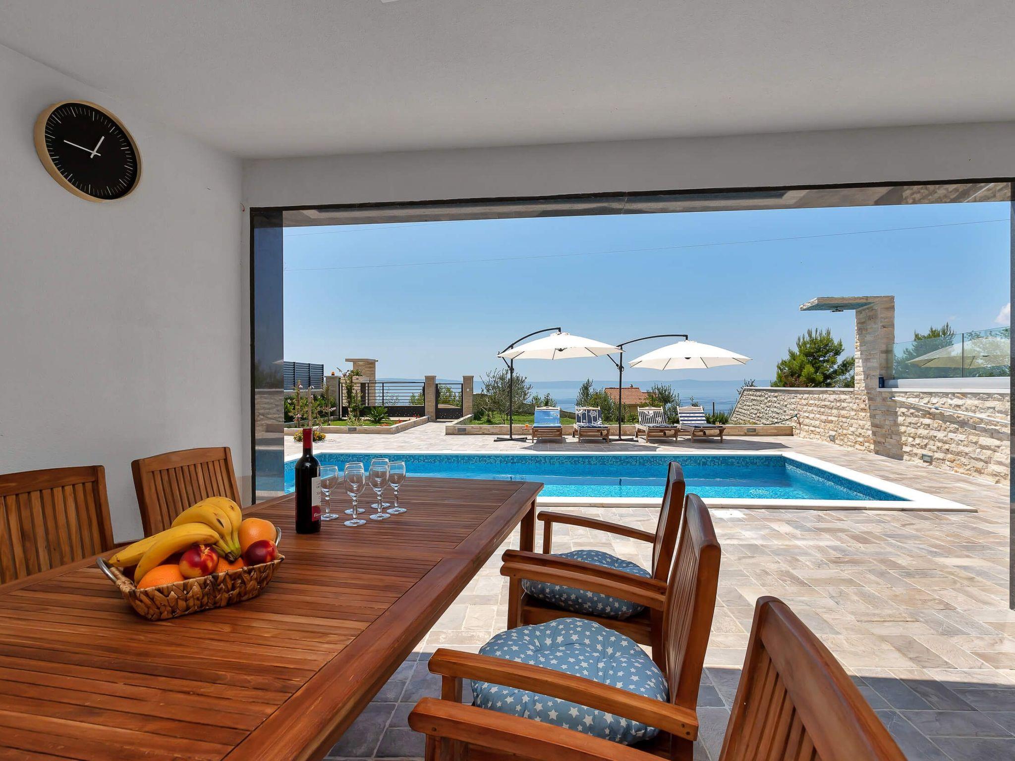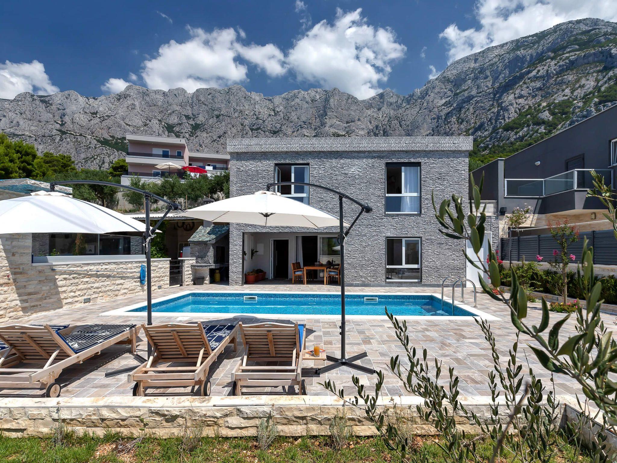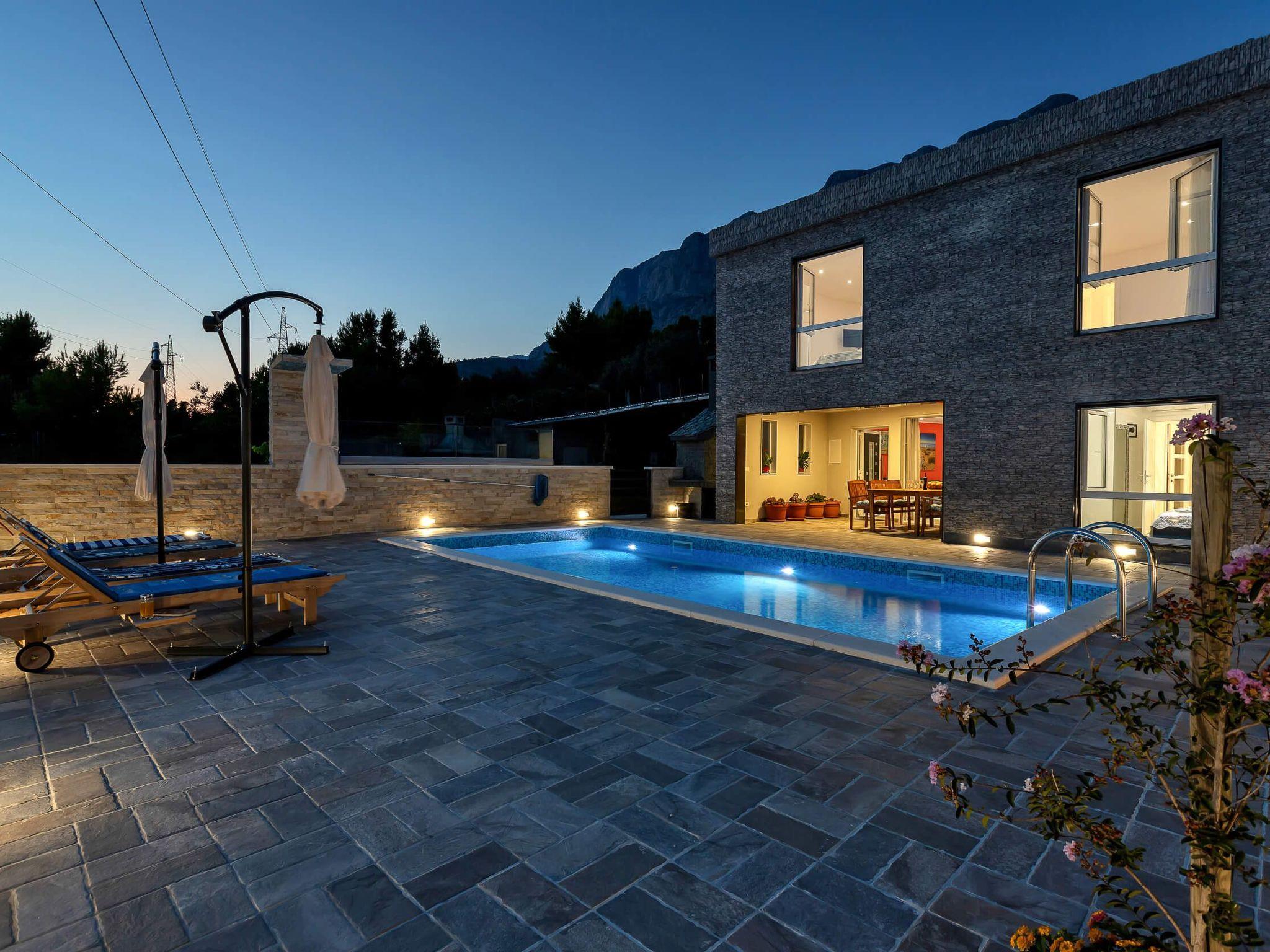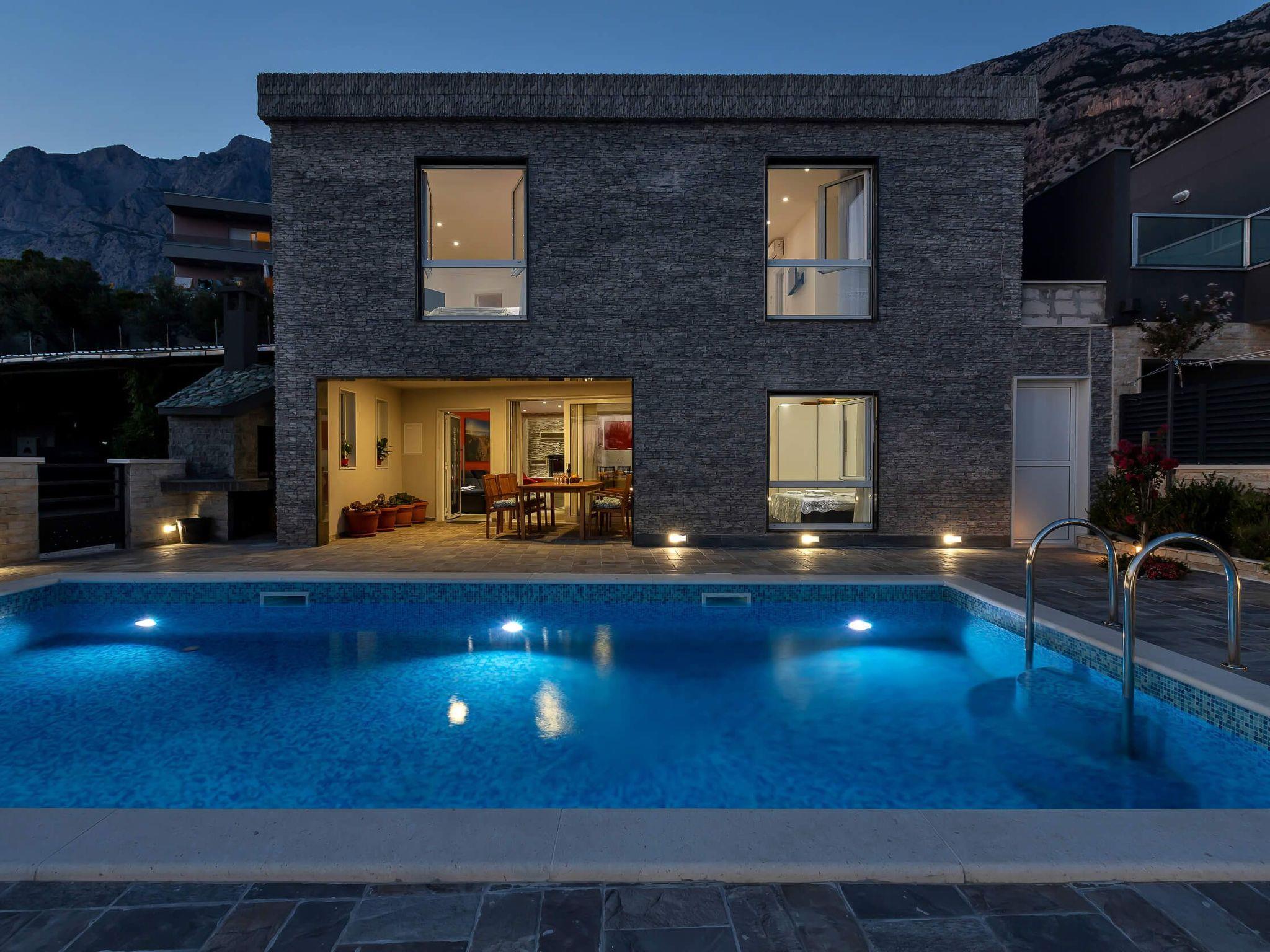Villa Infinite Joy is a modern villa with a beautiful sun-kissed pool deck and an amazing view of the sea. It is located 2000 meters from the beach and the city centre of Makarska. Its location under the Biokovo mountain is perfect for experiencing the overwhelming presence of a looming mountain from one side, and calming perfection of calm, crystal clear sea from the other.