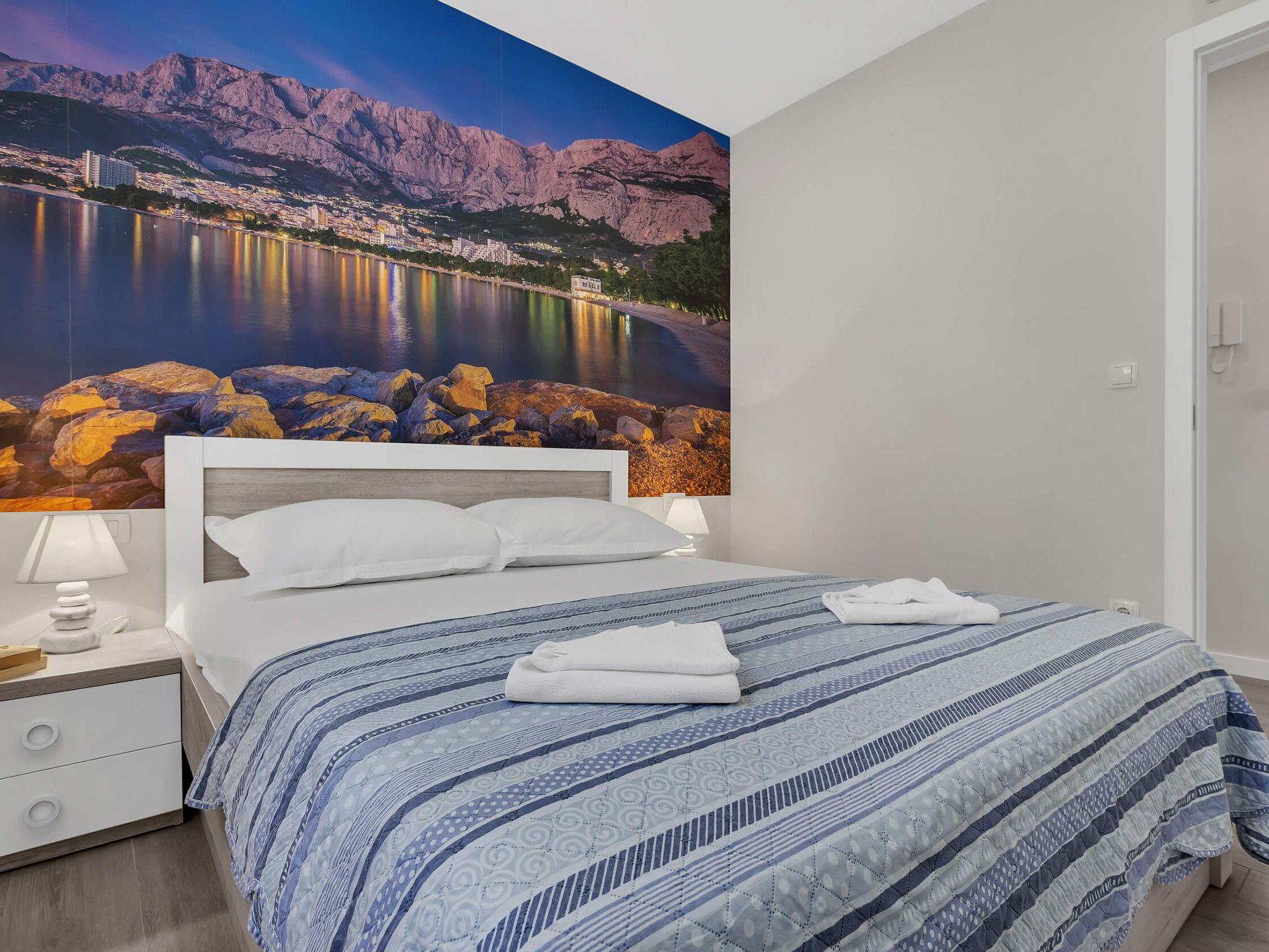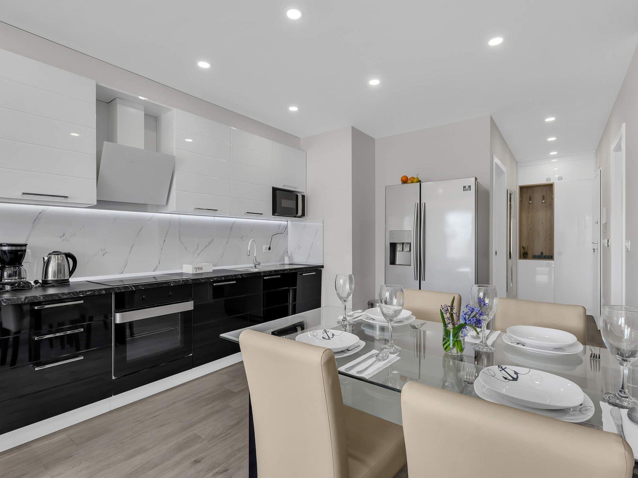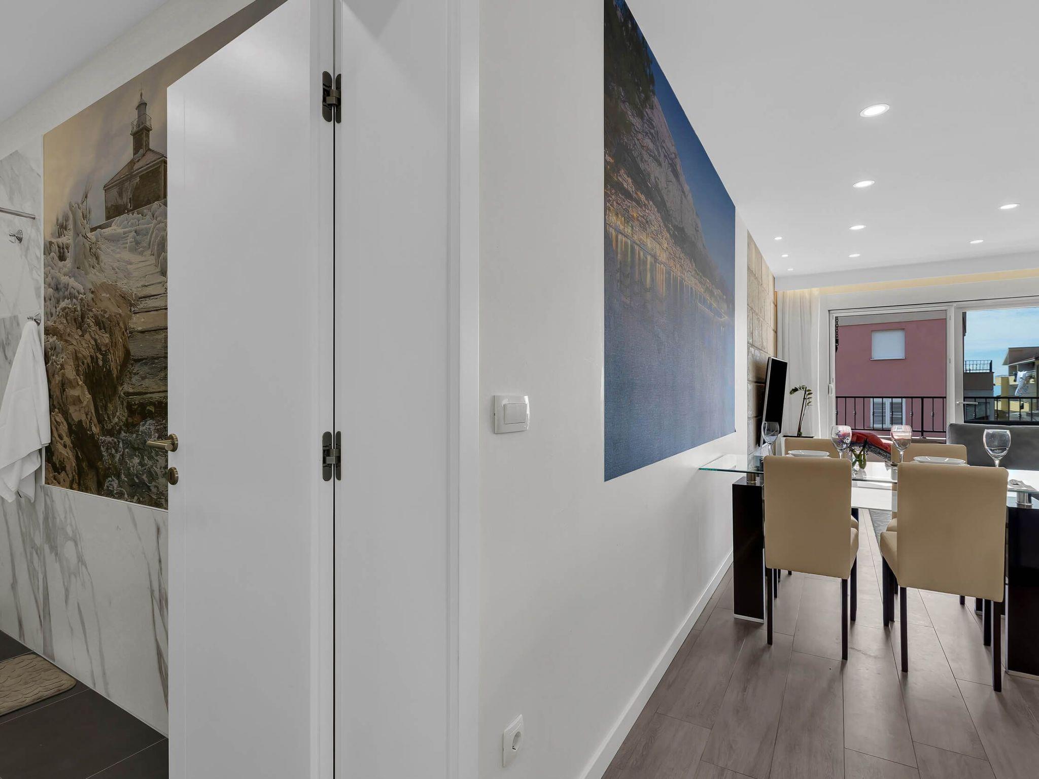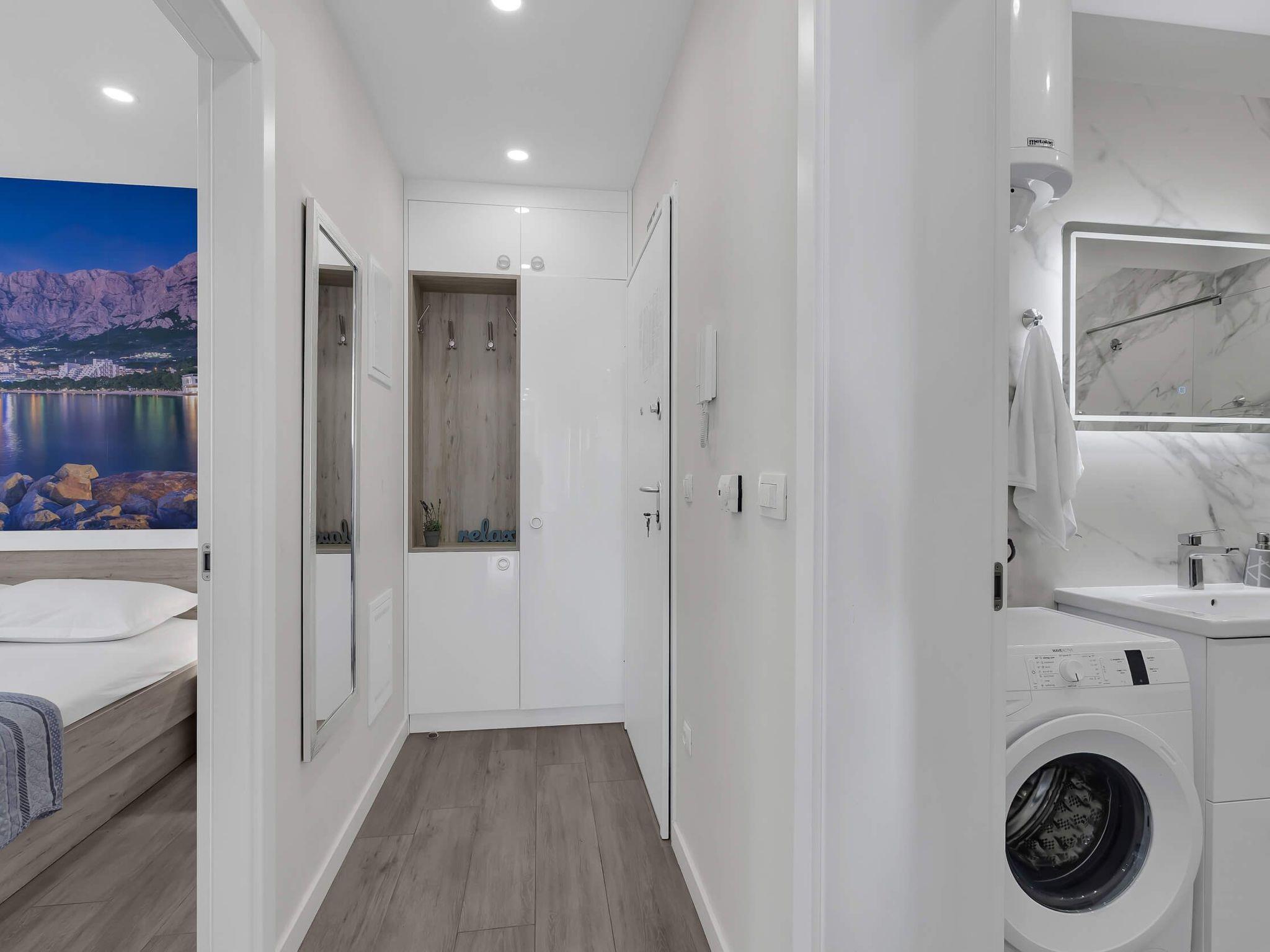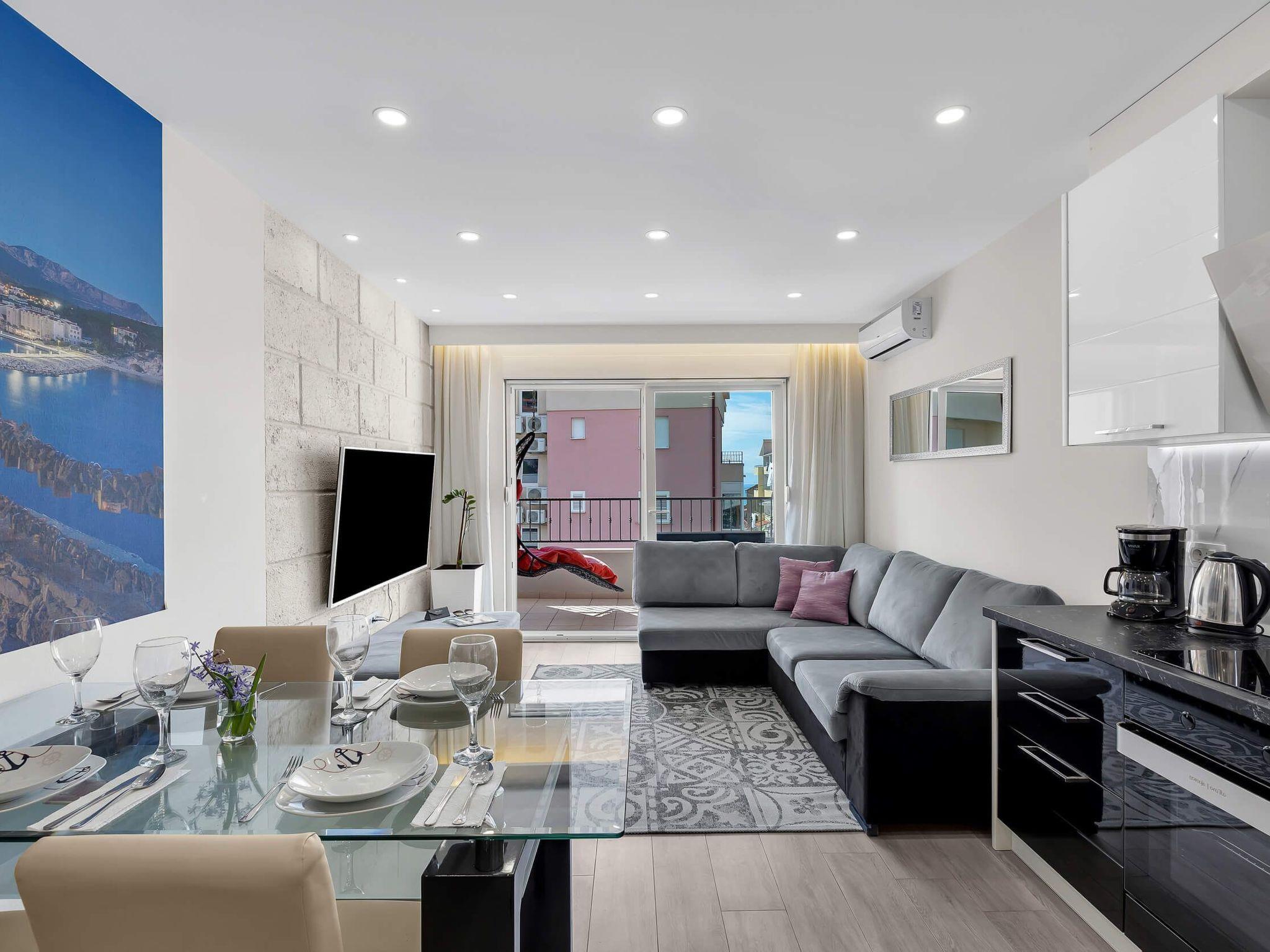 In its modern and sleek kitchen tasteful meals can be prepared. While in this modern apartment don't forget that you are in Makarska, a pearl of Makarska Riviera, or simply remind yourself by looking at amazing panoramic posters. Since the city center is only 300 meters away, get dressed and take a walk along the beautiful Makarska Riva, visit restaurants and shops where You can get a closer feel of his beautiful city.