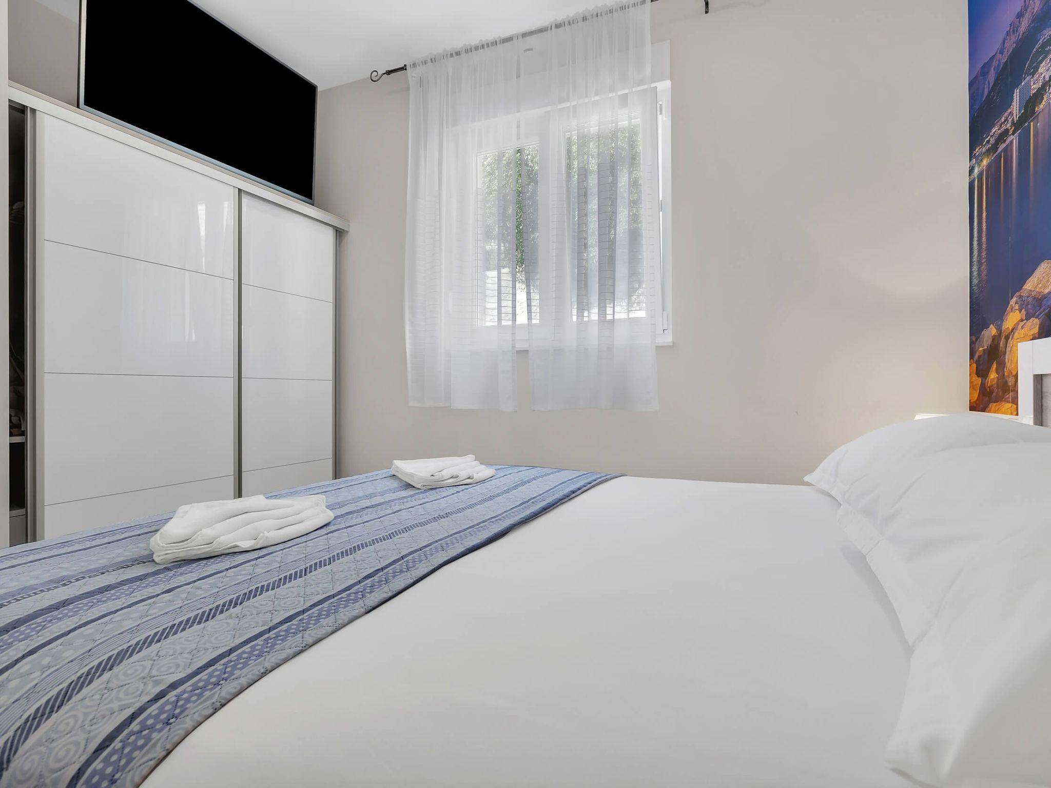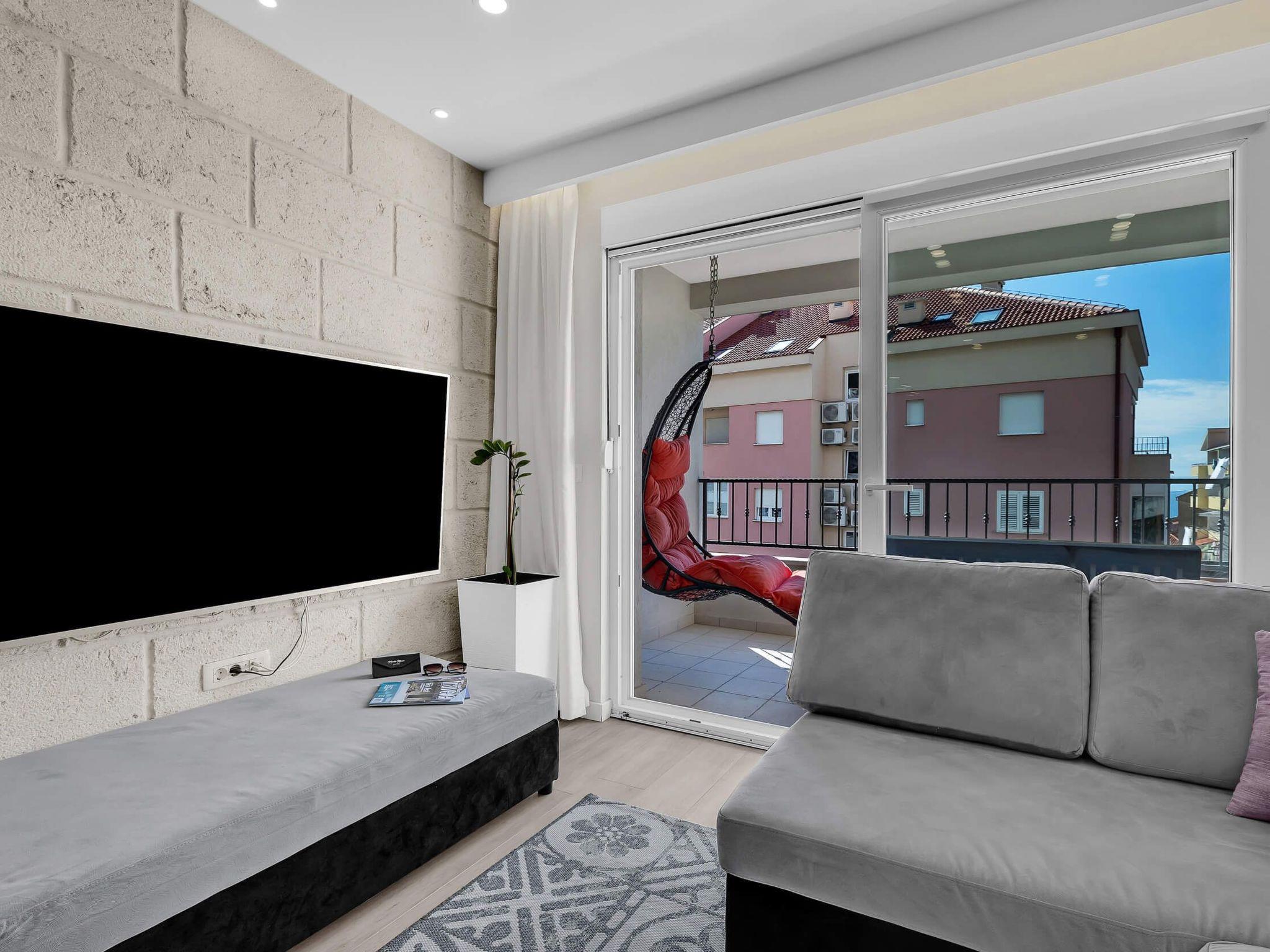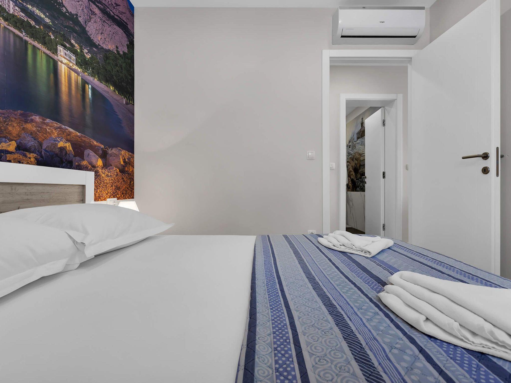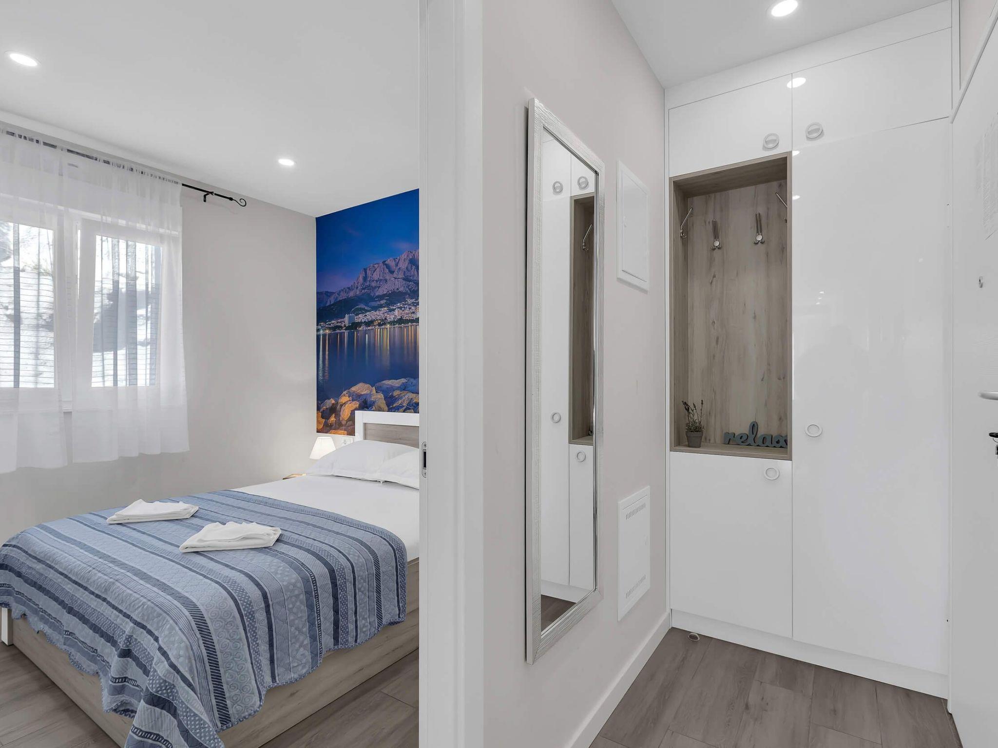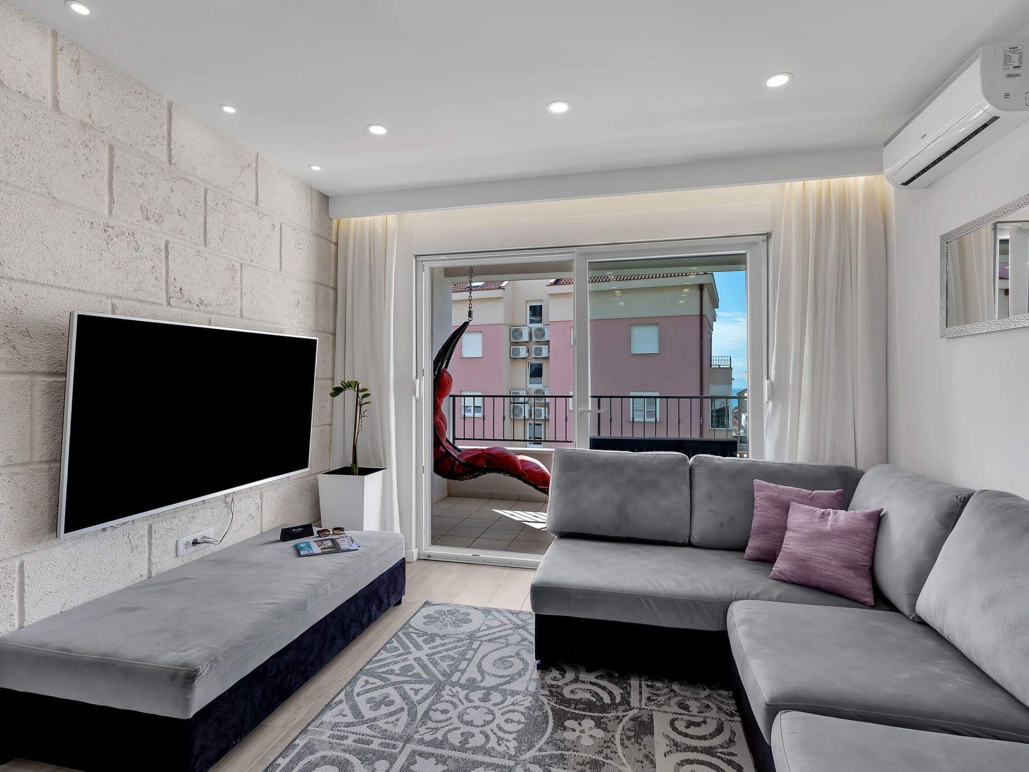 In its modern and sleek kitchen tasteful meals can be prepared. While in this modern apartment don't forget that you are in Makarska, a pearl of Makarska Riviera, or simply remind yourself by looking at amazing panoramic posters. Since the city center is only 300 meters away, get dressed and take a walk along the beautiful Makarska Riva, visit restaurants and shops where You can get a closer feel of his beautiful city.