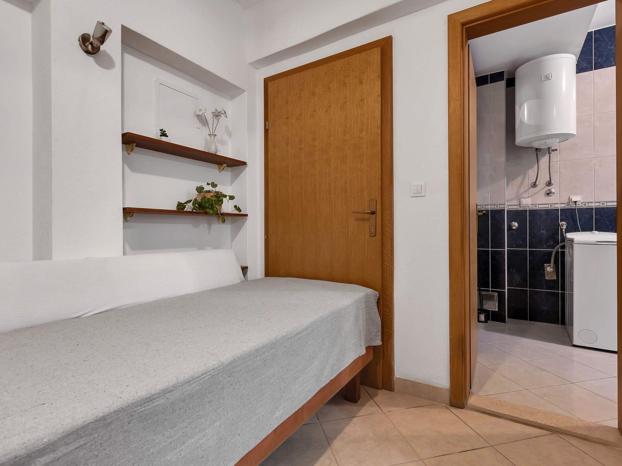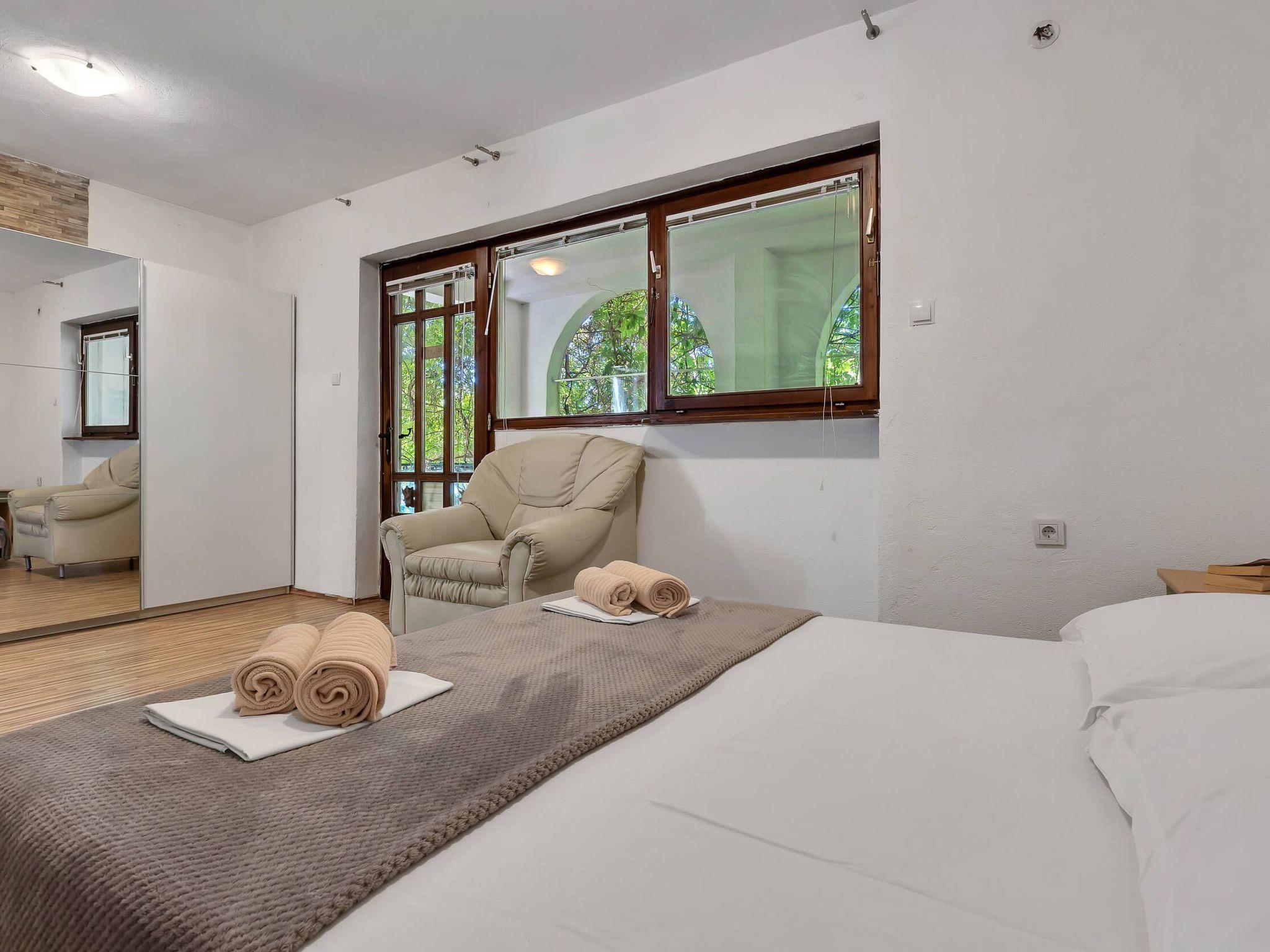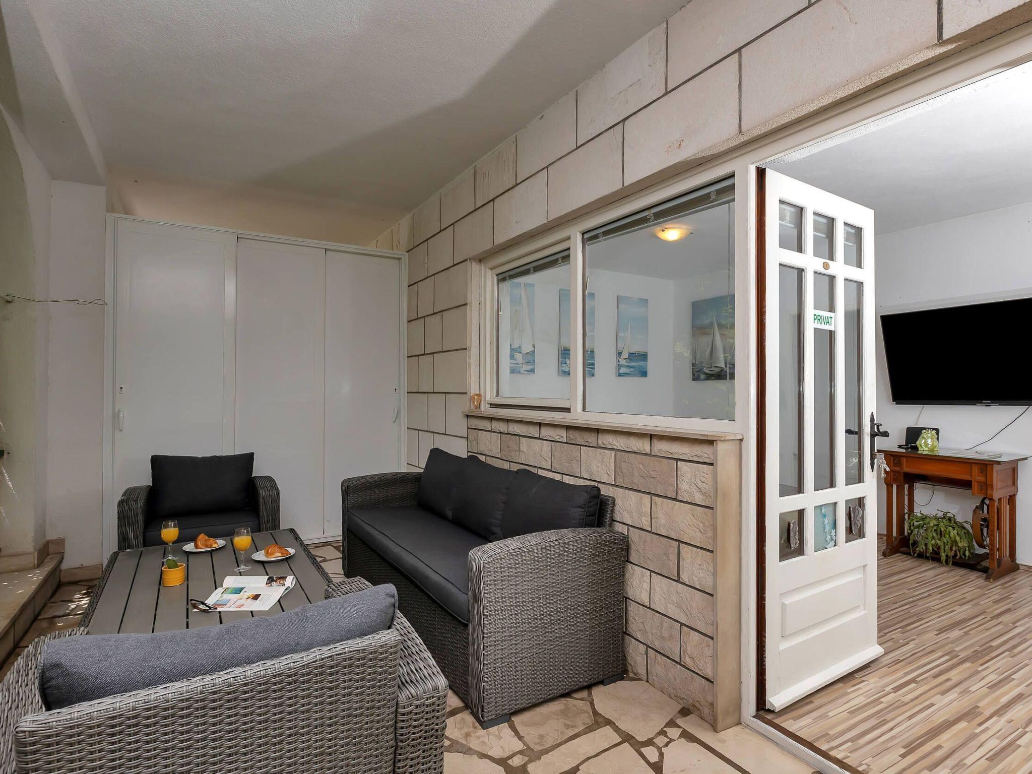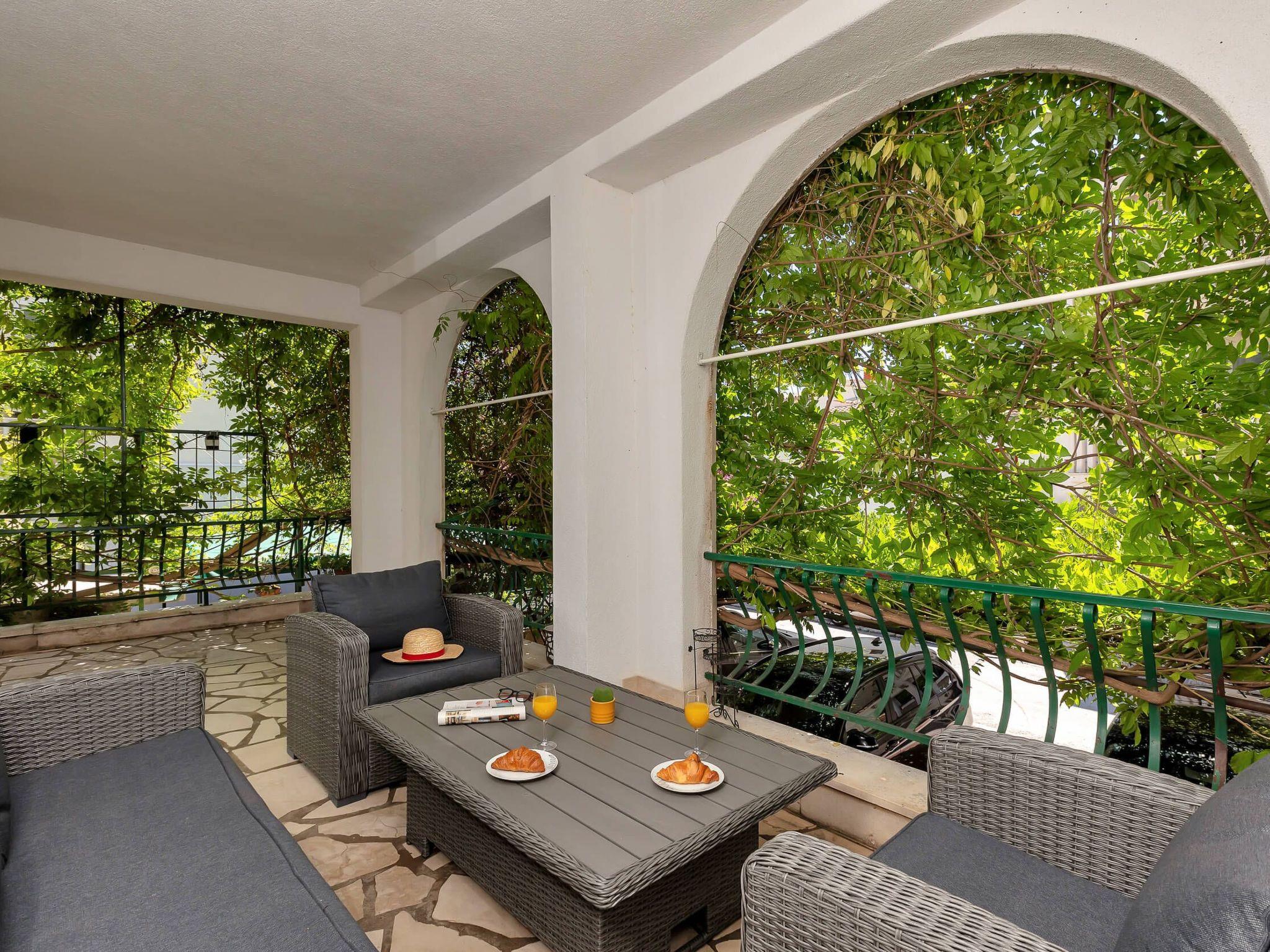 Step outside to discover the apartment’s charming terrace, an inviting outdoor space equipped with a seating area. This cozy nook is perfect for enjoying your morning coffee or unwinding in the evening with a refreshing drink, reveling in the tranquil ambiance that Makarska offers. It’s an ideal spot for relaxation, reading, or simply soaking up the atmosphere of this picturesque region.