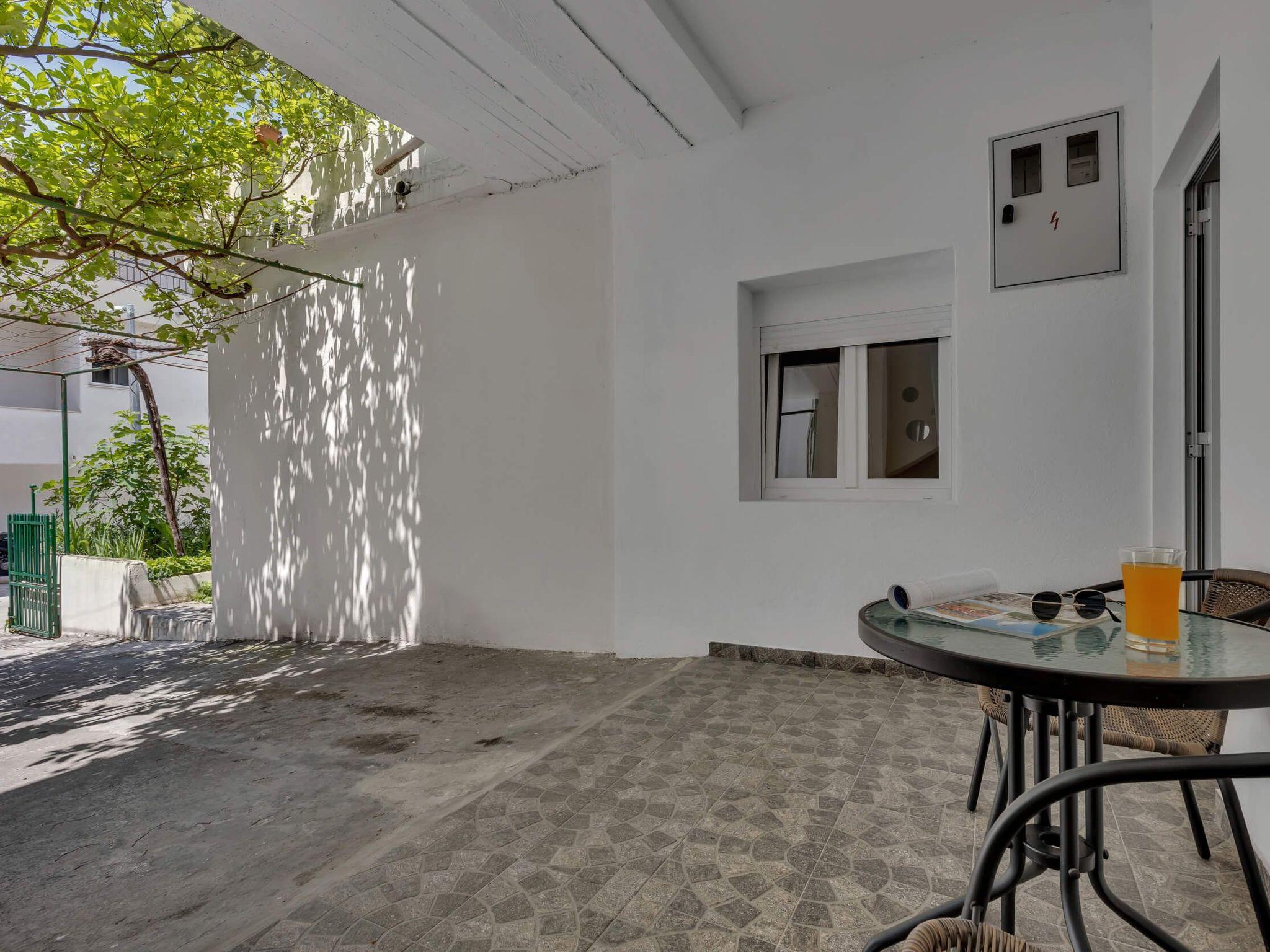 Outside, the apartment boasts a private terrace, a little oasis where you can enjoy your morning coffee or unwind after a day of sightseeing. Though compact, this space offers a tranquil setting to relax and rejuvenate, surrounded by the gentle Mediterranean climate.