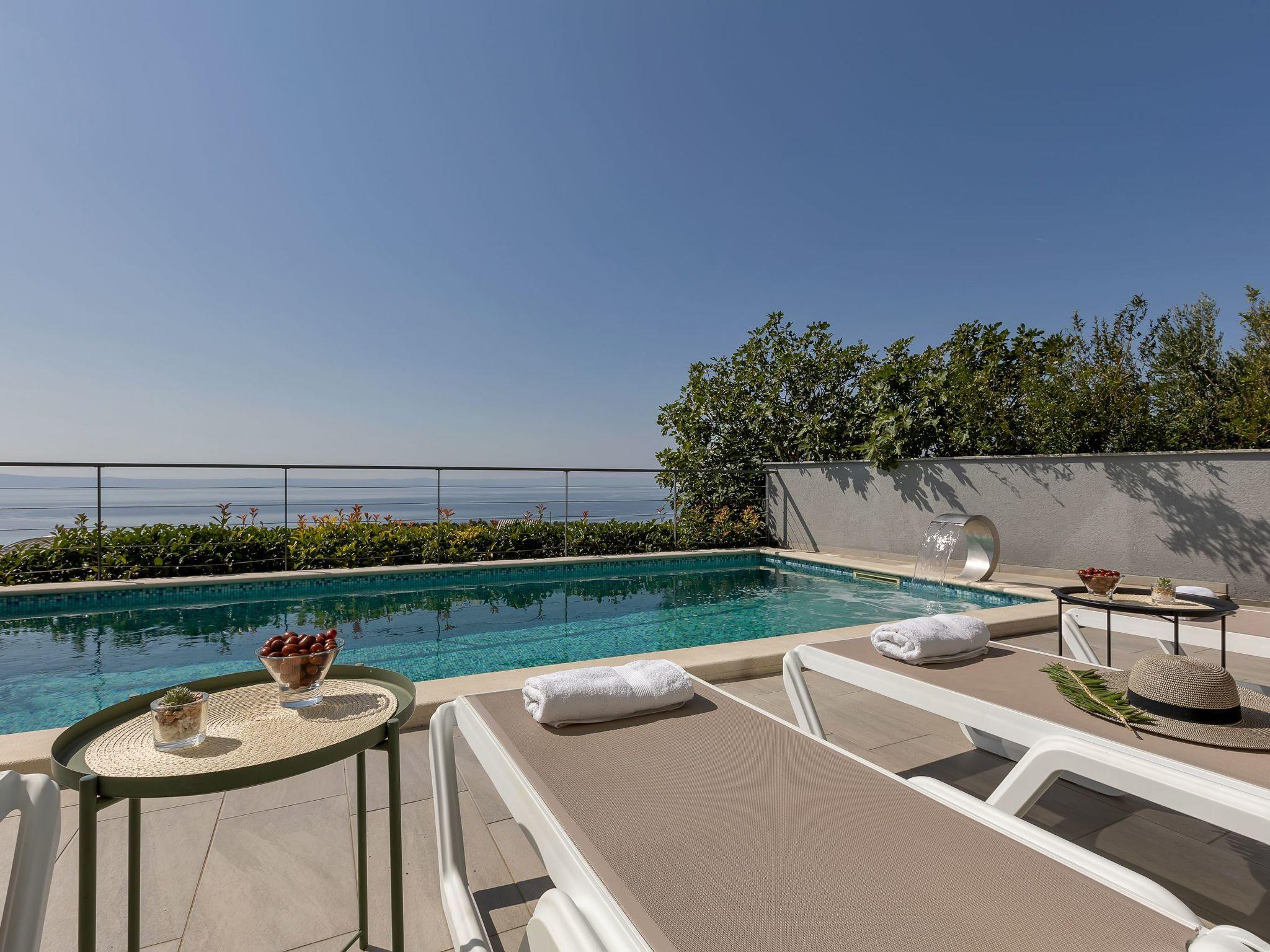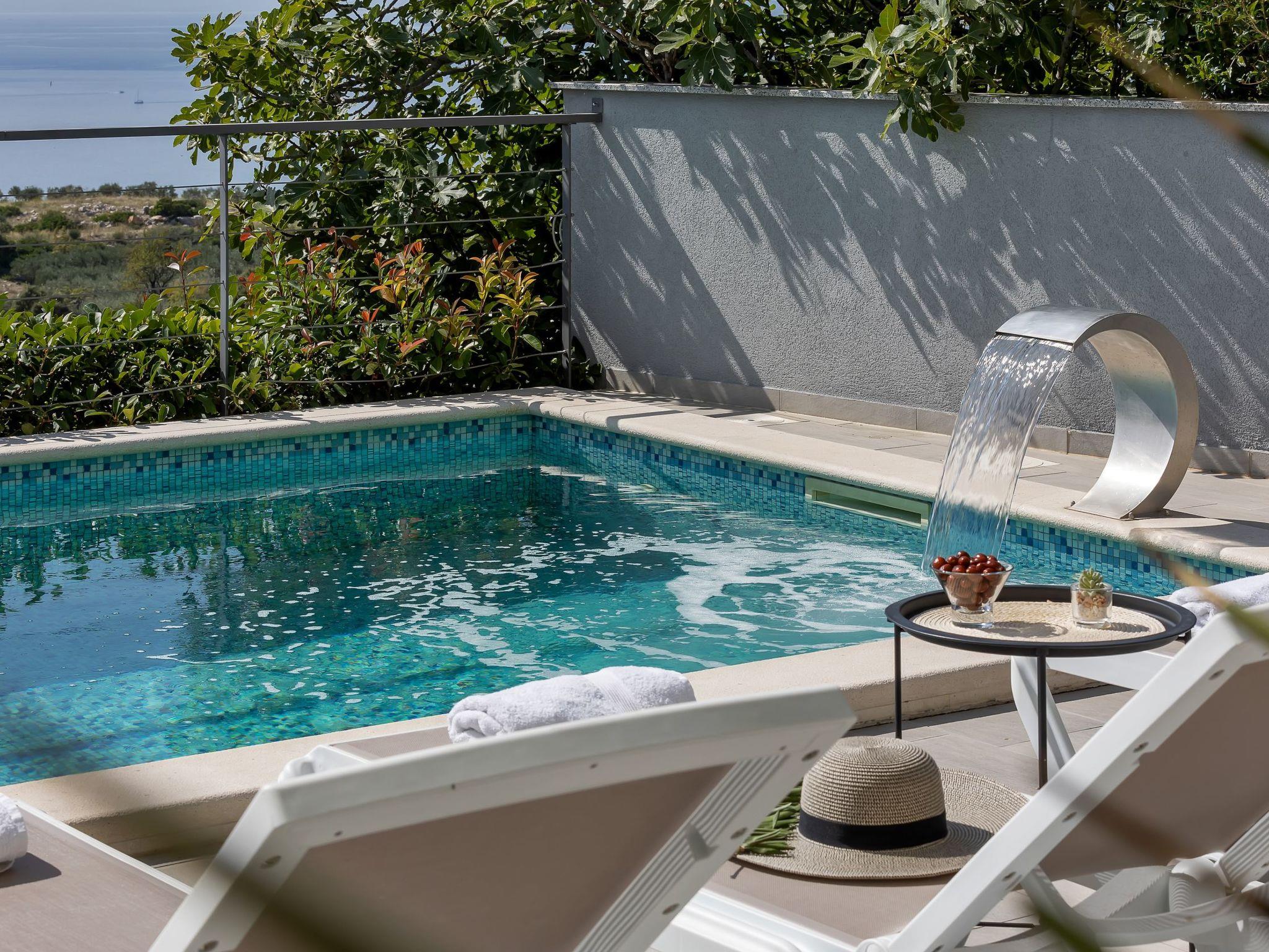 Villa M- surrounded by nature with heated pool & sport court The charming & luxury family villa in Makarska (6+2) is perfect for family holidays. Offering a beautiful panorama over the Adriatic Sea and islands Hvar and Brac, and yet only a short 5 minutes drive away from the center of Makarska on the east and Baška Voda and Brela on the west, the villa is the outstanding contemporary and modern house over 4 floors, and the décor has been inspired by the elements of the sea. Calming colors, stones, and elements of ancient history create a relaxing atmosphere. With private pool & sport court, you can fill your day with sun and laugh. Surrounded by nature and sheltered by mountain Biokovo you will feel safe and protected and we will make sure to fulfill all your needs.It is suitable for 6 + 2 people.