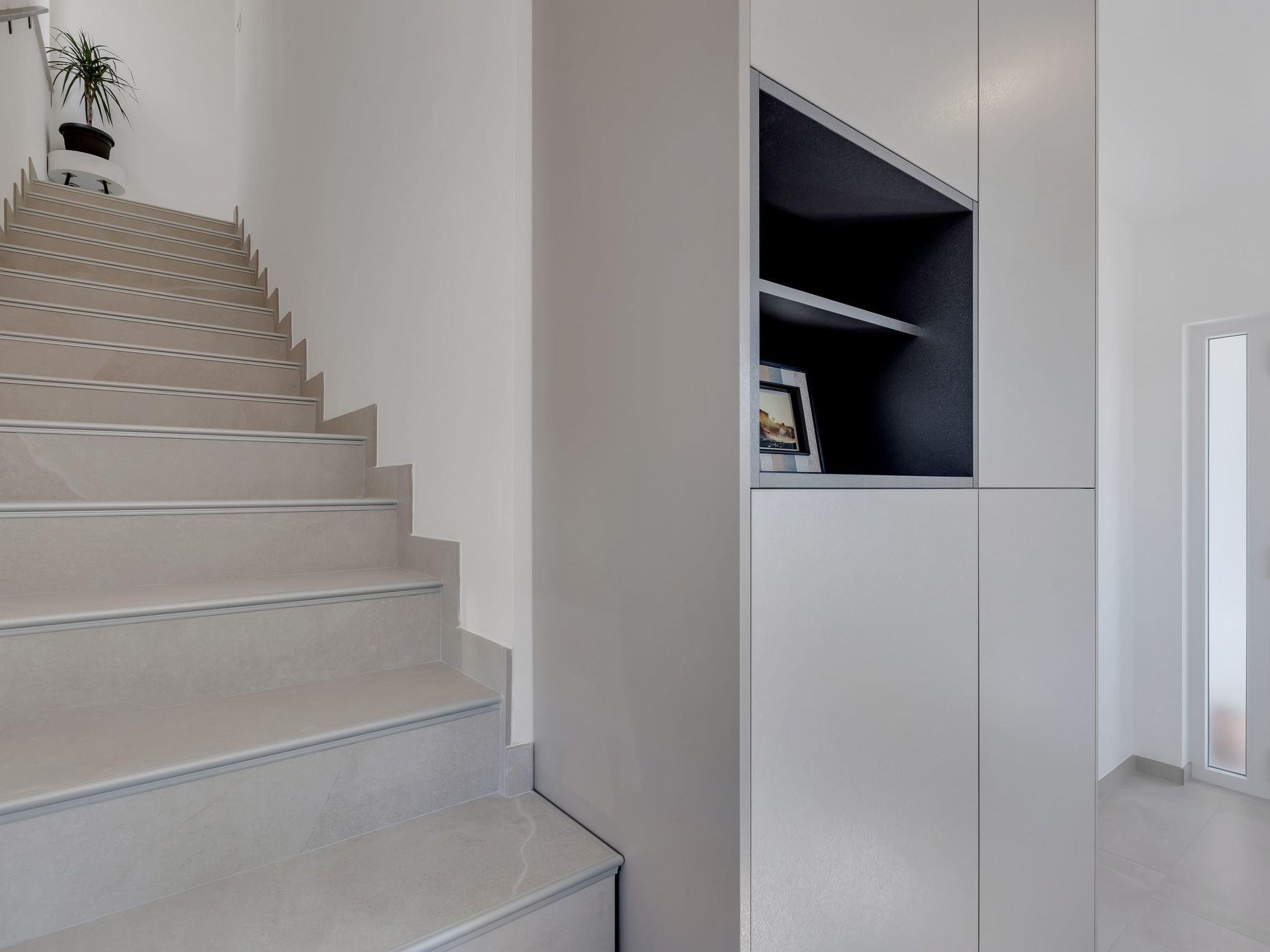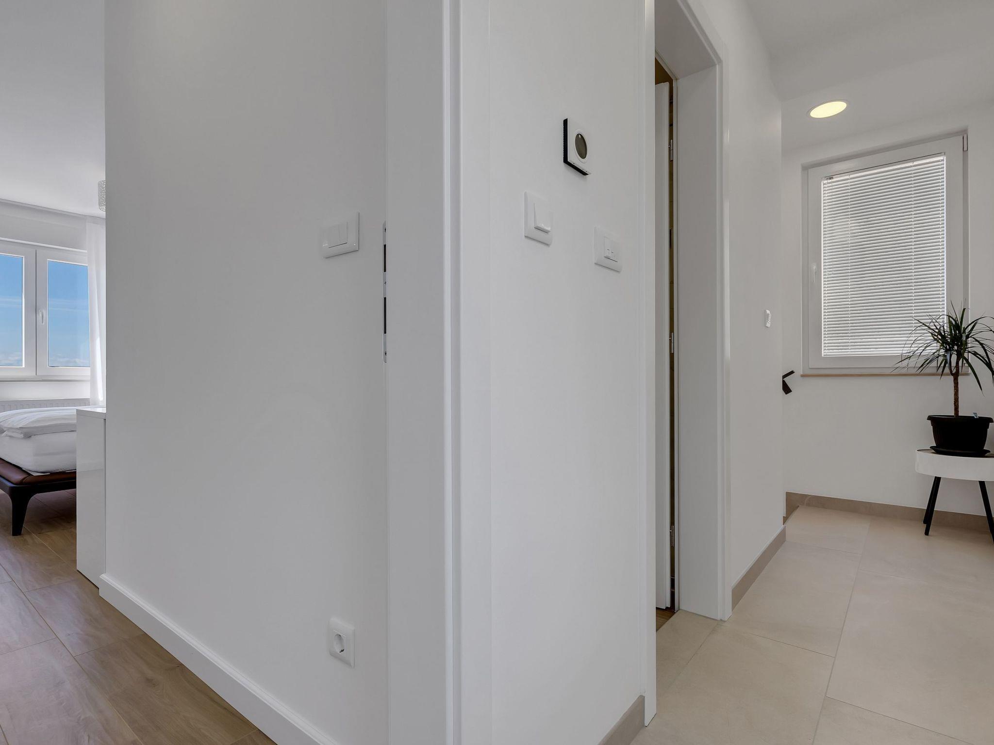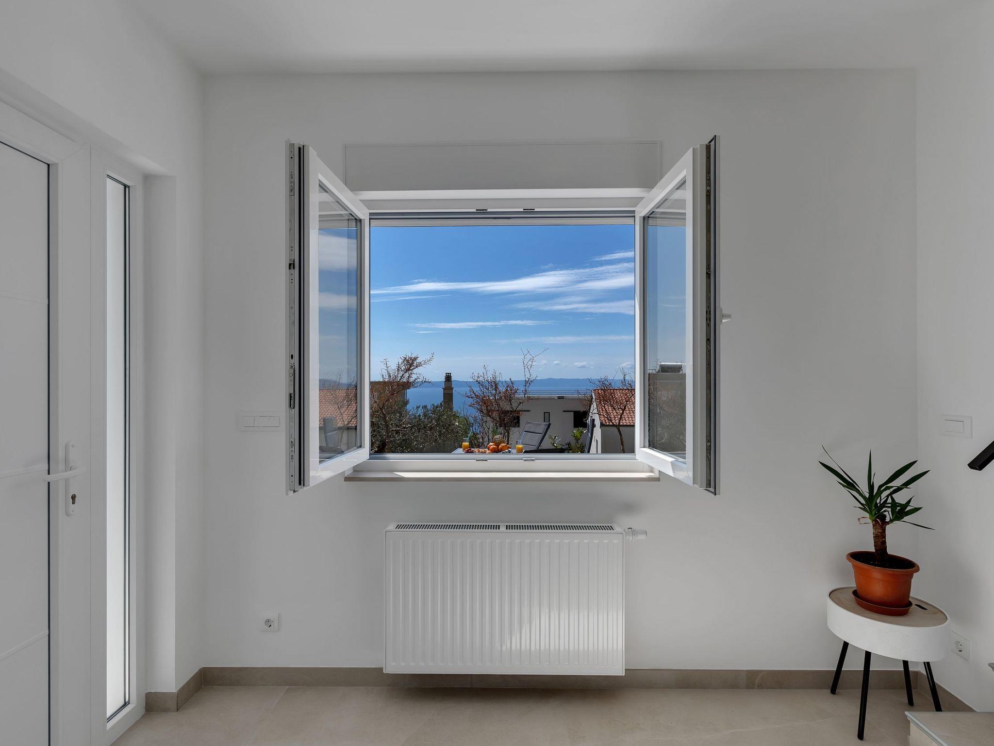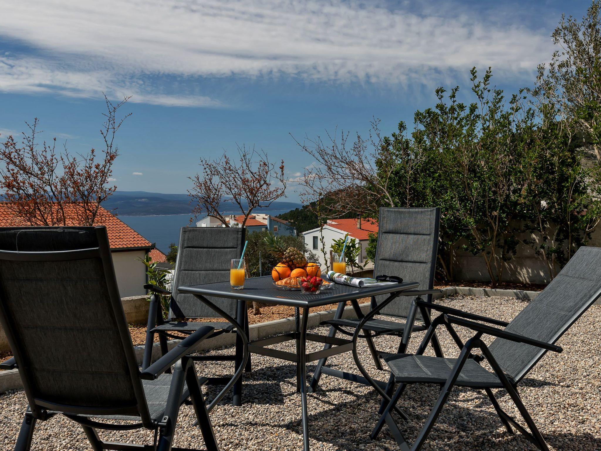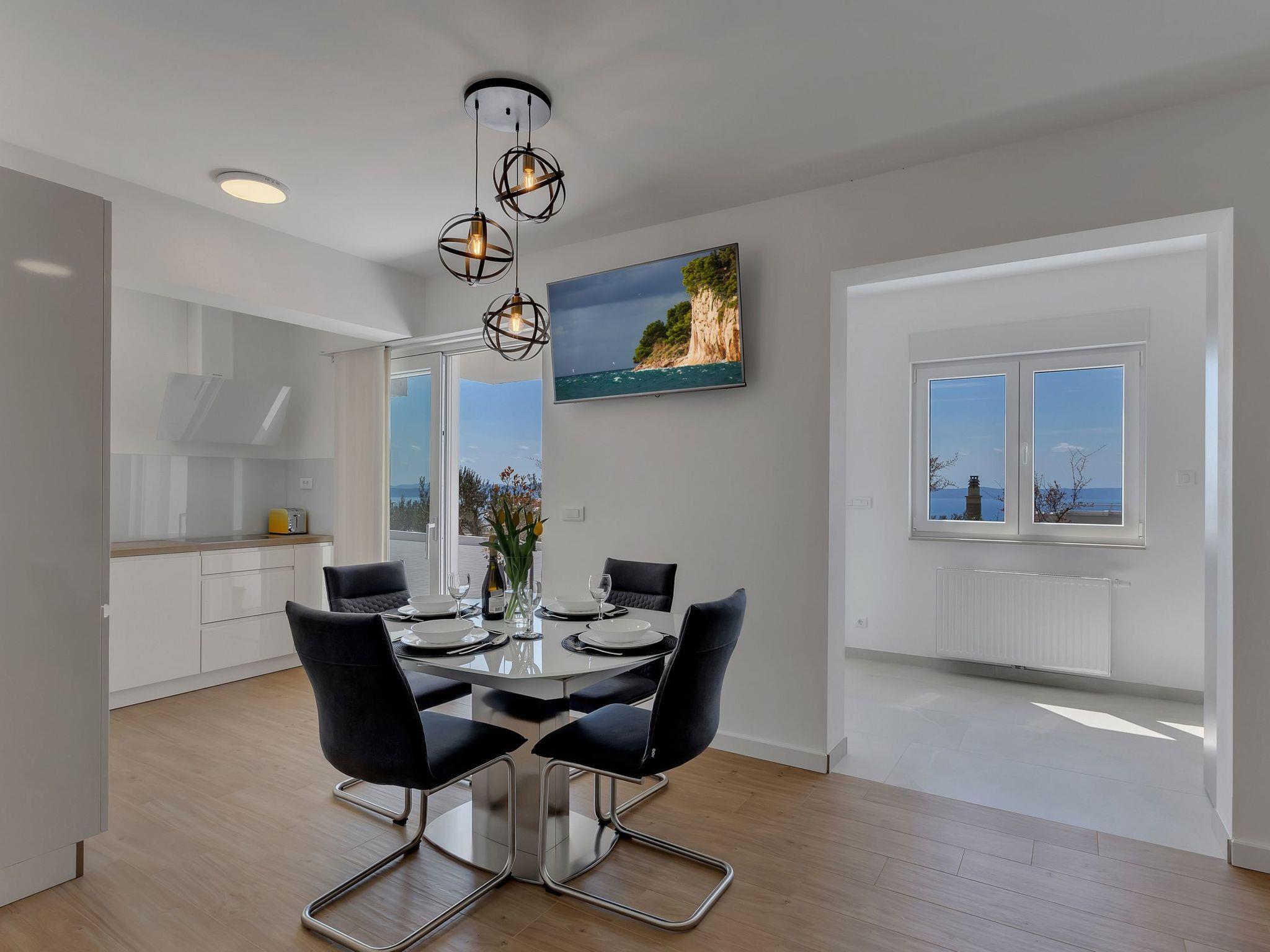 Modern holiday home with sea view is located above the town of Makarska in a quiet location. The property is surrounded by olive trees with a beautifully manicured garden. The holiday home has a spacious living room with air conditioning, TV/SAT, balcony with sea view, an open kitchen, fully equipped, central heating is also available.