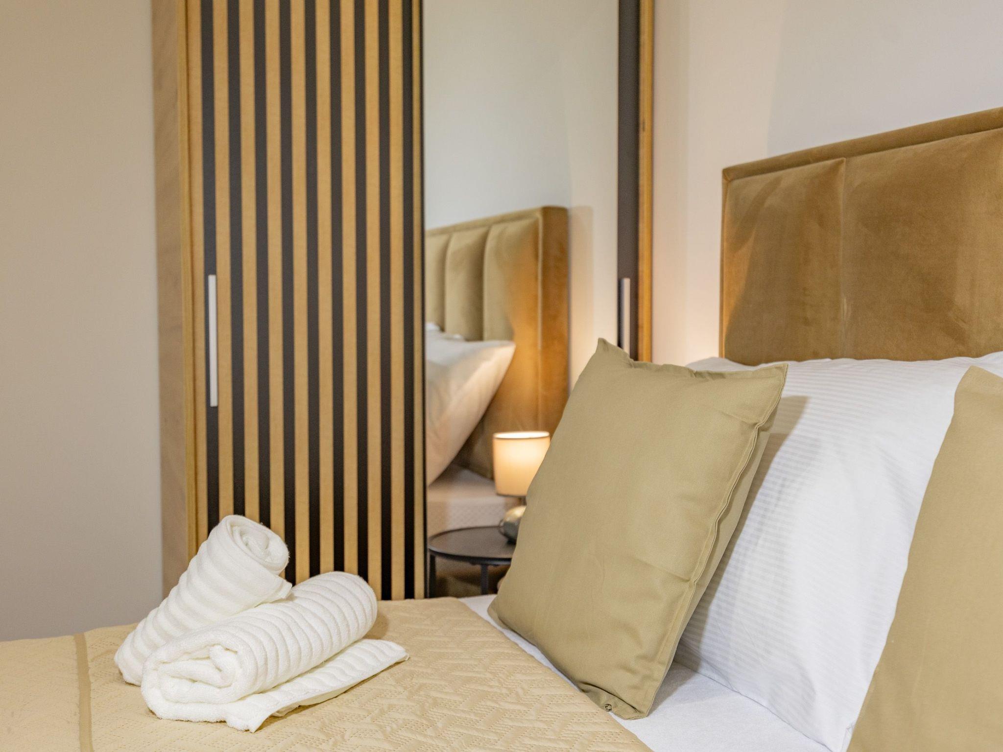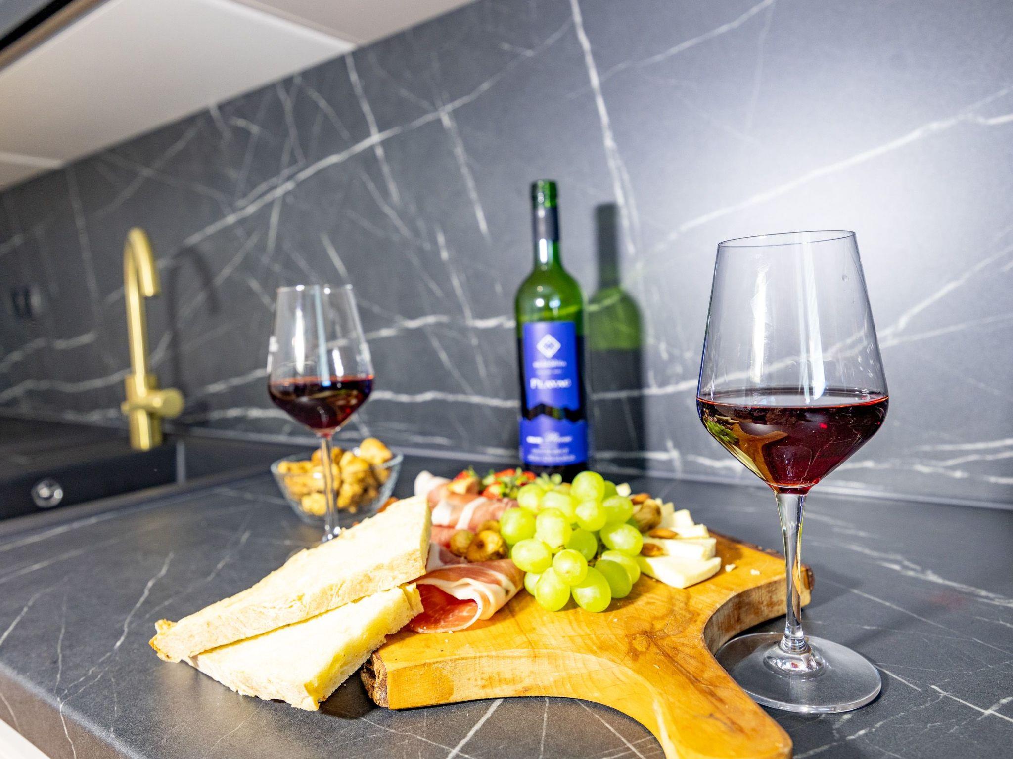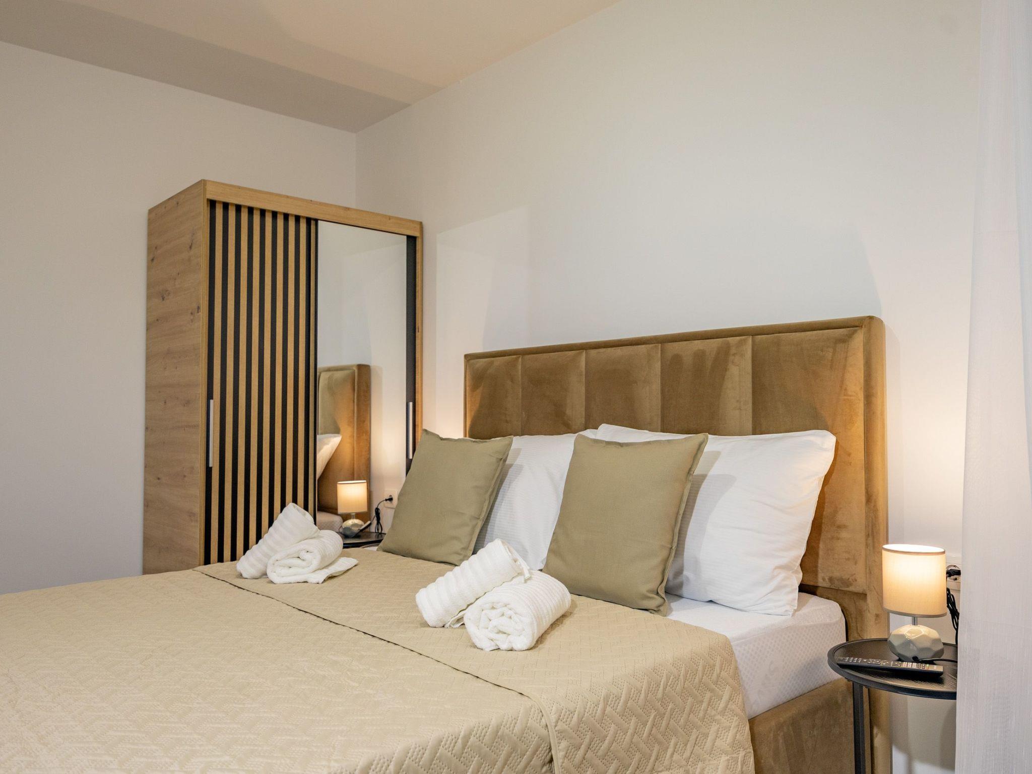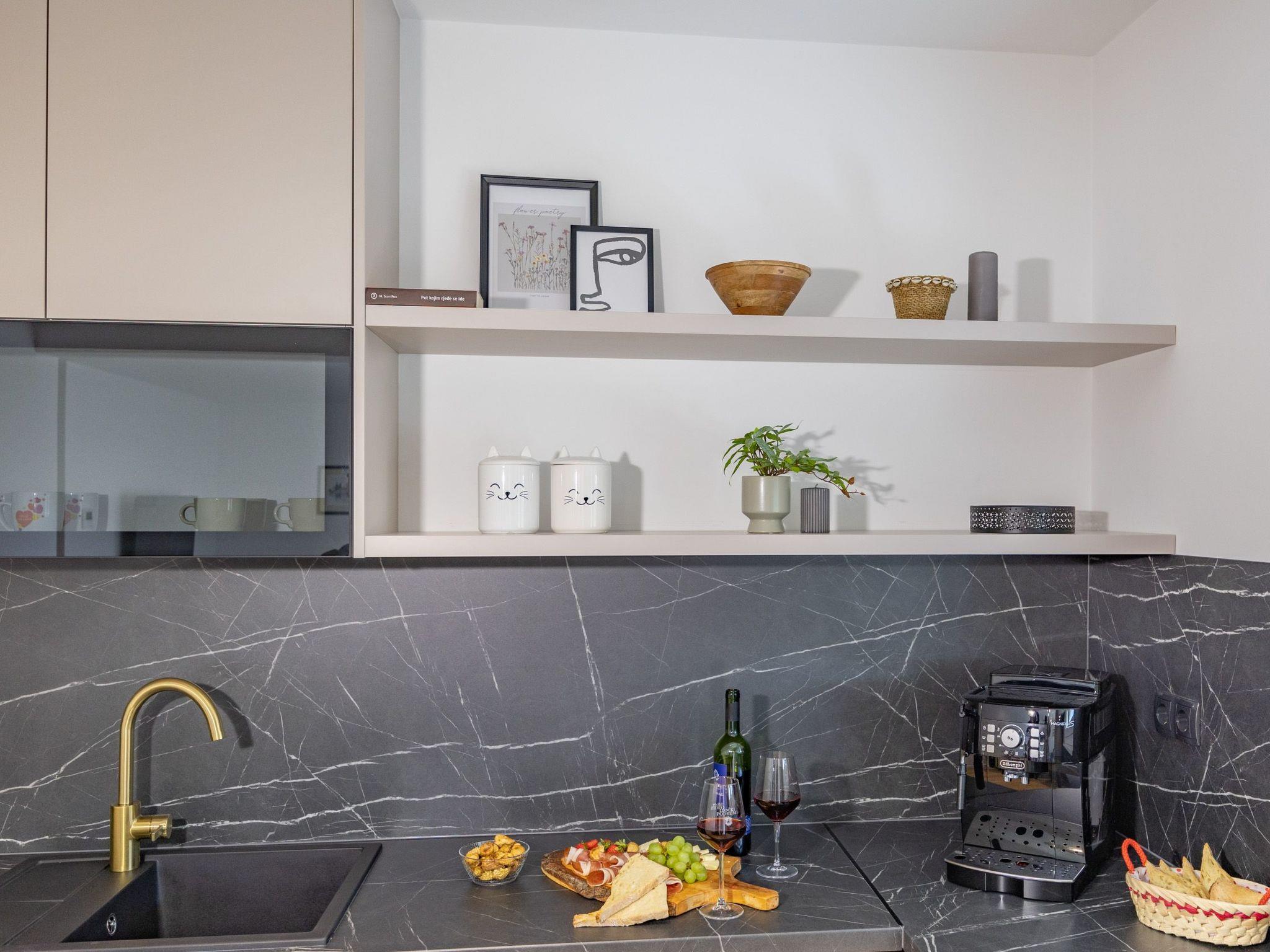 Upon entering this carefully designed flat, you are greeted by a spacious living room with tasteful furnishings and modern décor. The open concept seamlessly connects the living room with the fully equipped kitchen, creating a warm and inviting atmosphere for gatherings with family and friends. The kitchen boasts sleek countertops, modern appliances and ample storage space, providing everything you need to prepare delicious meals during your stay.