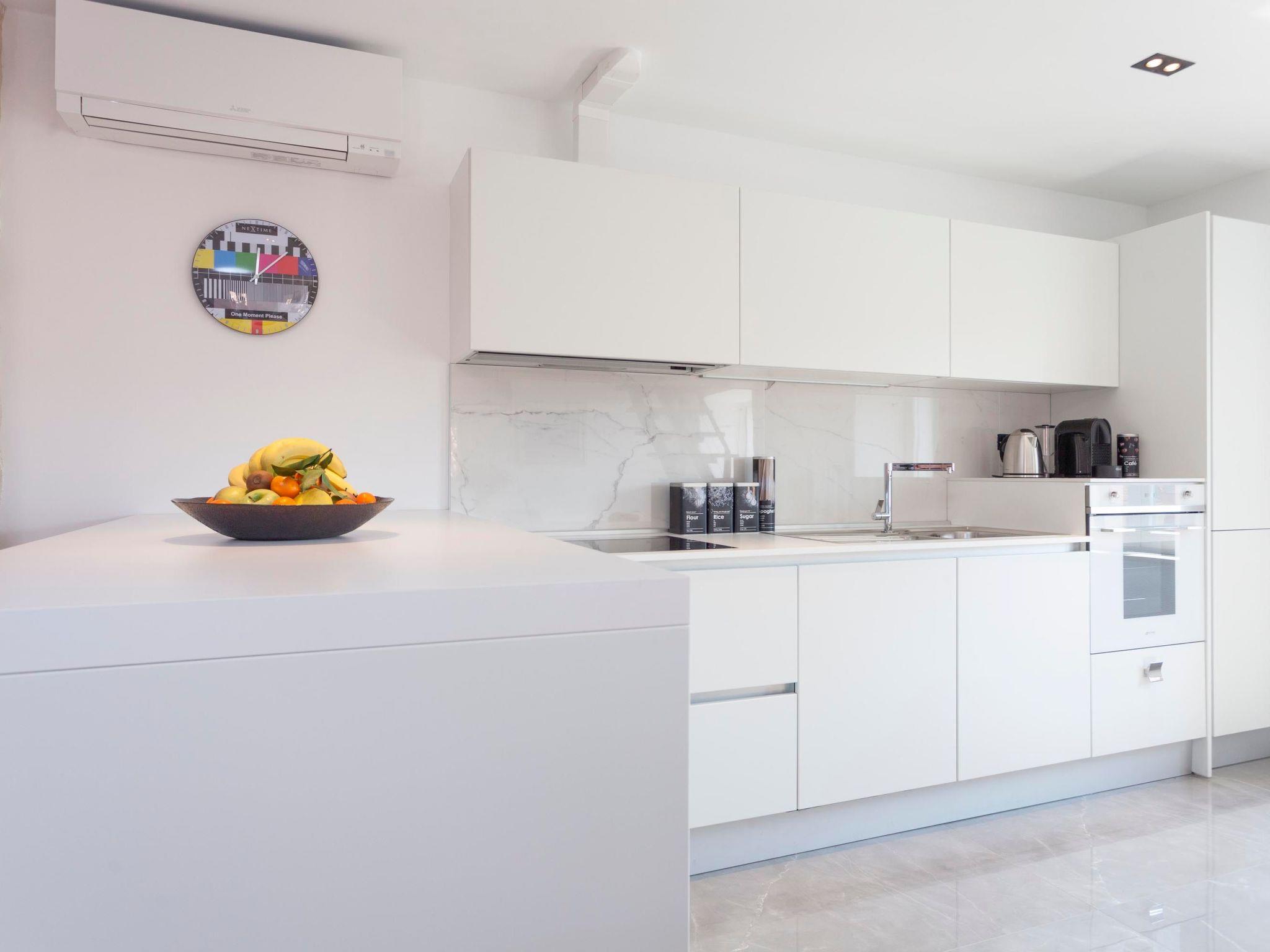 On the ground level of the apartment there is a spacious living room, a fully equipped kitchen, a double bedroom and a bathroom, and from the living room, the inner stairs go upstairs with a double bedroom and workroom, bathroom and terrace overlooking the sea. All rooms are air-conditioned and the windows are three-layer glass insulators.