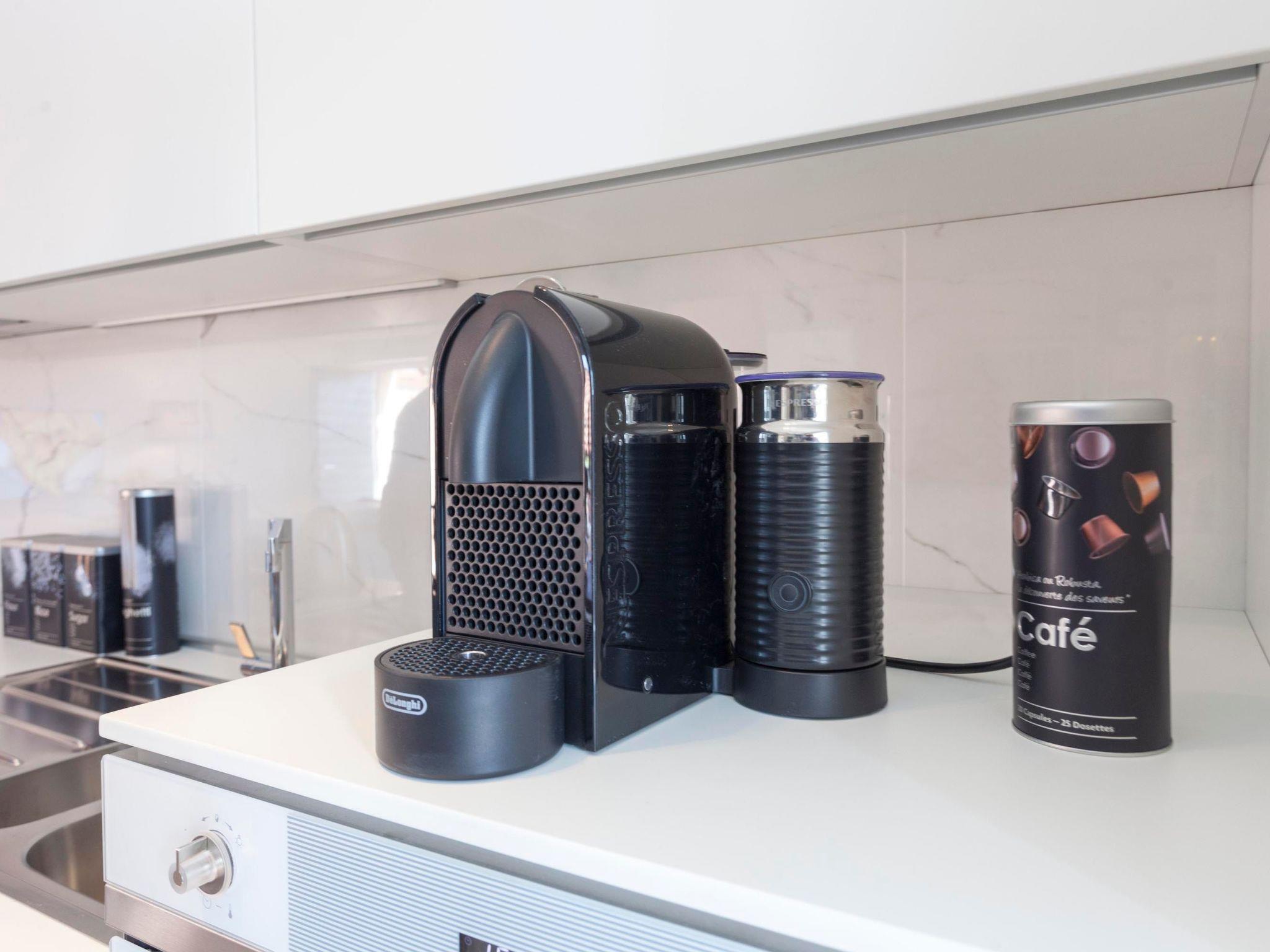 - KITCHEN: Open Kitchen, Stove (Glass Ceramic Hotplate), Oven, Microwave, Refrigerator with Freezer, Washing Machine, Electric Kettle, Cooking Utensils, Cutlery and Drinkware.
