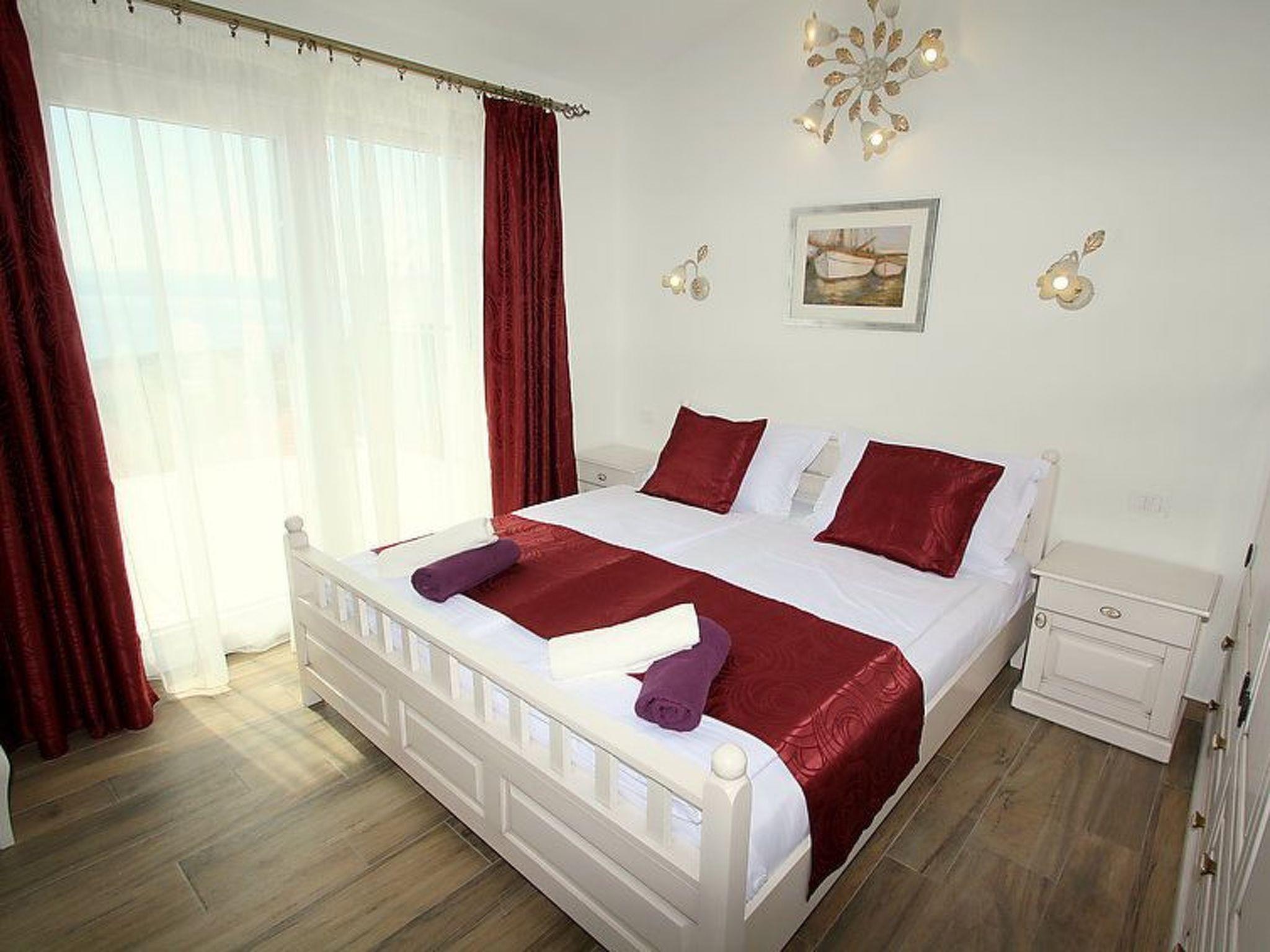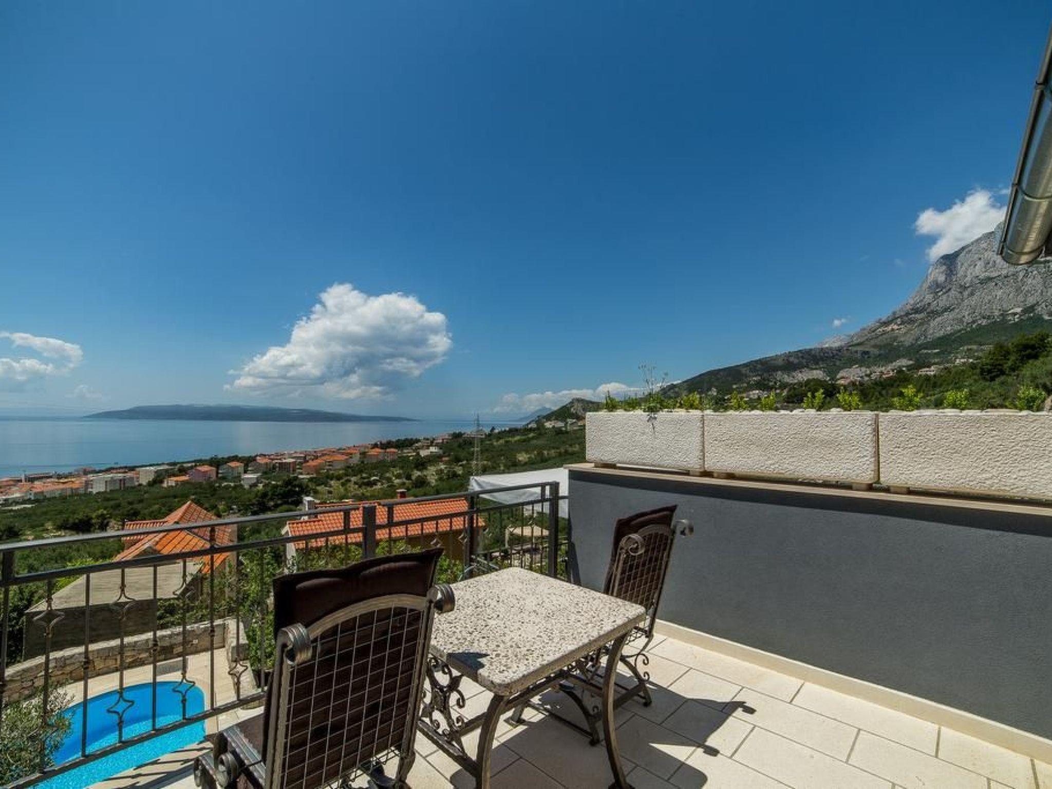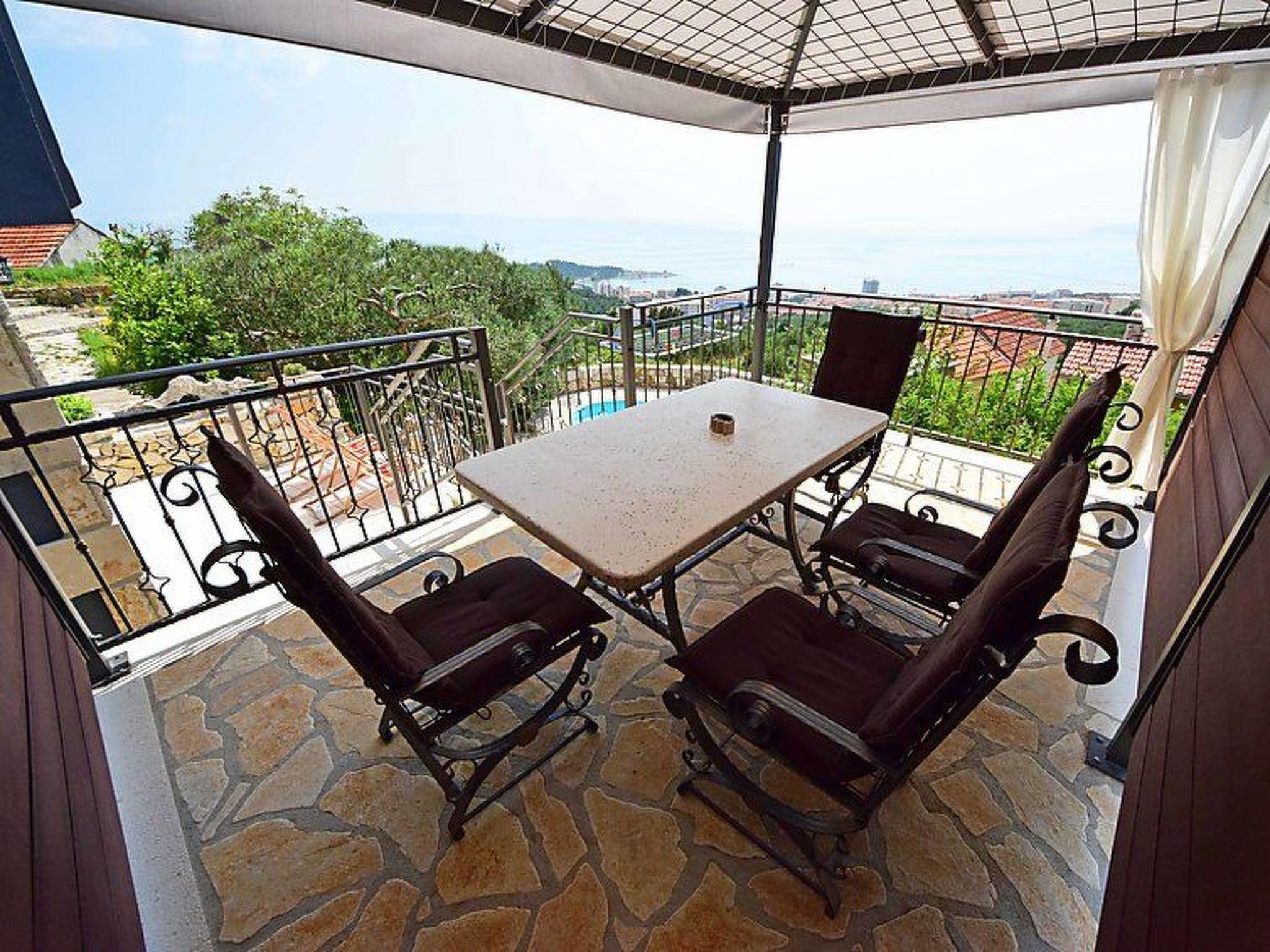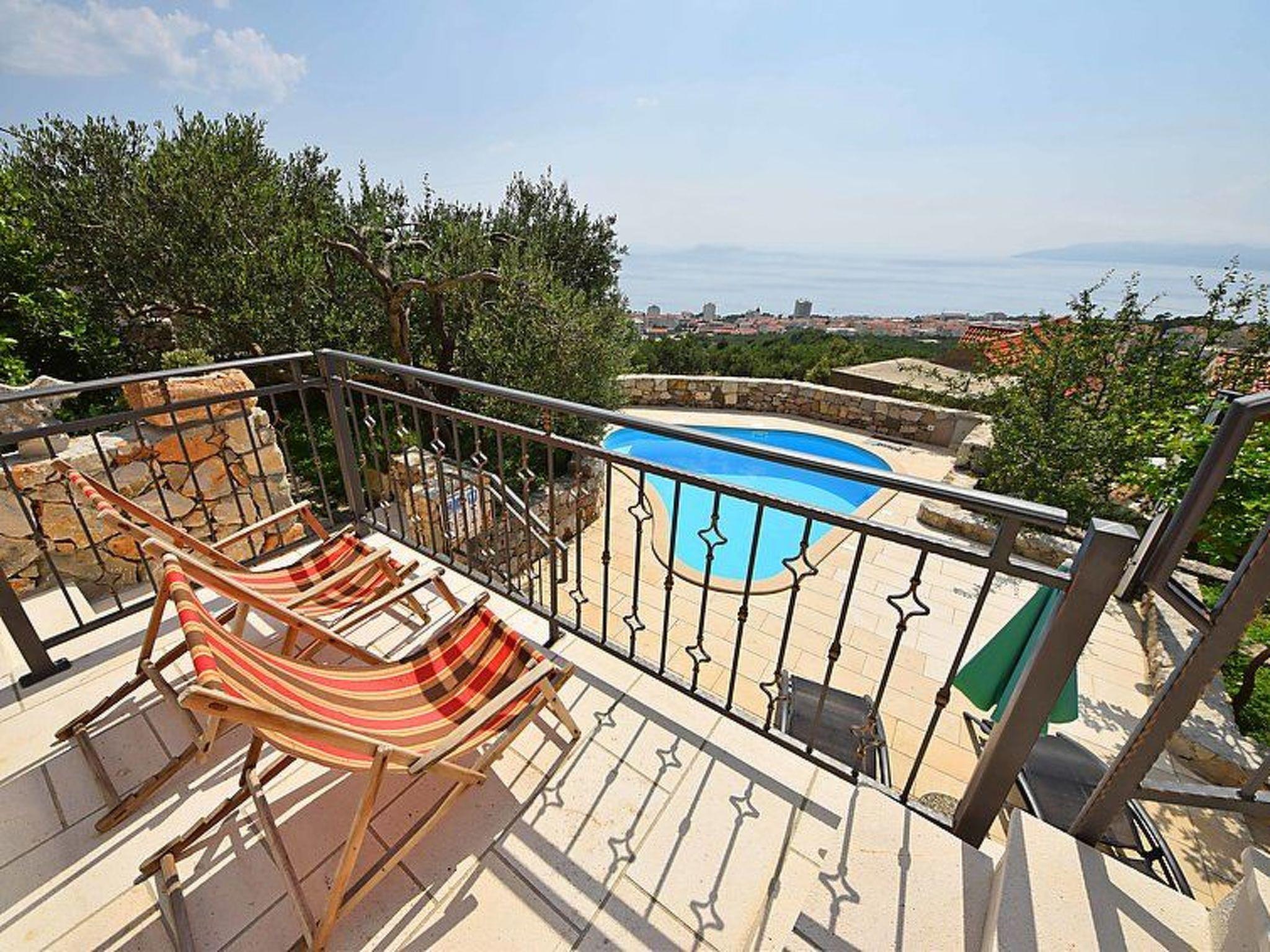 Villa Belvedere**** with heated swimming pool and garden Single-family house, 2 storeys. Above Makarska, in the hamlet Puharici 1.5 km from the centre of Makarska, in a quiet, sunny position on a slope, 1.5 km from the sea, 1.5 km from the beach.Marvellous panoramic view of the sea, the countryside and the resort.Ausstattung2-room house 50 m2 on 2 levels, south facing position. Living/dining room with 1 double sofabed (160 cm, length 200 cm), satellite TV (flat screen), air conditioning. Exit to the terrace. Open kitchen (oven, dishwasher, 4 ceramic glass hob hotplates, microwave, freezer, electric coffee machine). Shower/WC. Upper floor: 1 room with 1 double bed (180 cm, length 200 cm), satellite TV (flat screen), air conditioning. Exit to the terrace. Terrace 12 m2, terrace 9 m2. Terrace furniture, deck chairs. In the house: internet access, washing machine. Facilities: baby cot. Internet (WiFi, free).AußenbereichPrivate: heated swimming pool kidney shaped (6 x 5 m, depth 150 cm, 02.05. to 19.09.) with internal staircase. Outdoor shower, terrace (10 m2), garden furniture, barbecue.