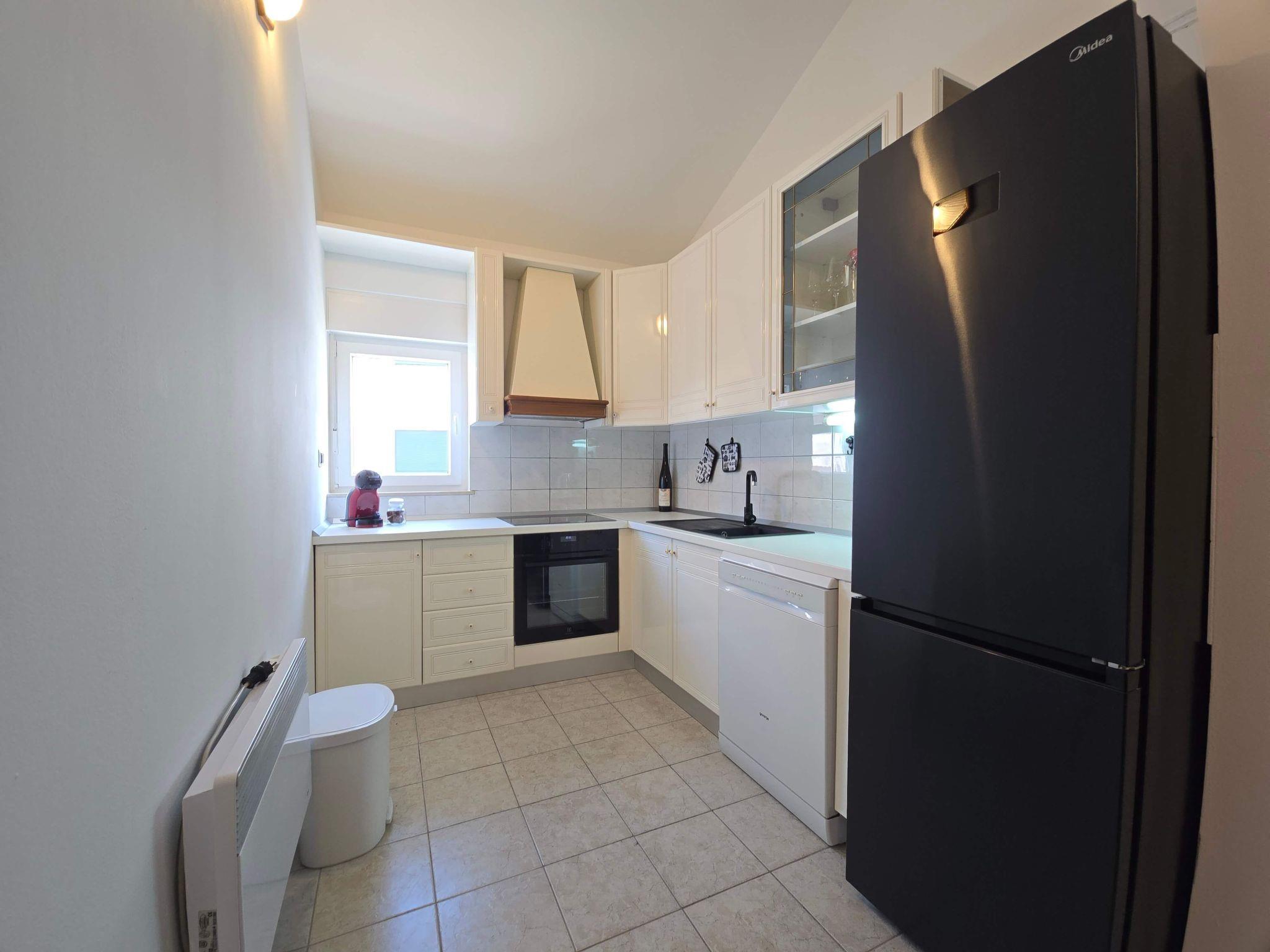 Inside, the apartment welcomes you with two snug bedrooms, thoughtfully arranged to provide a restful night's sleep after a day of adventure. The living area is a haven of relaxation, inviting guests to unwind in its comfortable embrace. Each room is equipped with air conditioning, ensuring your utmost comfort regardless of the season. For those who prefer to dine in, the kitchen is fully equipped, featuring modern conveniences such as a dishwasher and an electric kettle, making meal preparation both easy and enjoyable.