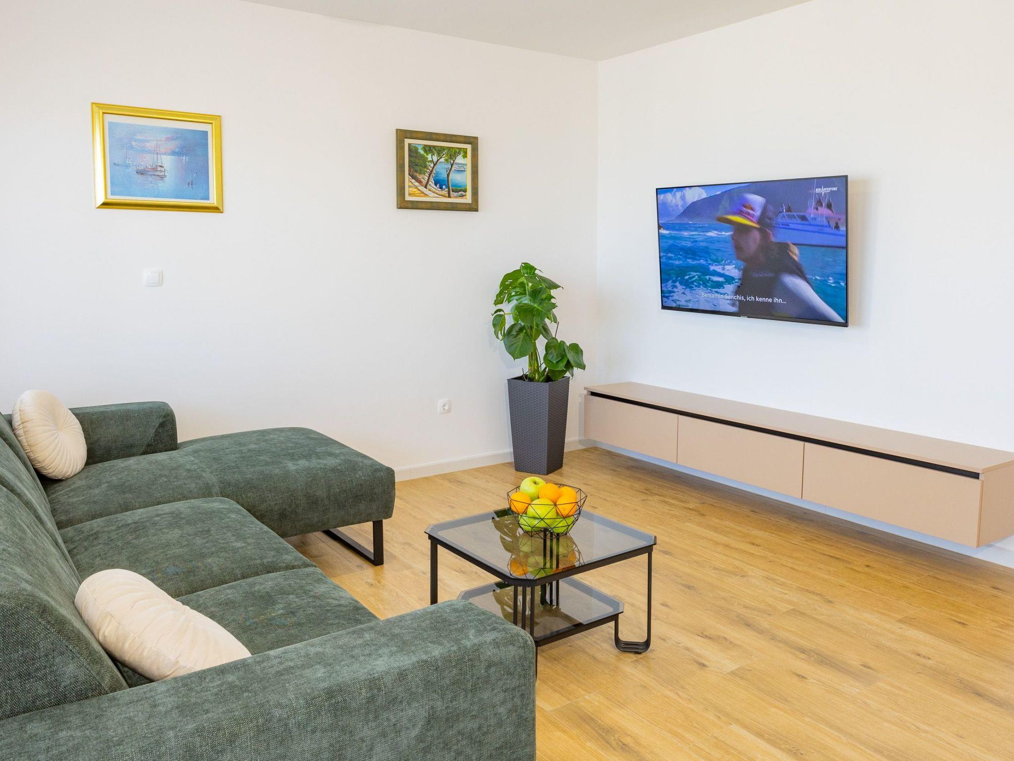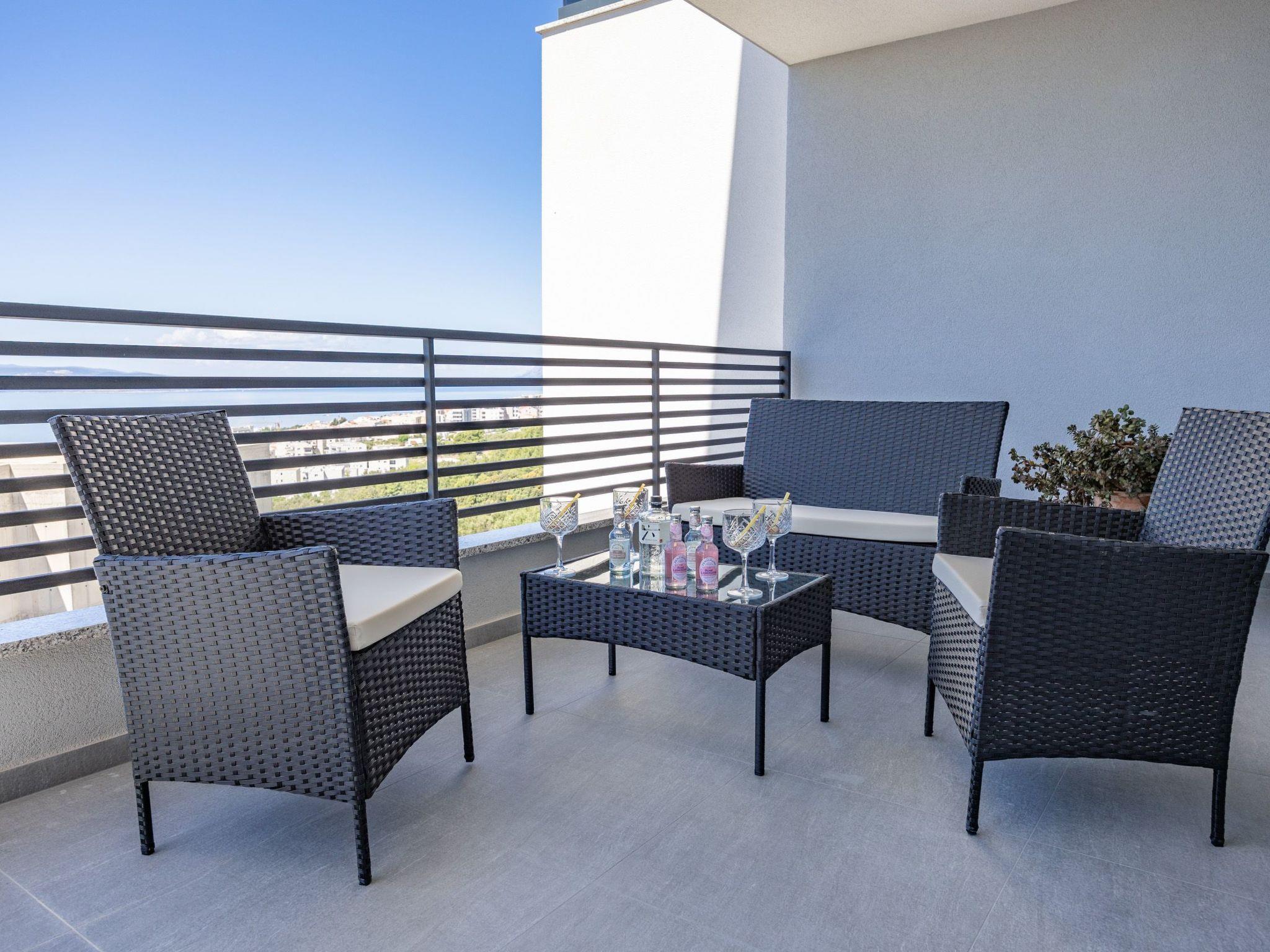 Next to the living room is a cosy balcony where you can enjoy a glass of wine while watching the enchanting sunset over the azure Adriatic Sea. Whether you're enjoying a relaxed breakfast or simply looking for a quiet moment of relaxation, the balcony offers the perfect place to soak up the natural beauty of the surroundings.