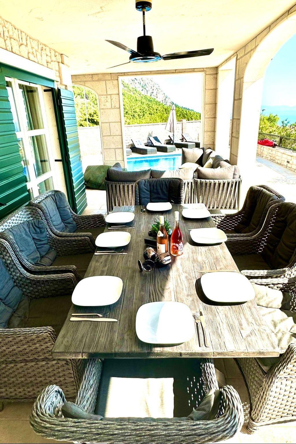 The fabulous villa is right behind the old town of Makarska on a hill. From there you can enjoy a breathtaking 180° view of the town Makarska, the islands Hvar and Brac, and in good visibility even Split. It is the perfect place to enjoy peace and quieton holiday. You access the site along little road that is rarely used.