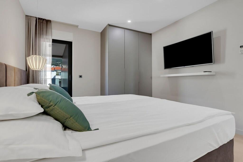 Feriehuset har i alt 10 lejligheder. Vi tilbyder vores gæster 5 store lejligheder med 2 soveværelser og 5 små lejligheder med 1 soveværelse. Lejlighederne på 1., 2. og 3. sal tilbyder en fantastisk havudsigt. Lejlighederne i stueetagen og på underetagen har en rummelig terrasse eller balkon. Vi glæder os til at byde dig velkommen til Villa Jelena.