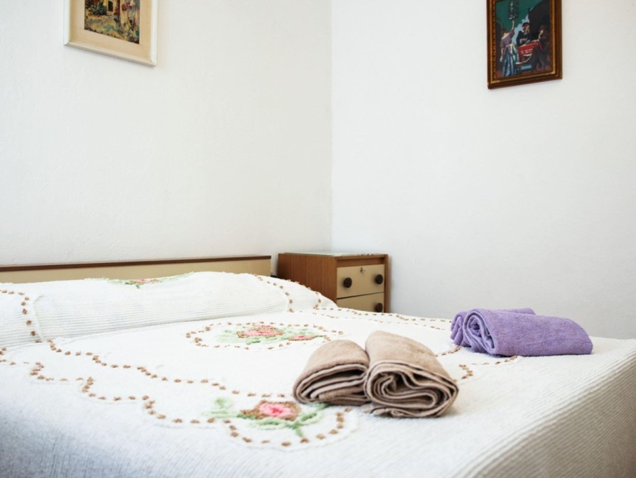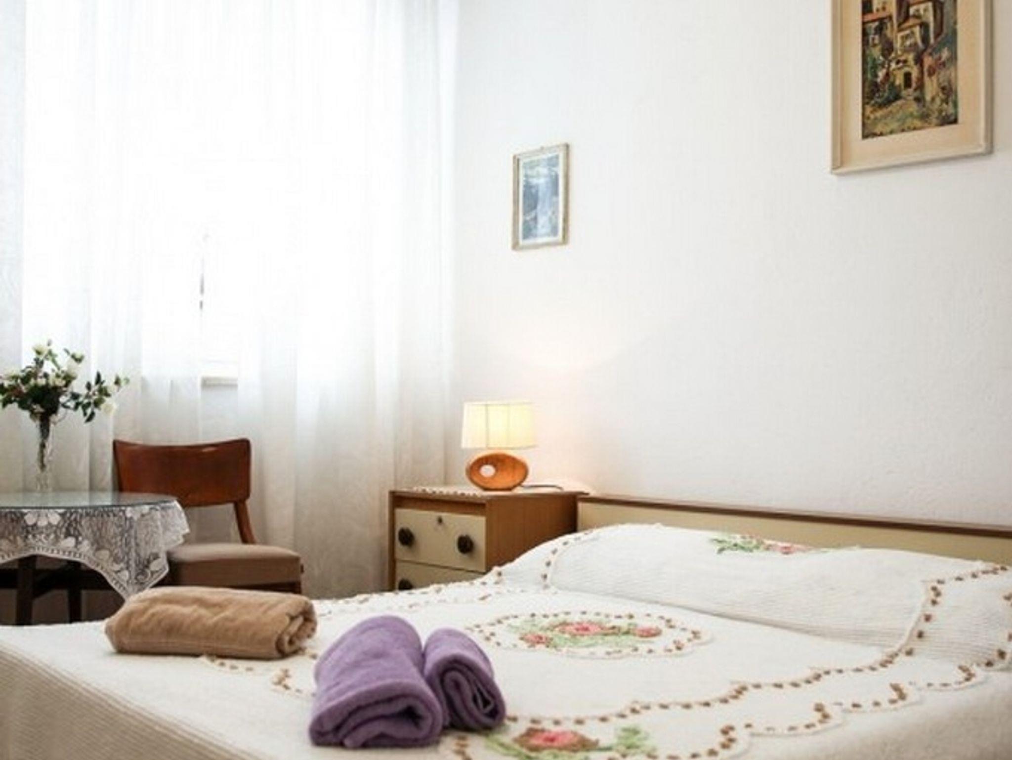 Ferienwohnung bietet Platz für 4 Gäste. Die Betten sind in Schlafzimmern, die es 1 gibt, und in Esszimmer, innerhalb einer Gesamtfläche von 38m2, angeordnet. Die Gäste haben einen eigenen Balkon zur Verfügung, auf der sie in warmen Sommernächten genießen können. Das Apartment bietet Meerblick. Es ist erlaubt, Speisen auf dem Gemeinschafts-Grill vorzubereiten. IM PREIS INBEGRIFFEN: Kurtaxe, Endreinigung, Klimatisierung, Internet, Kinderbett, Bügeleisen, Bügelbrett, Föhn. UNVERBINDLICHE ZUSÄTZLICHE KOSTEN: Wäschewaschen (10,00 € Waschen), Zusatzbett (10,00 € pro Nacht). Die Verfügbarkeit zusätzlicher Dienstleistungen in Ihrem reservierten Termin und die Preise derselben (falls nicht aufgeführt) müssen im Voraus überprüft werden. Zusätzliche Dienstleistungen die in der Zahlungsaufforderung nicht aufgeführt sind werden direkt beim Vermieter bezahlt, angenommen der Gast nutzt auch diese. Ermäßigung auf den Grundpreis: Gratistag 14=13 (bei einem Aufenthalt von 14 Tagen oder mehr erhalten Sie einen Gratistag für den Aufenthalt bis 31.12.26).