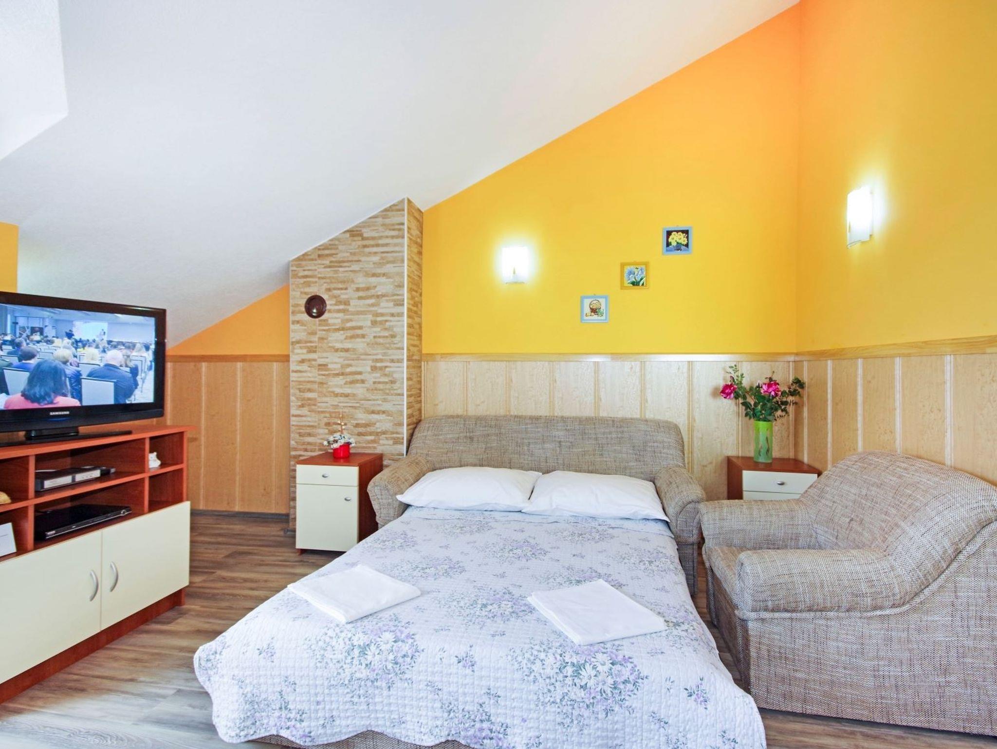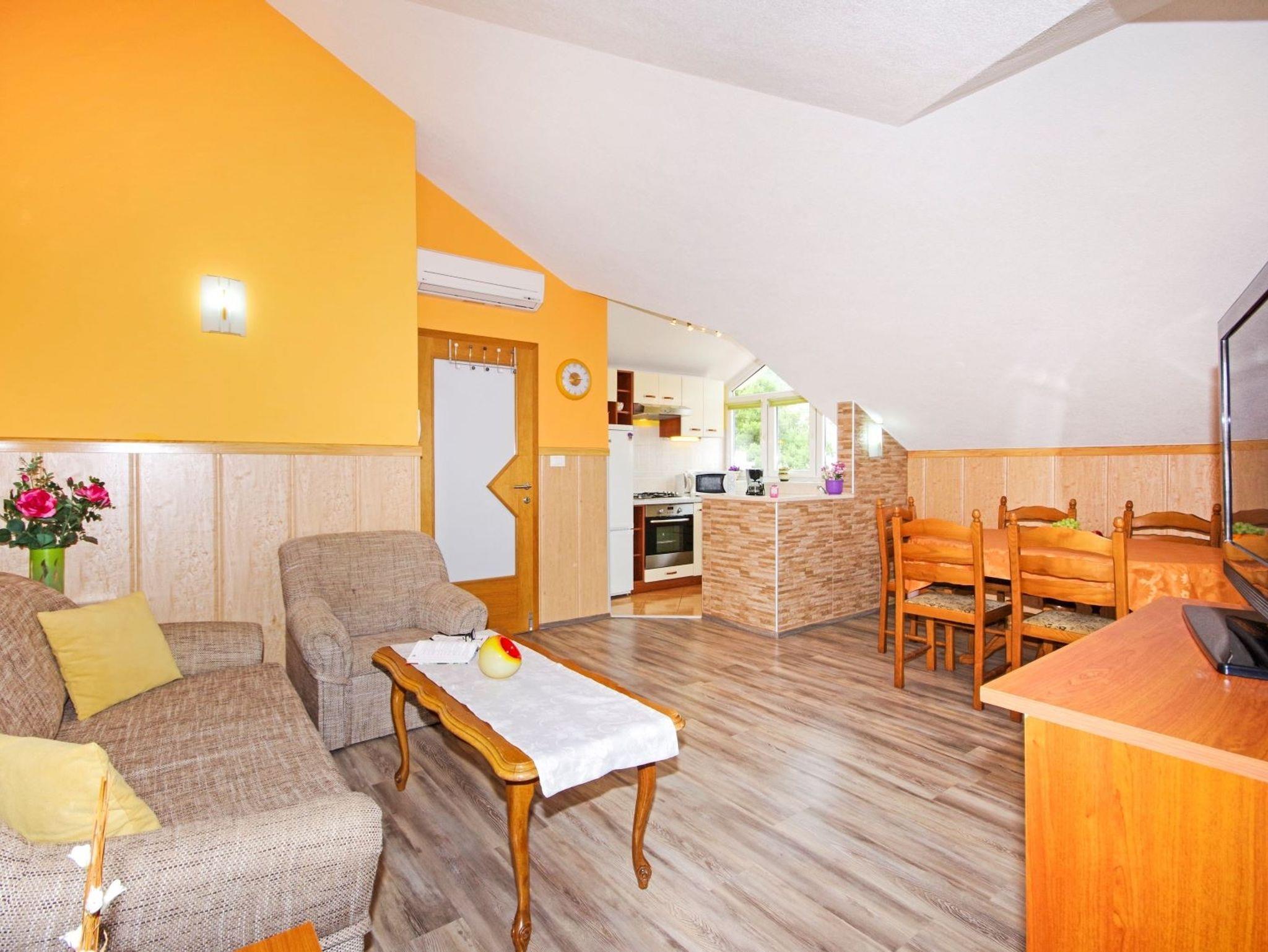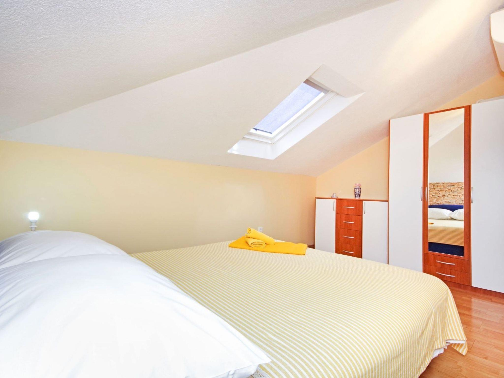 Ferienwohnung bietet Platz für 4 Gäste. Die Betten sind in Schlafzimmern, die es 1 gibt, und in Wohnzimmer, innerhalb einer Gesamtfläche von 48m2, angeordnet. Die Gäste haben einen eigenen Balkon zur Verfügung, auf der sie in warmen Sommernächten genießen können. Das Apartment bietet Meerblick. Es ist erlaubt, Speisen auf dem Gemeinschafts-Grill vorzubereiten. In der Unterkunftseinheit besteht die Möglichkeit des Mitbringens von Haustieren, und die Dienstleistung ist im Preis der Unterkunft enthalten. IM PREIS INBEGRIFFEN: Kurtaxe, Endreinigung, Klimatisierung, Parkplatz, Internet, Haustiere, Kinderbett, Bügeleisen, Bügelbrett, Föhn. Die Verfügbarkeit zusätzlicher Dienstleistungen in Ihrem reservierten Termin und die Preise derselben (falls nicht aufgeführt) müssen im Voraus überprüft werden. Zusätzliche Dienstleistungen die in der Zahlungsaufforderung nicht aufgeführt sind werden direkt beim Vermieter bezahlt, angenommen der Gast nutzt auch diese.