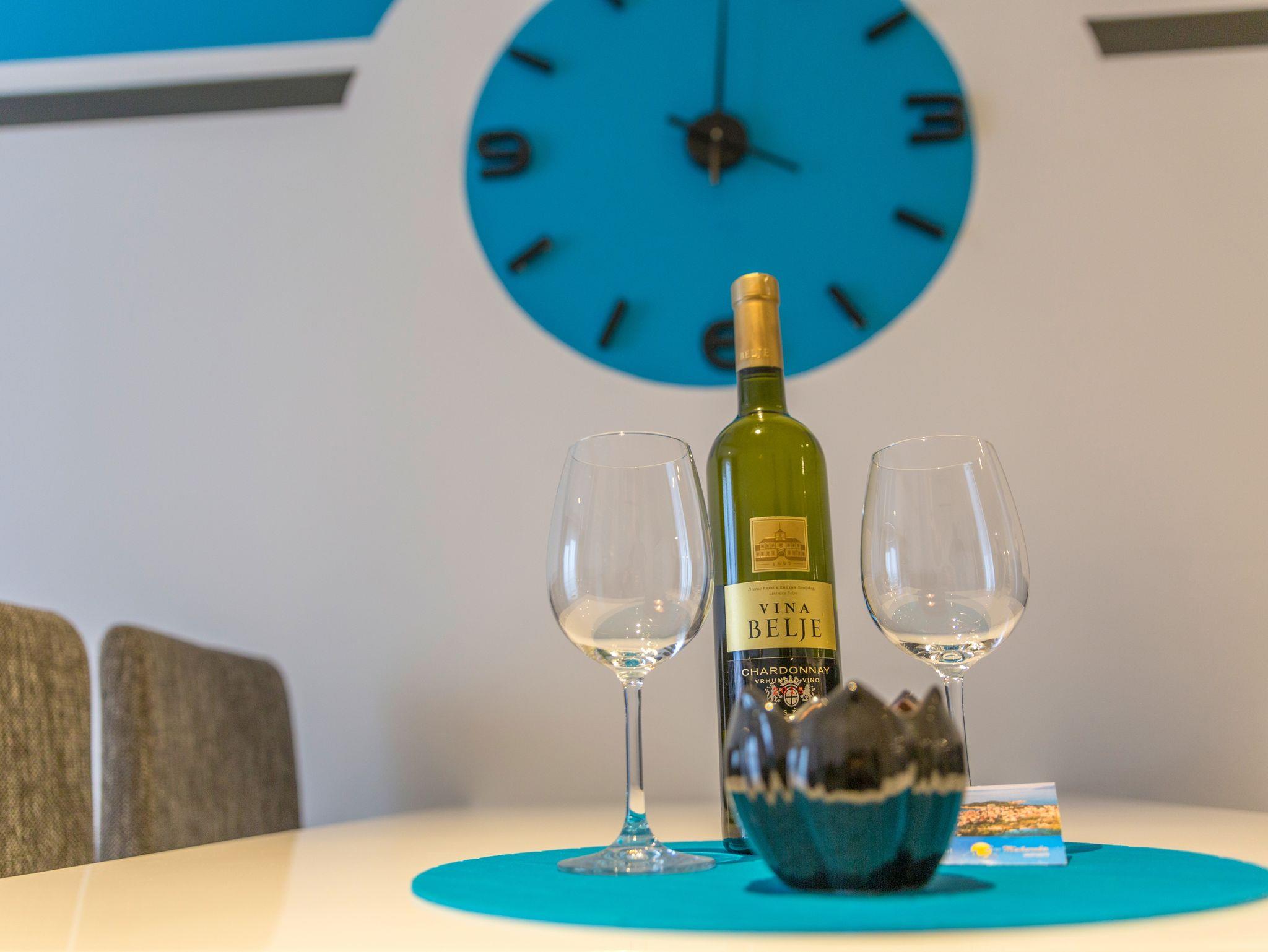 Hof (350m2, Kinderbereich, Sitzbereich), Parkplatz (Anzahl der Parkplätze: 6, Entfernung vom Objekt: im Hof), Pool: gemeinsam, Dimensionen: 8m x 4m x 1m, Wassertyp: Süßwasser, Heizung: Ja, Grill: gemeinsam, WiFi Internet, Föhn, Bügeleisen, Bügelbrett, Kinderbett