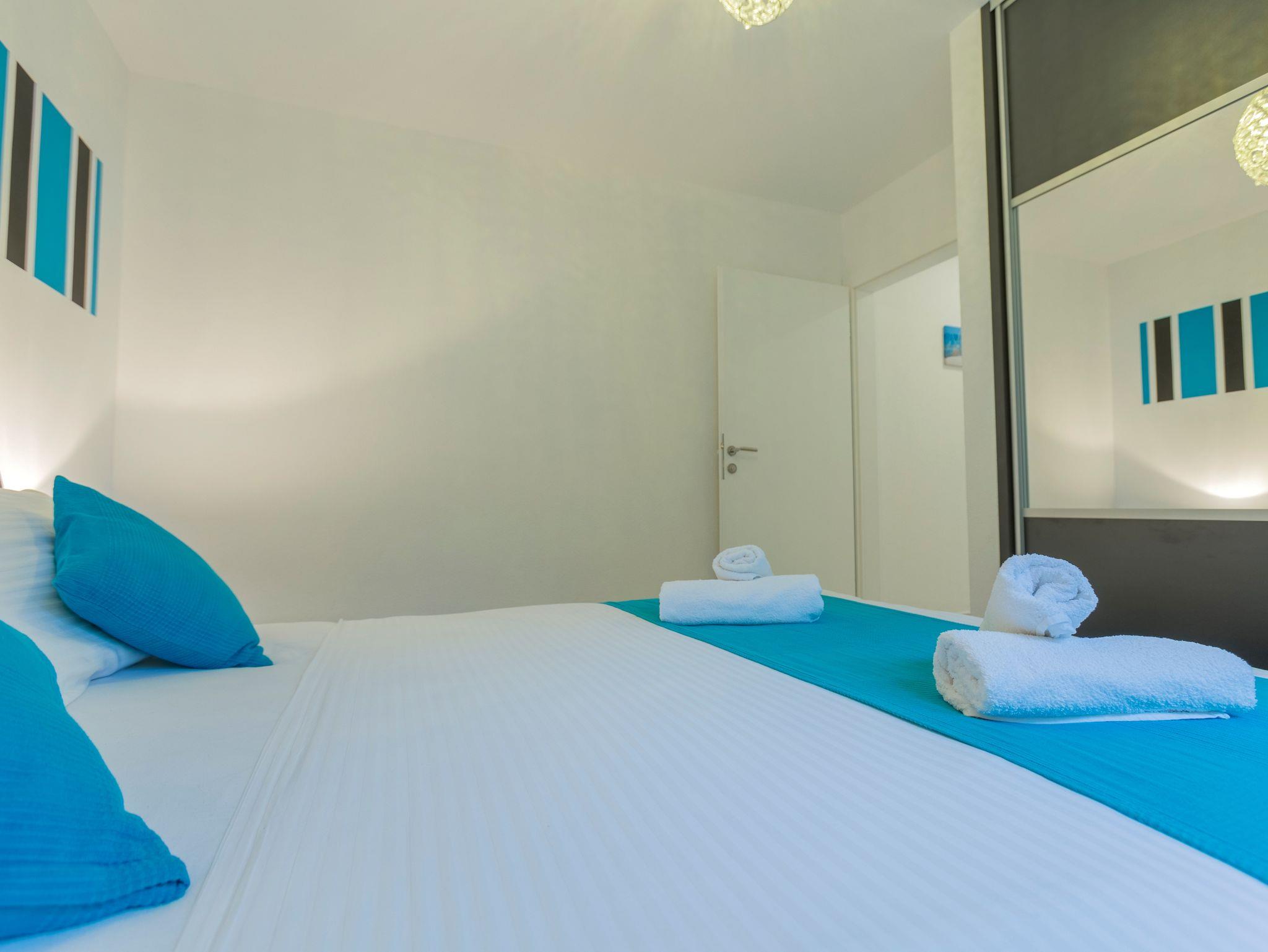 Ferienwohnung bietet Platz für 2 Gäste. Die Betten sind in Schlafzimmern, die es 1 gibt, innerhalb einer Gesamtfläche von 53m2, angeordnet. Es ist erlaubt, Speisen auf dem Gemeinschafts-Grill vorzubereiten. Während ihres Aufenthalts können Gäste das gemeinsam zur Nutzung stehende Schwimmbad benutzen. Die reservierte Unterkunftseinheit hat keinen Balkon und keine Terrasse. IM PREIS INBEGRIFFEN: Kurtaxe, Endreinigung, Klimatisierung, Pool, Parkplatz, Internet, Kinderbett, Bügeleisen, Bügelbrett, Föhn, 1 Bett für Kinder (im Preis enthalten). Die Verfügbarkeit zusätzlicher Dienstleistungen in Ihrem reservierten Termin und die Preise derselben (falls nicht aufgeführt) müssen im Voraus überprüft werden. Zusätzliche Dienstleistungen die in der Zahlungsaufforderung nicht aufgeführt sind werden direkt beim Vermieter bezahlt, angenommen der Gast nutzt auch diese.