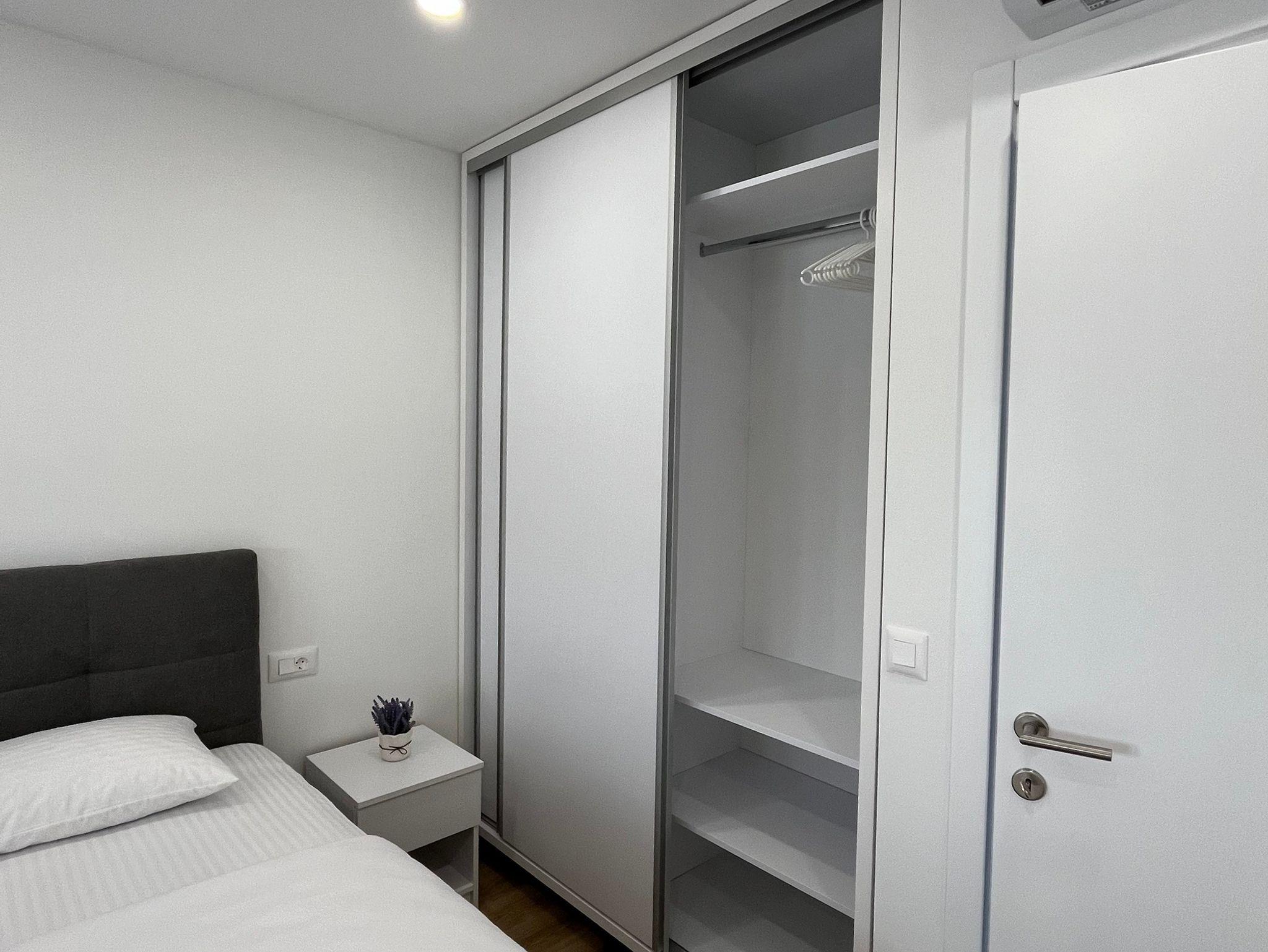 Ferienwohnung bietet Platz für 4 Gäste. Die Betten sind in Schlafzimmern, die es 1 gibt, und in Wohnzimmer, innerhalb einer Gesamtfläche von 47m2, angeordnet. Die Gäste haben einen eigenen Balkon zur Verfügung, auf der sie in warmen Sommernächten genießen können. Das Apartment bietet Meerblick. IM PREIS INBEGRIFFEN: Kurtaxe, Endreinigung, Klimatisierung, Parkplatz, Internet, Bügeleisen, Bügelbrett, Föhn. Die Verfügbarkeit zusätzlicher Dienstleistungen in Ihrem reservierten Termin und die Preise derselben (falls nicht aufgeführt) müssen im Voraus überprüft werden. Zusätzliche Dienstleistungen die in der Zahlungsaufforderung nicht aufgeführt sind werden direkt beim Vermieter bezahlt, angenommen der Gast nutzt auch diese.