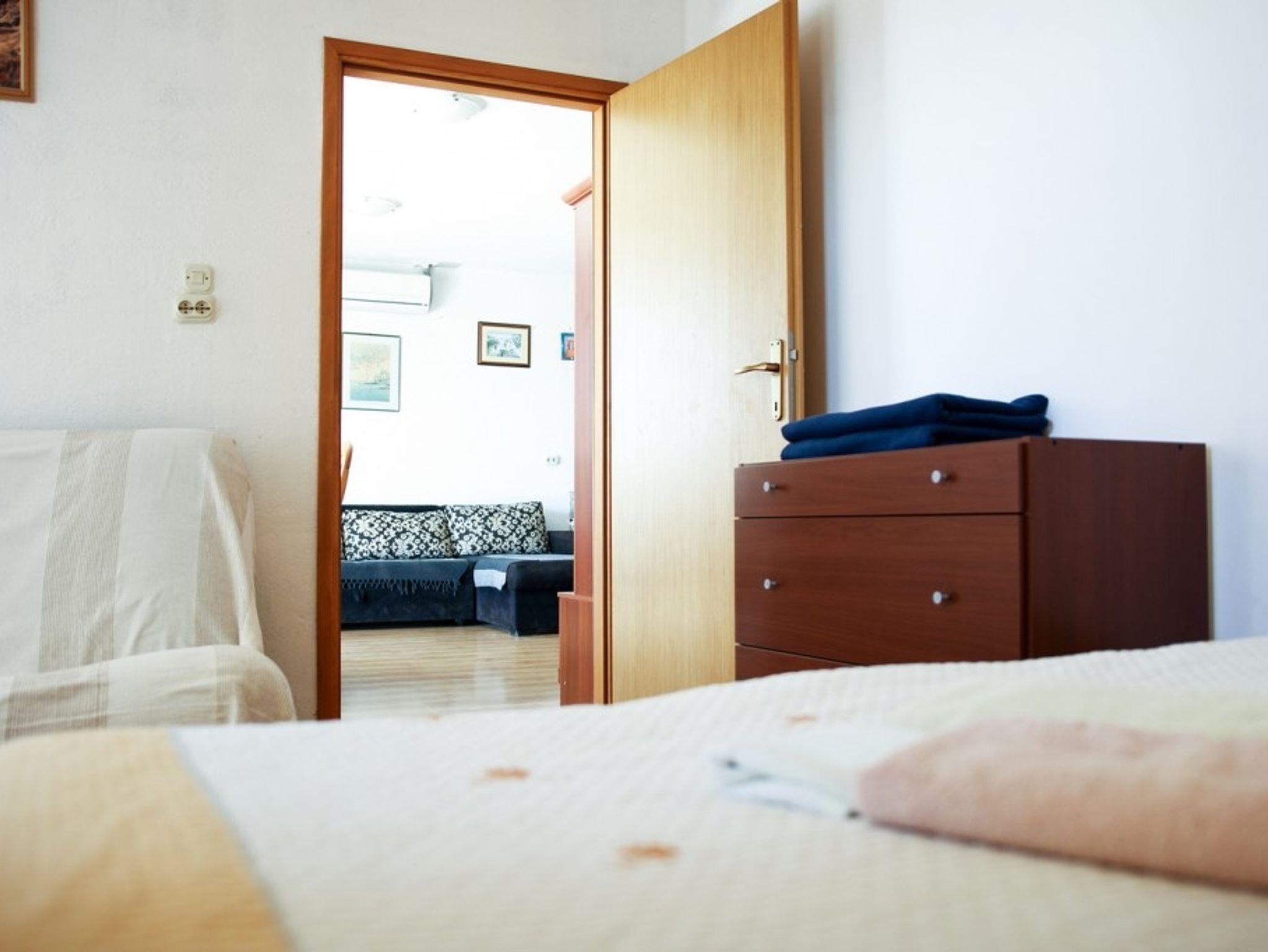 Ferienwohnung bietet Platz für 4 Gäste. Die Betten sind in Schlafzimmern, die es 1 gibt, und in Wohnzimmer, innerhalb einer Gesamtfläche von 56m2, angeordnet. Die Gäste haben eine eigene Terrasse zur Verfügung, auf der sie in warmen Sommernächten genießen können. Das Apartment bietet Meerblick. Es ist erlaubt, Speisen auf dem Gemeinschafts-Grill vorzubereiten. IM PREIS INBEGRIFFEN: Kurtaxe, Endreinigung, Klimatisierung, Internet, Kinderbett, Bügeleisen, Bügelbrett, Föhn. UNVERBINDLICHE ZUSÄTZLICHE KOSTEN: Wäschewaschen (10,00 € Waschen), Zusatzbett (10,00 € pro Nacht). Die Verfügbarkeit zusätzlicher Dienstleistungen in Ihrem reservierten Termin und die Preise derselben (falls nicht aufgeführt) müssen im Voraus überprüft werden. Zusätzliche Dienstleistungen die in der Zahlungsaufforderung nicht aufgeführt sind werden direkt beim Vermieter bezahlt, angenommen der Gast nutzt auch diese. Ermäßigung auf den Grundpreis: Gratistag 14=13 (bei einem Aufenthalt von 14 Tagen oder mehr erhalten Sie einen Gratistag für den Aufenthalt bis 31.12.26).