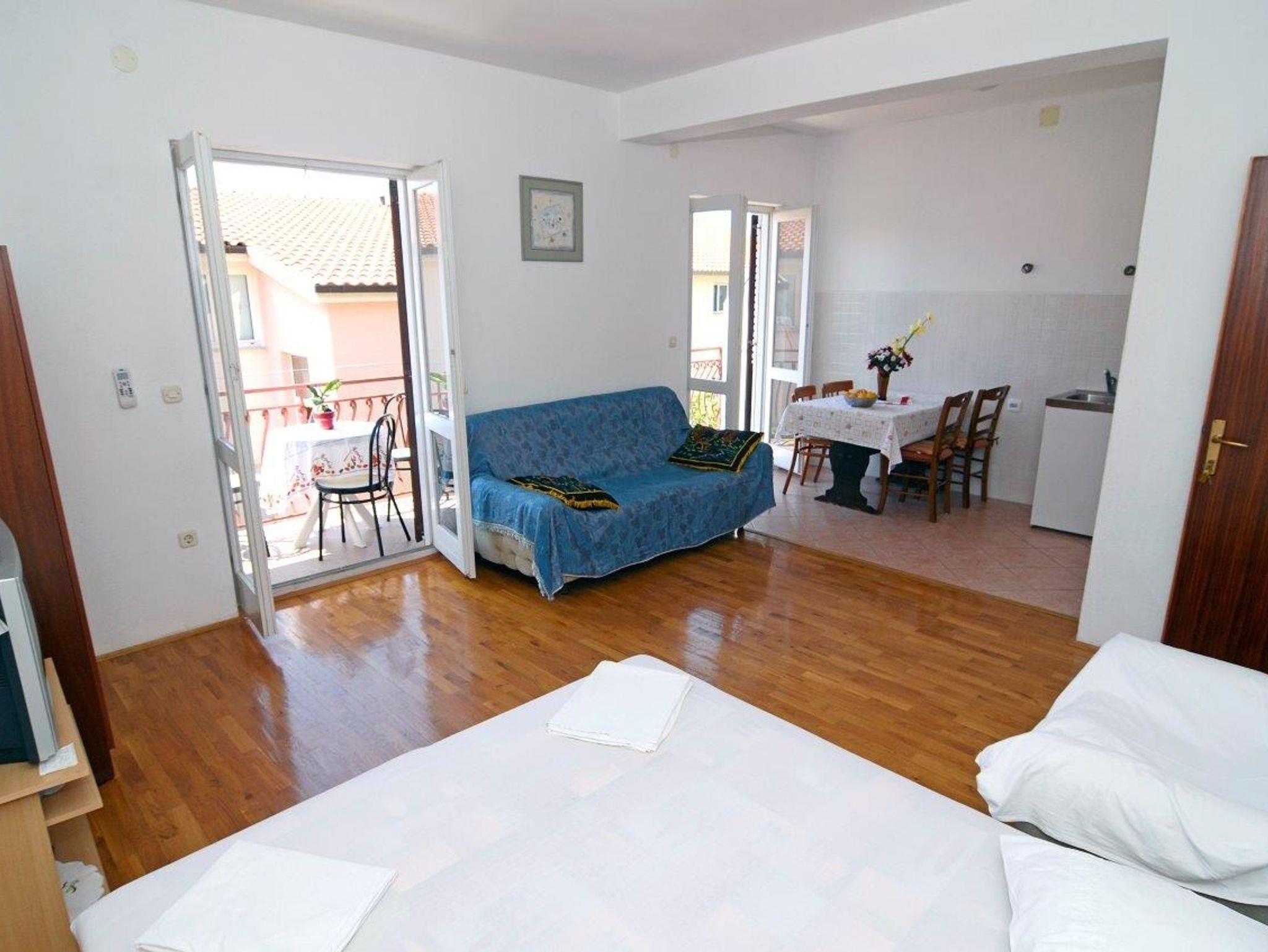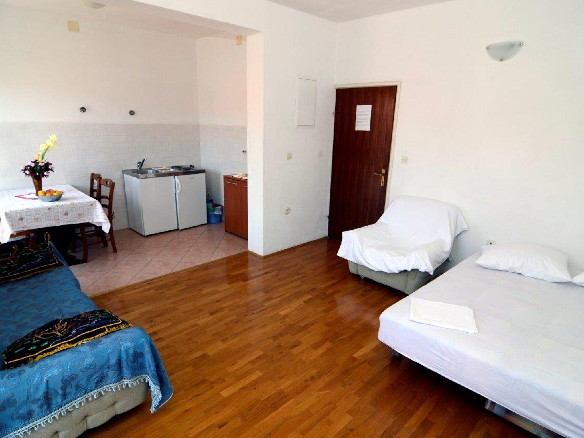 Studio bietet Platz für 3 Gäste. Die Betten sind in Schlafzimmern, die es 1 gibt, innerhalb einer Gesamtfläche von 27m2, angeordnet. Die Gäste haben einen eigenen Balkon zur Verfügung, auf der sie in warmen Sommernächten genießen können. Es ist erlaubt, Speisen auf dem Gemeinschafts-Grill vorzubereiten. Räume der gebuchten Unterkunftseinheit werden nicht in eine Ganze verbunden. Unterkunftseinheit hat Räume, die von dem Rest der Einheit abgetrennt werden. IM PREIS INBEGRIFFEN: Kurtaxe, Endreinigung, Klimatisierung, Parkplatz, Internet, Bügeleisen, Bügelbrett, Föhn, tragbarer Grill. VERBINDLICHE ZUSÄTZLICHE KOSTEN: Aufzahlung für Kurzaufenthalte (prozentualer Zuschlag pro Nächtigungsanzahl: 30% - 1, 20% - 2, 10% - 3). UNVERBINDLICHE ZUSÄTZLICHE KOSTEN: Zusatzbett (15,00 € pro Nacht). Die Verfügbarkeit zusätzlicher Dienstleistungen in Ihrem reservierten Termin und die Preise derselben (falls nicht aufgeführt) müssen im Voraus überprüft werden. Zusätzliche Dienstleistungen die in der Zahlungsaufforderung nicht aufgeführt sind werden direkt beim Vermieter bezahlt, angenommen der Gast nutzt auch diese. Ermäßigung auf den Grundpreis: Gratistag 14=13 (bei einem Aufenthalt von 14 Tagen oder mehr erhalten Sie einen Gratistag für den Aufenthalt bis 31.12.26).