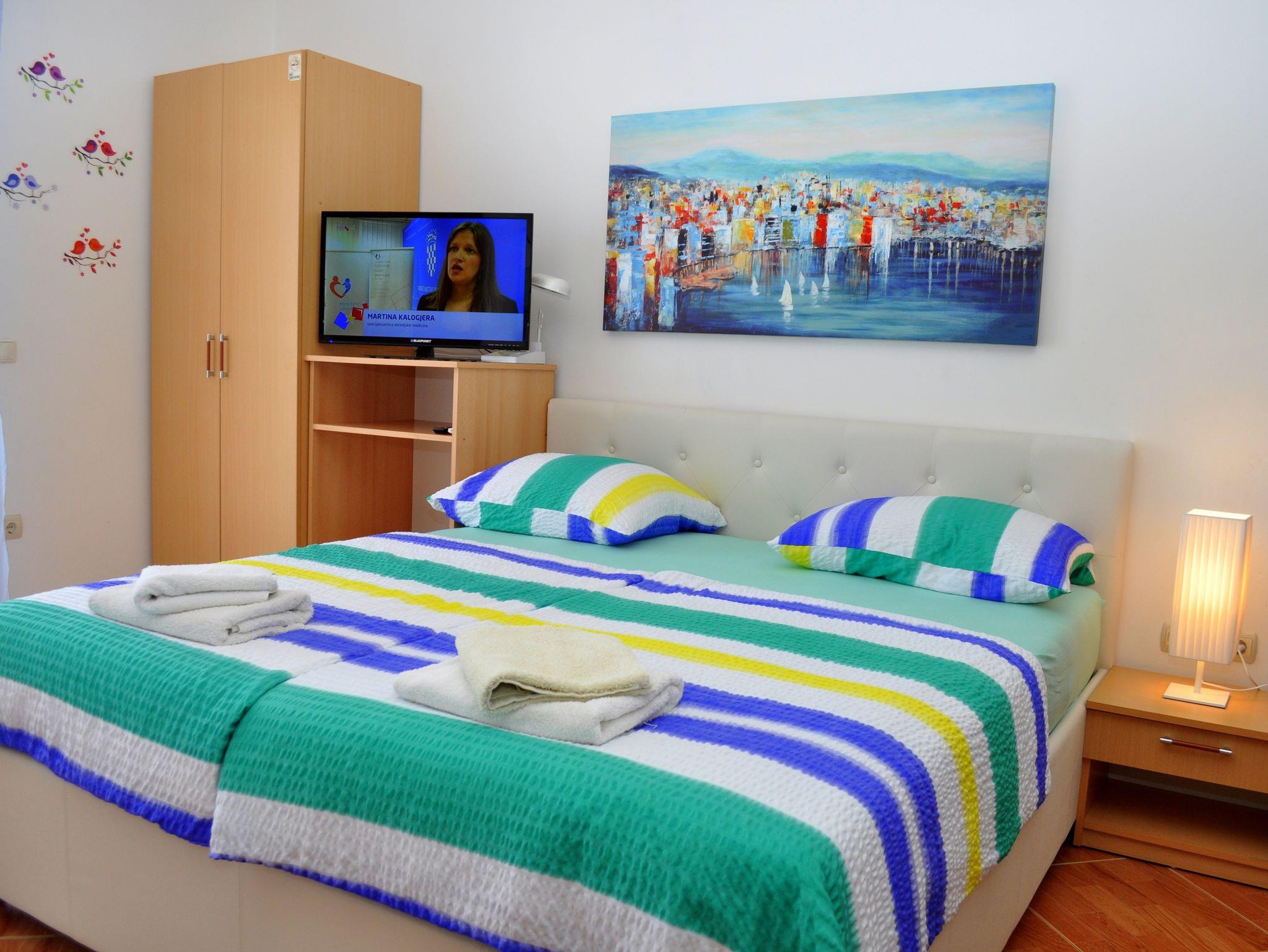 Studio bietet Platz für 3 Gäste. Die Betten sind in Schlafzimmern, die es 1 gibt, innerhalb einer Gesamtfläche von 27m2, angeordnet. Die Gäste haben einen eigenen Balkon zur Verfügung, auf der sie in warmen Sommernächten genießen können. Das Studio-Apartment bietet Meerblick. IM PREIS INBEGRIFFEN: Kurtaxe, Endreinigung, Klimatisierung, Parkplatz, Internet, Bügeleisen, Bügelbrett, Föhn. Die Verfügbarkeit zusätzlicher Dienstleistungen in Ihrem reservierten Termin und die Preise derselben (falls nicht aufgeführt) müssen im Voraus überprüft werden. Zusätzliche Dienstleistungen die in der Zahlungsaufforderung nicht aufgeführt sind werden direkt beim Vermieter bezahlt, angenommen der Gast nutzt auch diese. Ermäßigung auf den Grundpreis: Gratistag 21=19 (bei einem Aufenthalt von 21 Tagen oder mehr erhalten Sie 2 Gratistage für den Aufenthalt bis 31.12.26).