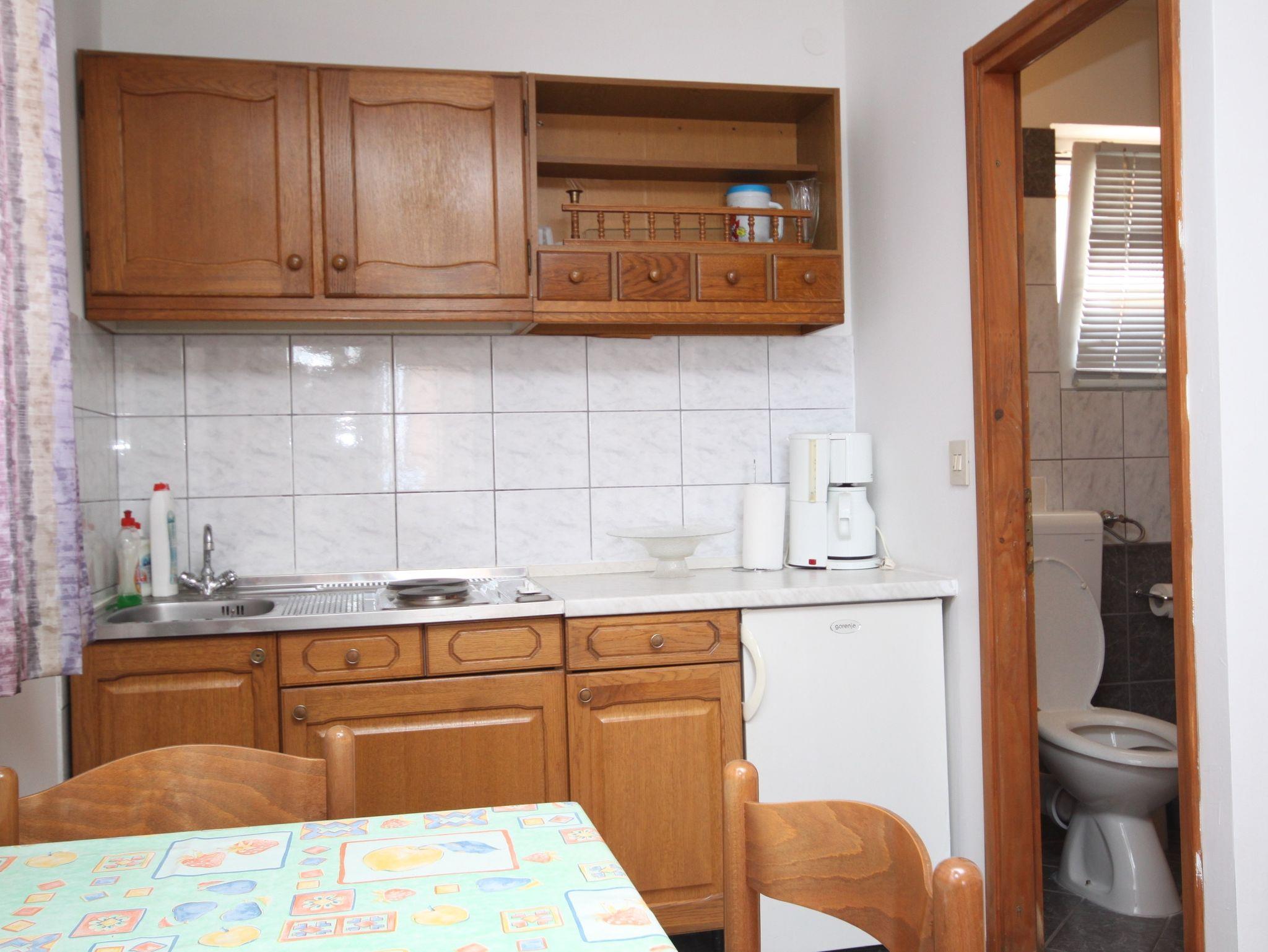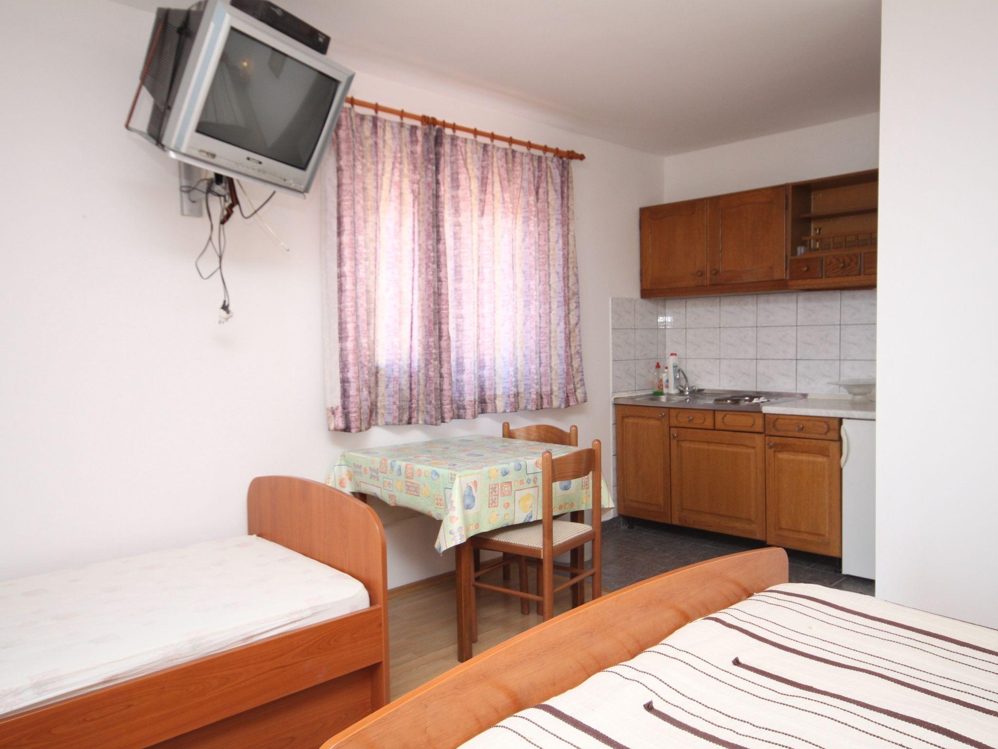 Studio bietet Platz für 3 Gäste. Die Betten sind in Schlafzimmern, die es 1 gibt, und in Esszimmer, innerhalb einer Gesamtfläche von 22m2, angeordnet. Die Gäste haben eine eigene Terrasse zur Verfügung, auf der sie in warmen Sommernächten genießen können. Das Studio-Apartment bietet Meerblick. IM PREIS INBEGRIFFEN: Kurtaxe, Endreinigung, Klimatisierung, Parkplatz, Internet, Bügeleisen, Bügelbrett, Föhn. VERBINDLICHE ZUSÄTZLICHE KOSTEN: Aufzahlung für Kurzaufenthalte (prozentualer Zuschlag pro Nächtigungsanzahl: 30% - 1, 20% - 2, 10% - 3). UNVERBINDLICHE ZUSÄTZLICHE KOSTEN: Zusatzbett (10,00 € pro Nacht). Die Verfügbarkeit zusätzlicher Dienstleistungen in Ihrem reservierten Termin und die Preise derselben (falls nicht aufgeführt) müssen im Voraus überprüft werden. Zusätzliche Dienstleistungen die in der Zahlungsaufforderung nicht aufgeführt sind werden direkt beim Vermieter bezahlt, angenommen der Gast nutzt auch diese.