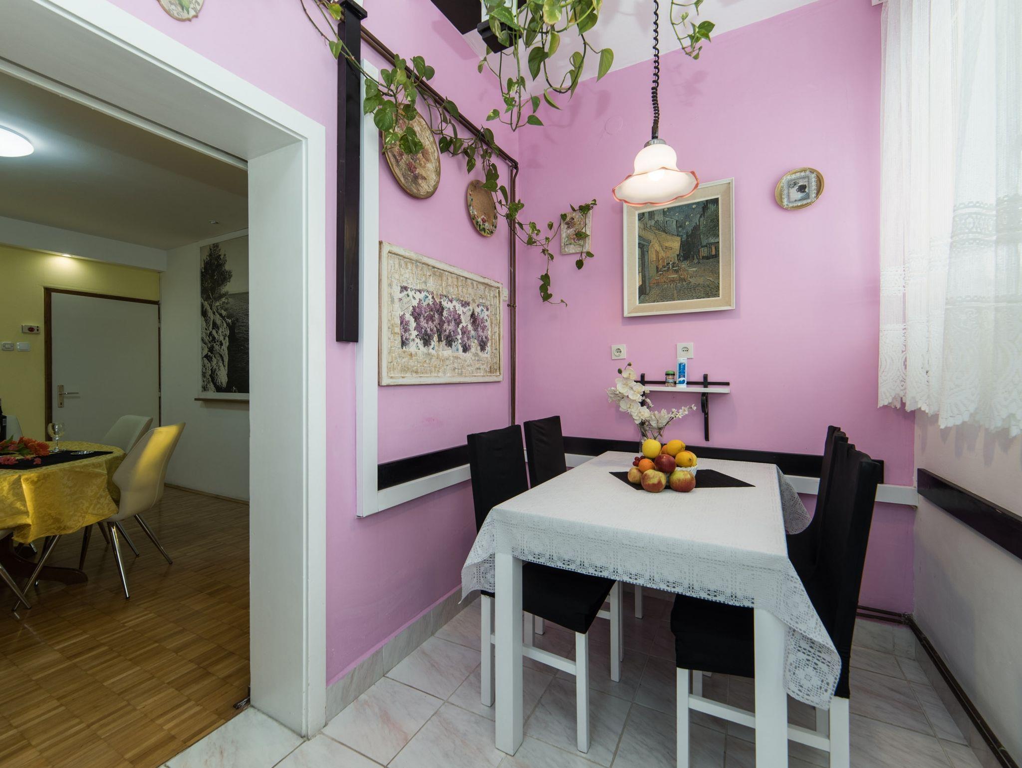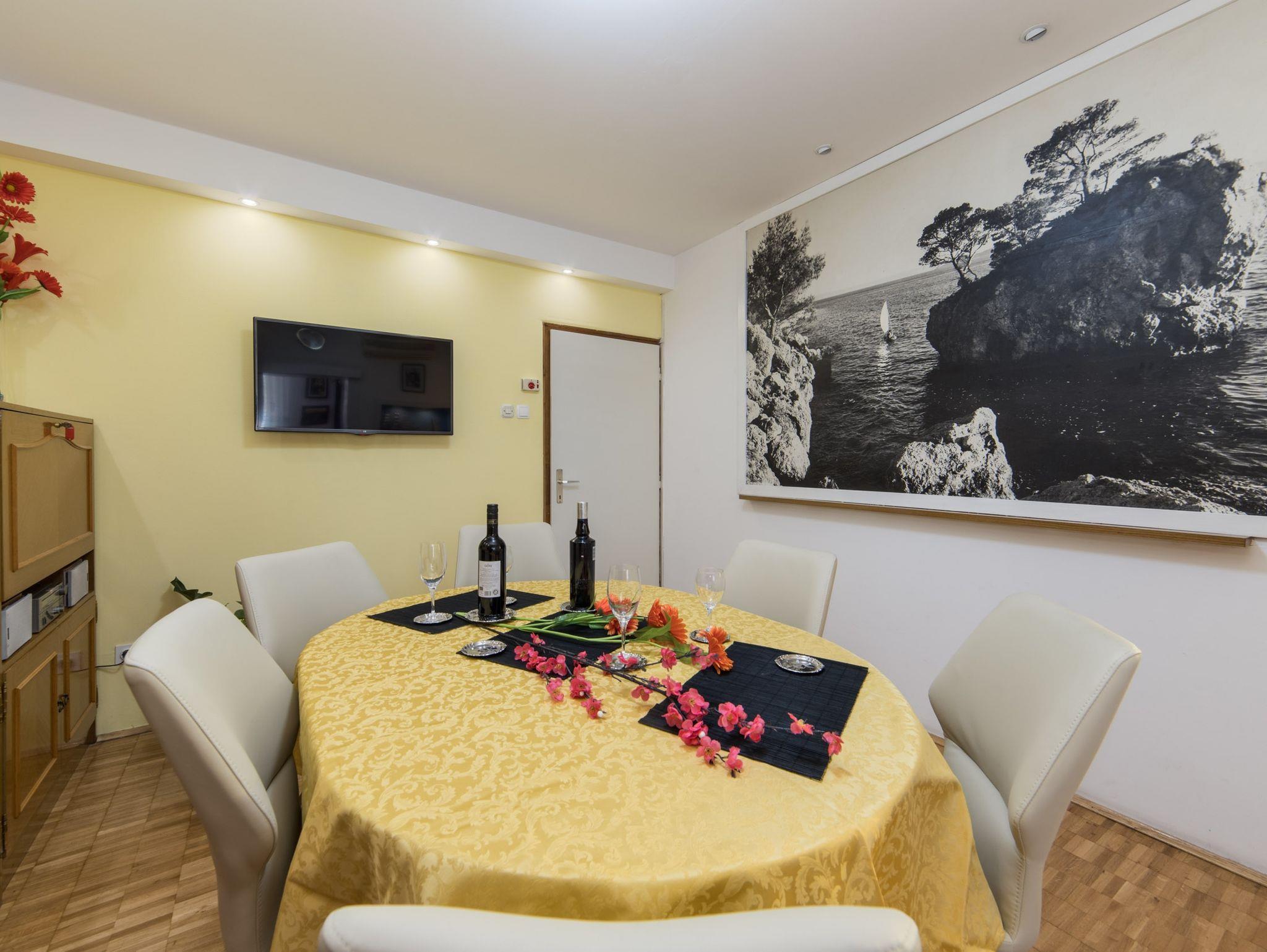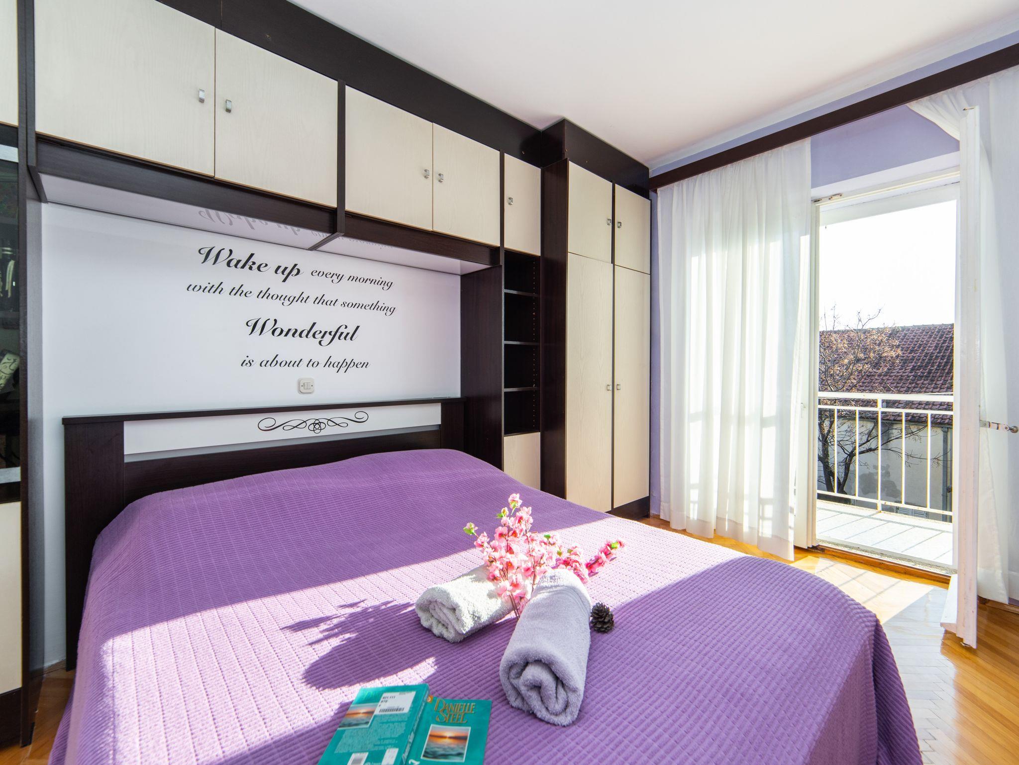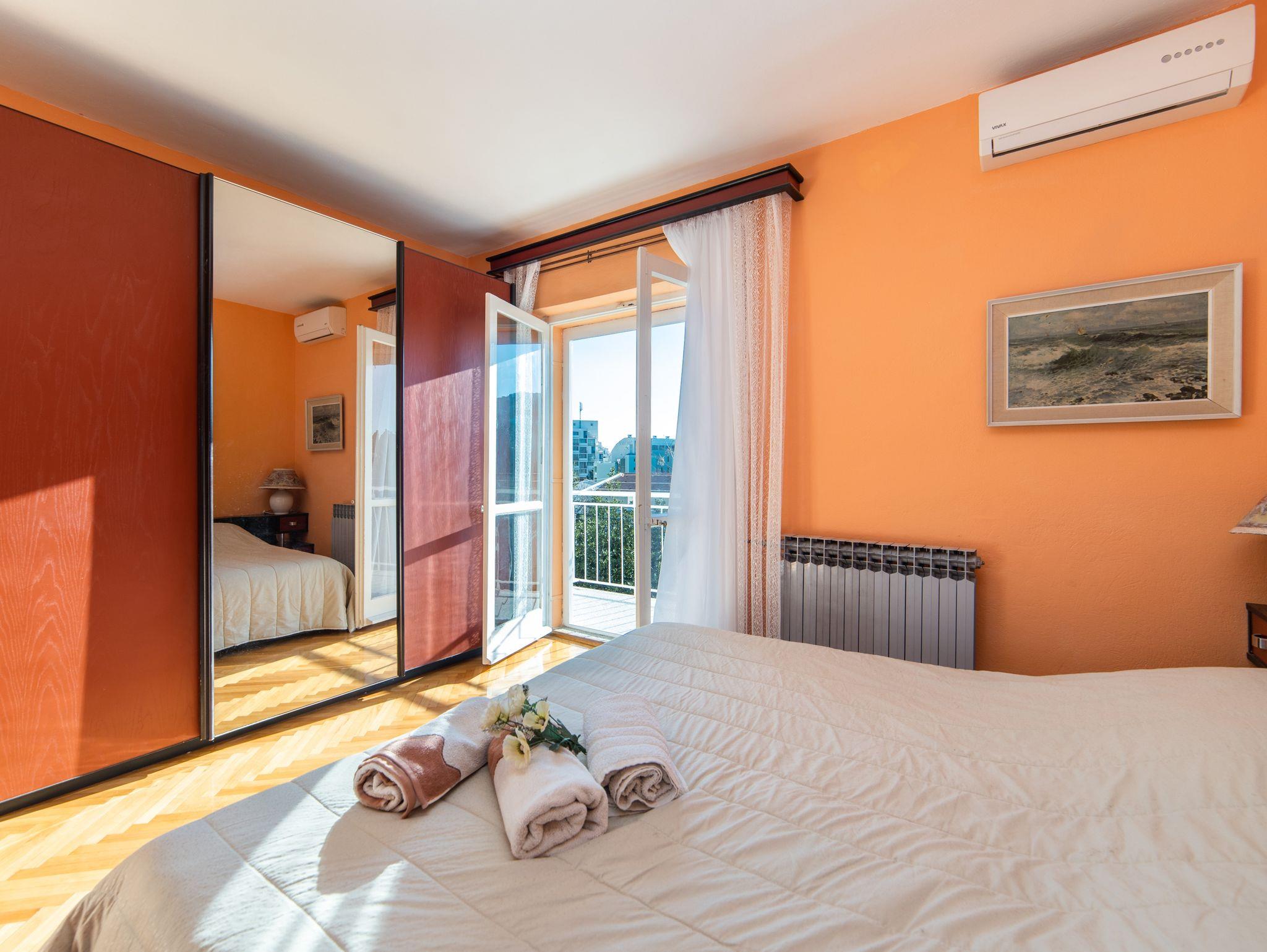Ferienwohnung bietet Platz für 6 Gäste. Die Betten sind in Schlafzimmern, die es 2 gibt, und in Wohnzimmer, innerhalb einer Gesamtfläche von 93m2, angeordnet. Die Gäste haben einen eigenen Balkon zur Verfügung, auf der sie in warmen Sommernächten genießen können. Das Apartment bietet Meerblick. Es ist erlaubt, Speisen auf dem Gemeinschafts-Grill vorzubereiten. In der Unterkunftseinheit besteht die Möglichkeit des Mitbringens von Haustieren gegen Aufpreis. IM PREIS INBEGRIFFEN: Kurtaxe, Endreinigung, Klimatisierung, Parkplatz, Internet, Kinderbett, Bügeleisen, Bügelbrett, Föhn, tragbarer Grill. VERBINDLICHE ZUSÄTZLICHE KOSTEN: Aufzahlung für Kurzaufenthalte (prozentualer Zuschlag pro Nächtigungsanzahl: 30% - 1, 20% - 2, 10% - 3). UNVERBINDLICHE ZUSÄTZLICHE KOSTEN: Haustiere (5,00 € pro Nacht), Zusatzbett (15,00 € pro Nacht). Die Verfügbarkeit zusätzlicher Dienstleistungen in Ihrem reservierten Termin und die Preise derselben (falls nicht aufgeführt) müssen im Voraus überprüft werden. Zusätzliche Dienstleistungen die in der Zahlungsaufforderung nicht aufgeführt sind werden direkt beim Vermieter bezahlt, angenommen der Gast nutzt auch diese.