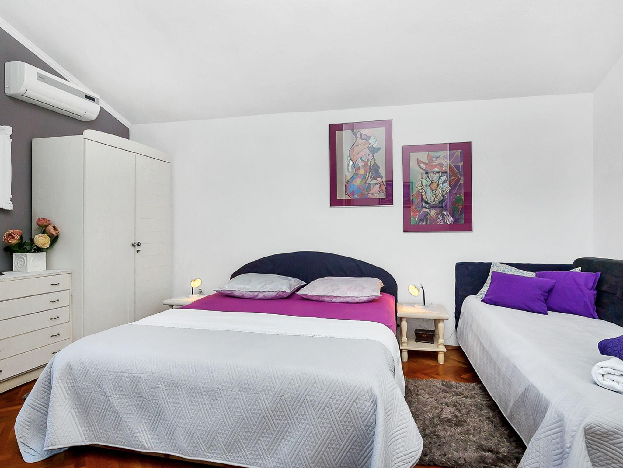 Studio bietet Platz für 3 Gäste. Die Betten sind in Schlafzimmern, die es 1 gibt, innerhalb einer Gesamtfläche von 19m2, angeordnet. Die Gäste haben eine eigene Terrasse zur Verfügung, auf der sie in warmen Sommernächten genießen können. IM PREIS INBEGRIFFEN: Kurtaxe, Endreinigung, Klimatisierung, Parkplatz, Internet, Wäschewaschen, Kinderbett, Bügeleisen, Bügelbrett, Föhn. VERBINDLICHE ZUSÄTZLICHE KOSTEN: Aufzahlung für Kurzaufenthalte (prozentualer Zuschlag pro Nächtigungsanzahl: 30% - 1, 20% - 2, 10% - 3). Die Verfügbarkeit zusätzlicher Dienstleistungen in Ihrem reservierten Termin und die Preise derselben (falls nicht aufgeführt) müssen im Voraus überprüft werden. Zusätzliche Dienstleistungen die in der Zahlungsaufforderung nicht aufgeführt sind werden direkt beim Vermieter bezahlt, angenommen der Gast nutzt auch diese. Ermäßigung auf den Grundpreis: Gratistag 28=25 (bei einem Aufenthalt von 28 oder mehr Tagen erhalten Sie 3 kostenlose Tage für den Aufenthalt bis 31.12.26).