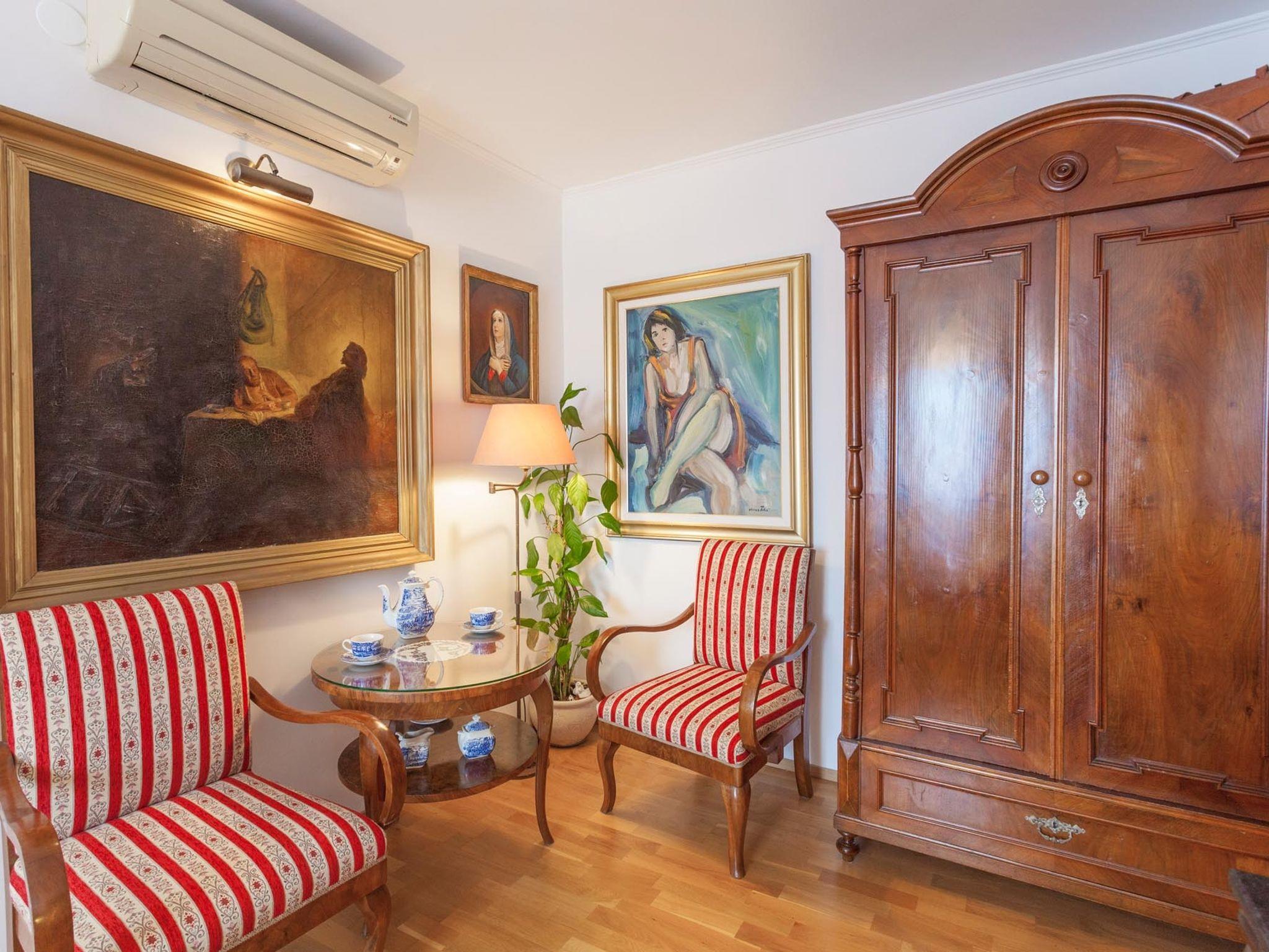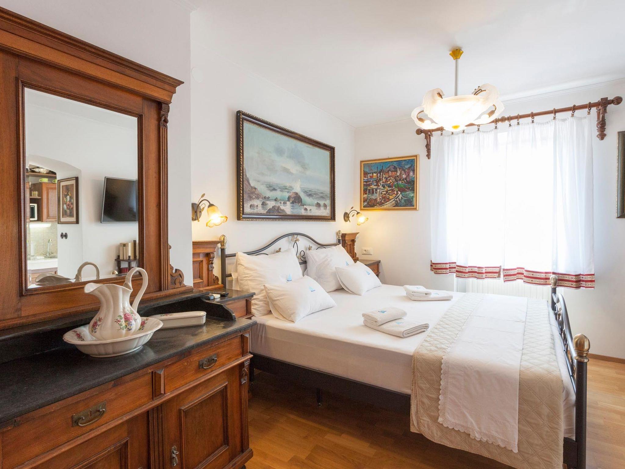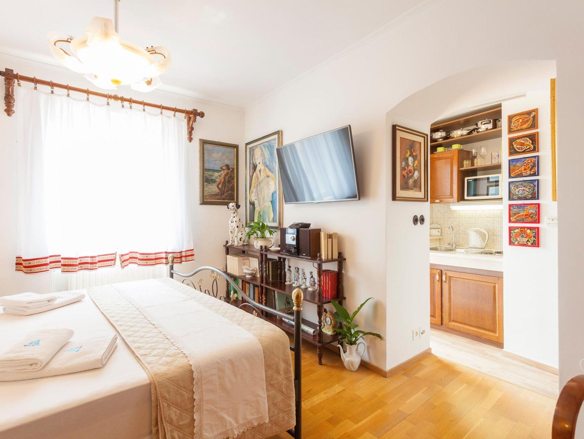 Studio bietet Platz für 2 Gäste. Die Betten sind in Schlafzimmern, die es 1 gibt, innerhalb einer Gesamtfläche von 22m2, angeordnet. Die Gäste haben eine eigene Terrasse zur Verfügung, auf der sie in warmen Sommernächten genießen können. Es ist erlaubt, Speisen auf dem Gemeinschafts-Grill vorzubereiten. In der Unterkunftseinheit besteht die Möglichkeit des Mitbringens von Haustieren, und die Dienstleistung ist im Preis der Unterkunft enthalten. IM PREIS INBEGRIFFEN: Kurtaxe, Endreinigung, Klimatisierung, Zentralheizung, Internet, Haustiere, Kinderbett, Bügeleisen, Bügelbrett, Föhn. Die Verfügbarkeit zusätzlicher Dienstleistungen in Ihrem reservierten Termin und die Preise derselben (falls nicht aufgeführt) müssen im Voraus überprüft werden. Zusätzliche Dienstleistungen die in der Zahlungsaufforderung nicht aufgeführt sind werden direkt beim Vermieter bezahlt, angenommen der Gast nutzt auch diese.