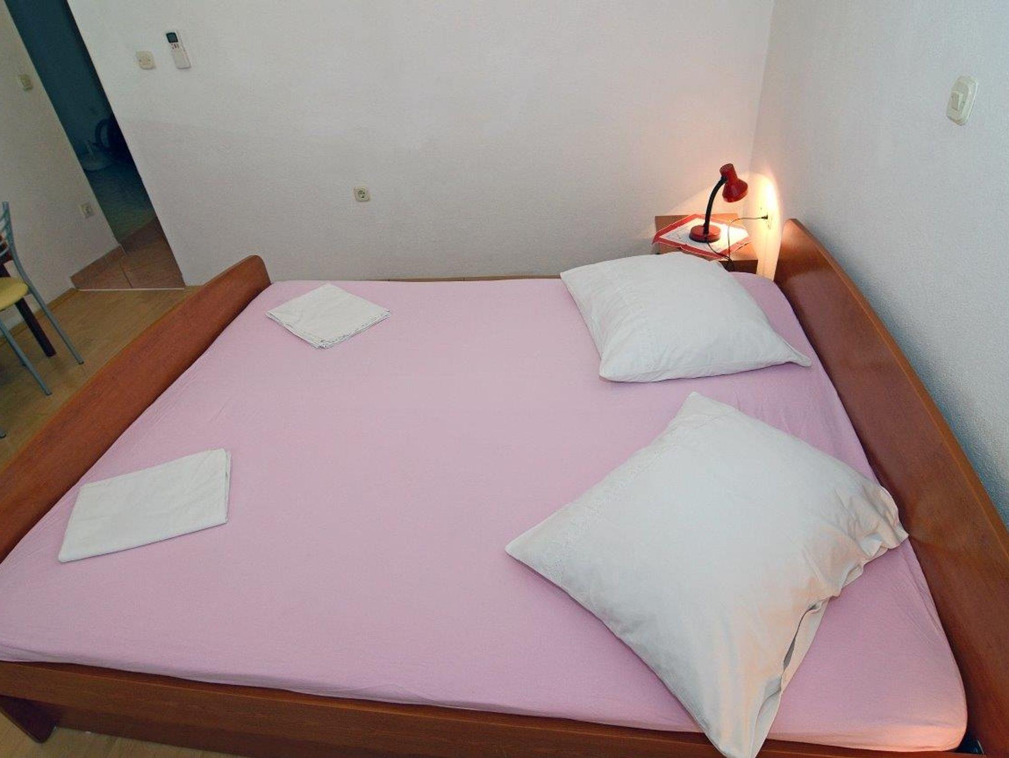 Studio bietet Platz für 2 Gäste. Die Betten sind in Schlafzimmern, die es 1 gibt, innerhalb einer Gesamtfläche von 19m2, angeordnet. Das Studio-Apartment bietet Meerblick. Es ist erlaubt, Speisen auf dem Gemeinschafts-Grill vorzubereiten. Die reservierte Unterkunftseinheit verfügt über einen gemeinsame Terrasse. Räume der gebuchten Unterkunftseinheit werden nicht in eine Ganze verbunden. IM PREIS INBEGRIFFEN: Kurtaxe, Endreinigung, Klimatisierung, Parkplatz, Internet, Bügeleisen, Bügelbrett, Föhn, tragbarer Grill. VERBINDLICHE ZUSÄTZLICHE KOSTEN: Aufzahlung für Kurzaufenthalte (prozentualer Zuschlag pro Nächtigungsanzahl: 30% - 1, 20% - 2, 10% - 3). UNVERBINDLICHE ZUSÄTZLICHE KOSTEN: Zusatzbett (15,00 € pro Nacht). Die Verfügbarkeit zusätzlicher Dienstleistungen in Ihrem reservierten Termin und die Preise derselben (falls nicht aufgeführt) müssen im Voraus überprüft werden. Zusätzliche Dienstleistungen die in der Zahlungsaufforderung nicht aufgeführt sind werden direkt beim Vermieter bezahlt, angenommen der Gast nutzt auch diese. Ermäßigung auf den Grundpreis: Gratistag 14=13 (bei einem Aufenthalt von 14 Tagen oder mehr erhalten Sie einen Gratistag für den Aufenthalt bis 31.12.26).