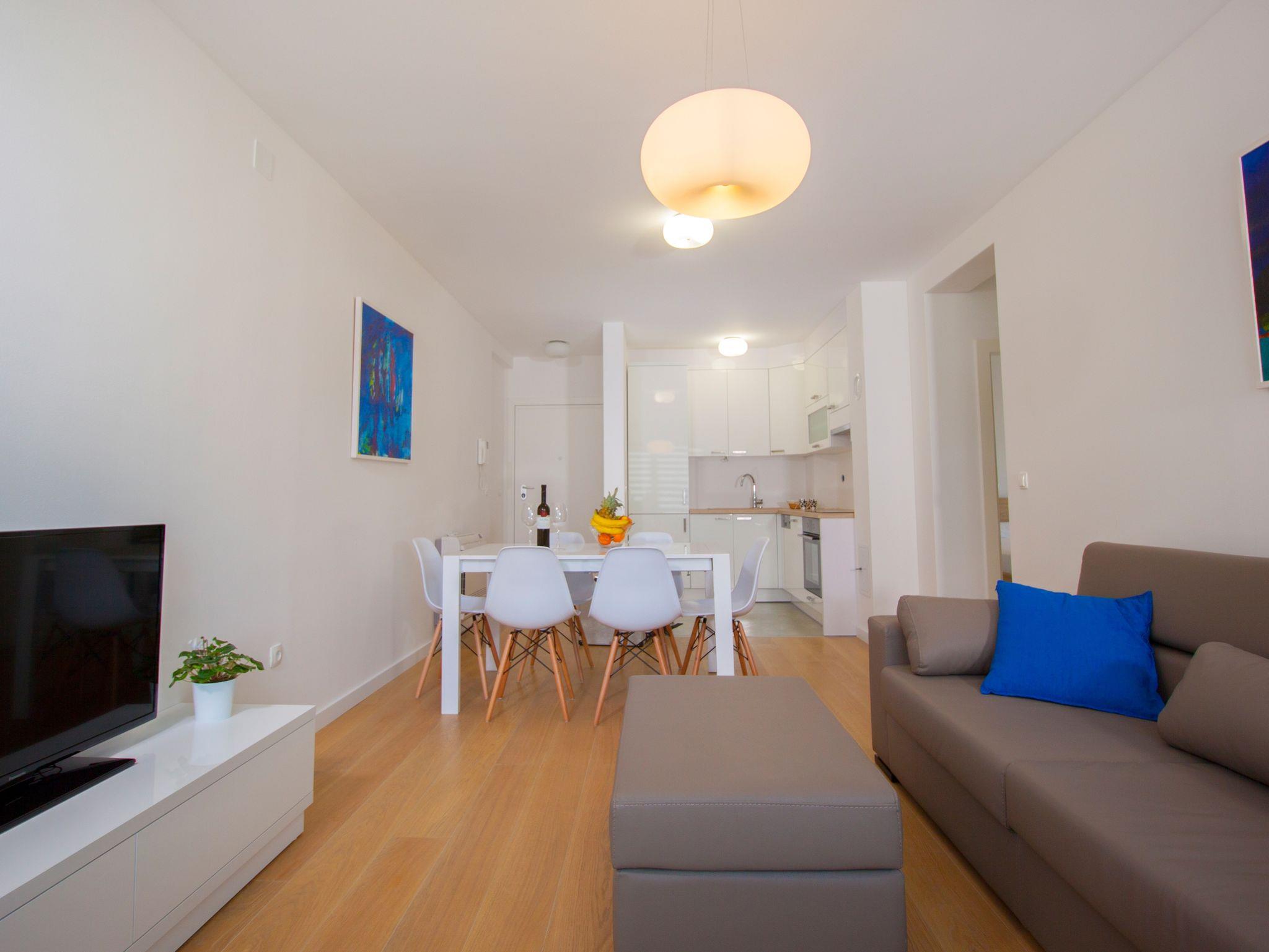 Ferienwohnung bietet Platz für 6 Gäste. Die Betten sind in Schlafzimmern, die es 2 gibt, und in Wohnzimmer, innerhalb einer Gesamtfläche von 46m2, angeordnet. Die Gäste haben einen eigenen Balkon zur Verfügung, auf der sie in warmen Sommernächten genießen können. In der Unterkunftseinheit besteht die Möglichkeit des Mitbringens von Haustieren gegen Aufpreis. IM PREIS INBEGRIFFEN: Kurtaxe, Endreinigung, Klimatisierung, Garage, Internet, Kinderbett, Bügeleisen, Bügelbrett, Föhn. UNVERBINDLICHE ZUSÄTZLICHE KOSTEN: Haustiere (10,00 € pro Nacht). Die Verfügbarkeit zusätzlicher Dienstleistungen in Ihrem reservierten Termin und die Preise derselben (falls nicht aufgeführt) müssen im Voraus überprüft werden. Zusätzliche Dienstleistungen die in der Zahlungsaufforderung nicht aufgeführt sind werden direkt beim Vermieter bezahlt, angenommen der Gast nutzt auch diese.