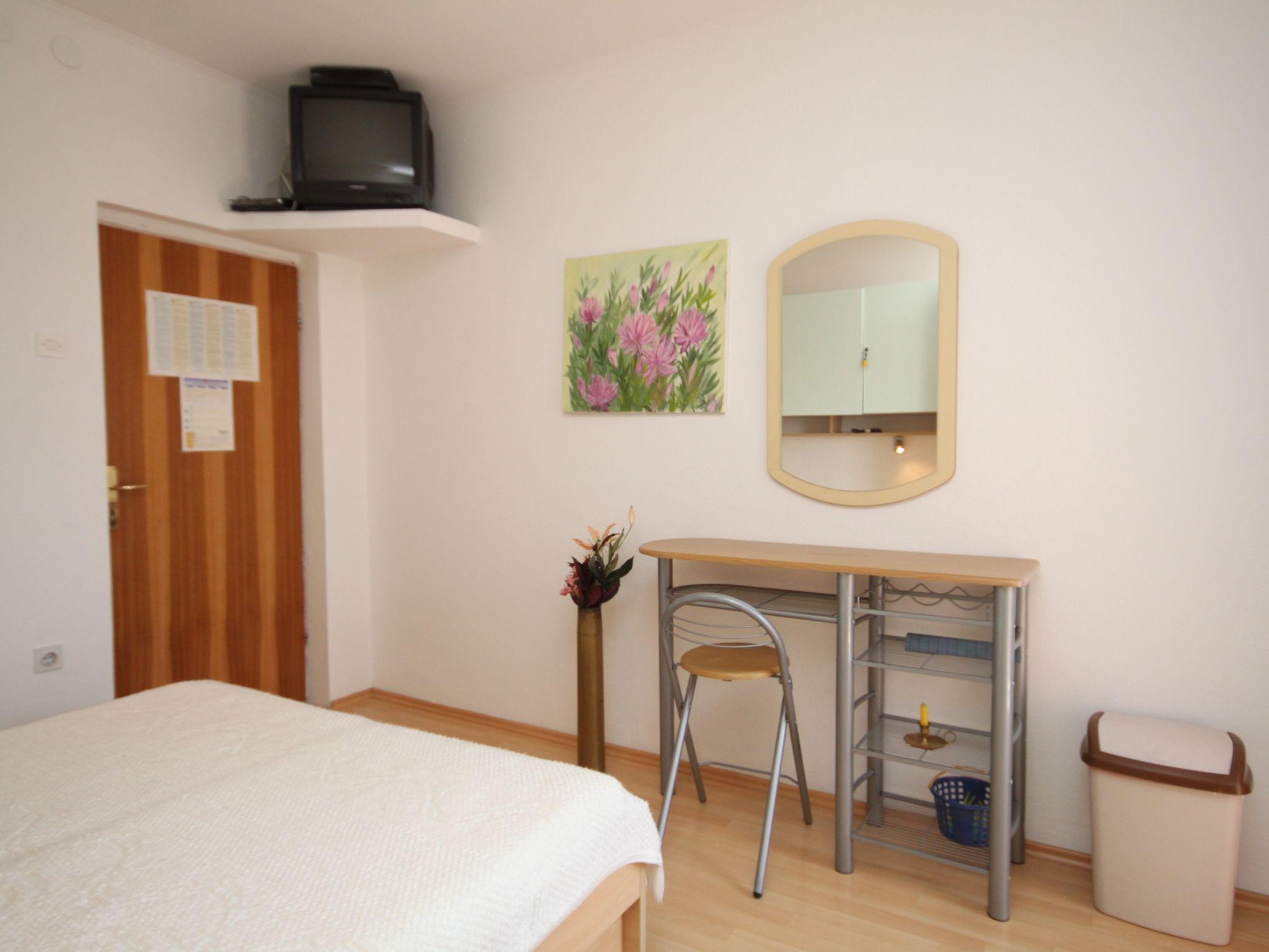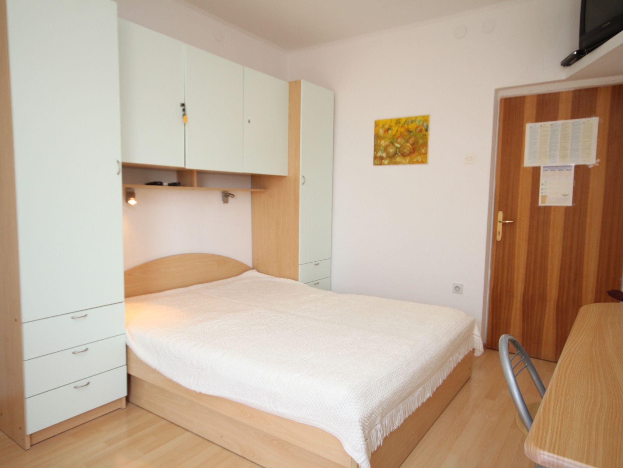 Studio bietet Platz für 2 Gäste. Die Betten sind in Schlafzimmern, die es 1 gibt, innerhalb einer Gesamtfläche von 14m2, angeordnet. Die Gäste haben einen eigenen Balkon zur Verfügung, auf der sie in warmen Sommernächten genießen können. Das Studio-Apartment bietet Meerblick. IM PREIS INBEGRIFFEN: Kurtaxe, Endreinigung, Klimatisierung, Parkplatz, Internet, Bügeleisen, Bügelbrett, Föhn. VERBINDLICHE ZUSÄTZLICHE KOSTEN: Aufzahlung für Kurzaufenthalte (prozentualer Zuschlag pro Nächtigungsanzahl: 30% - 1, 20% - 2, 10% - 3). UNVERBINDLICHE ZUSÄTZLICHE KOSTEN: Zusatzbett (10,00 € pro Nacht). Die Verfügbarkeit zusätzlicher Dienstleistungen in Ihrem reservierten Termin und die Preise derselben (falls nicht aufgeführt) müssen im Voraus überprüft werden. Zusätzliche Dienstleistungen die in der Zahlungsaufforderung nicht aufgeführt sind werden direkt beim Vermieter bezahlt, angenommen der Gast nutzt auch diese.
