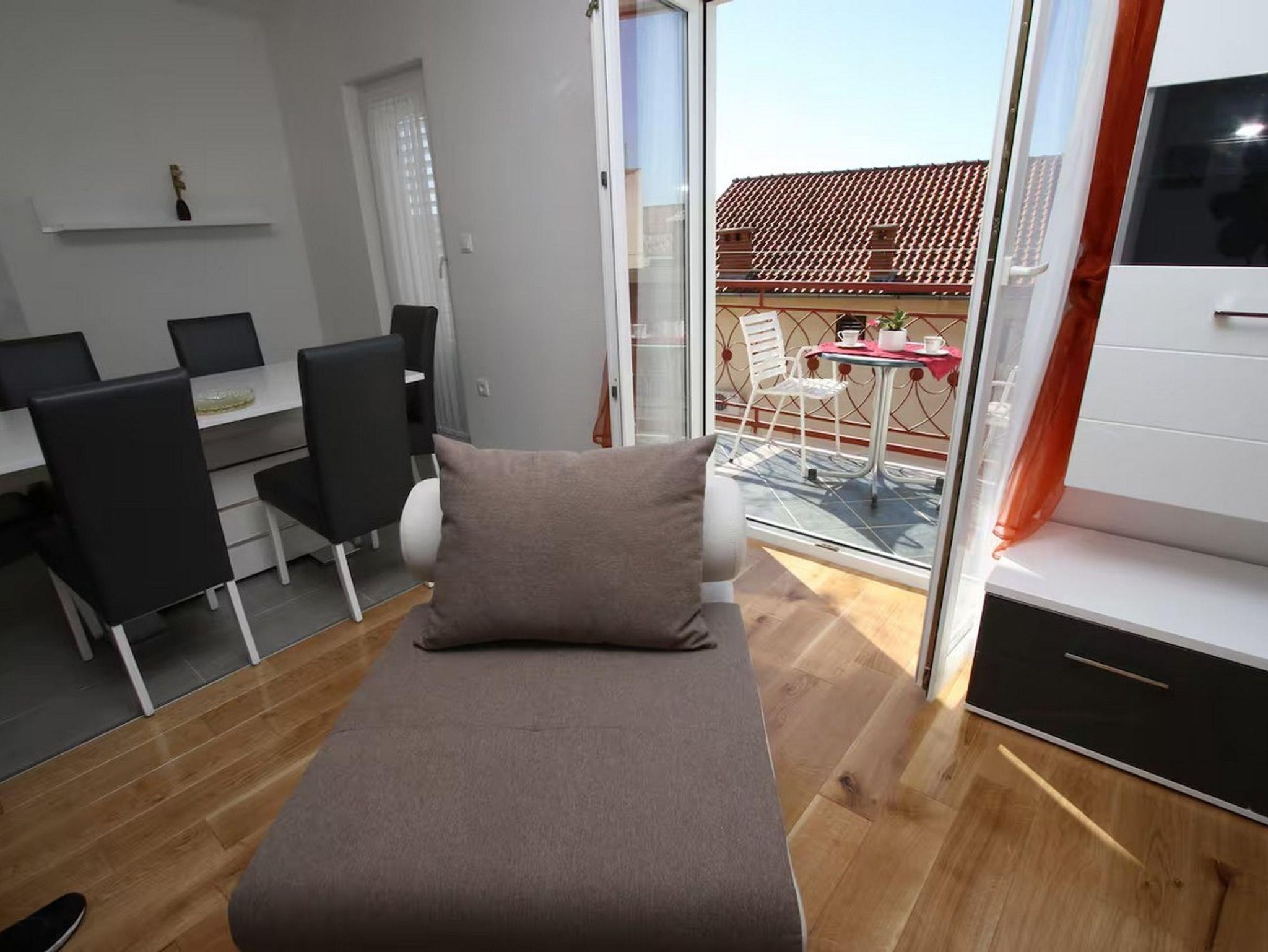 Ferienwohnung bietet Platz für 8 Gäste. Die Betten sind in Schlafzimmern, die es 3 gibt, und in Wohnzimmer, innerhalb einer Gesamtfläche von 86m2, angeordnet. Die Gäste haben einen eigenen Balkon zur Verfügung, auf der sie in warmen Sommernächten genießen können. In der Unterkunftseinheit besteht die Möglichkeit des Mitbringens von Haustieren, und die Dienstleistung ist im Preis der Unterkunft enthalten. IM PREIS INBEGRIFFEN: Kurtaxe, Endreinigung, Klimatisierung, Parkplatz, Internet, Haustiere, Bügeleisen, Bügelbrett, Föhn. Die Verfügbarkeit zusätzlicher Dienstleistungen in Ihrem reservierten Termin und die Preise derselben (falls nicht aufgeführt) müssen im Voraus überprüft werden. Zusätzliche Dienstleistungen die in der Zahlungsaufforderung nicht aufgeführt sind werden direkt beim Vermieter bezahlt, angenommen der Gast nutzt auch diese. Ermäßigung auf den Grundpreis: Gratistag 14=13 (bei einem Aufenthalt von 14 Tagen oder mehr erhalten Sie einen Gratistag für den Aufenthalt bis 31.12.26).