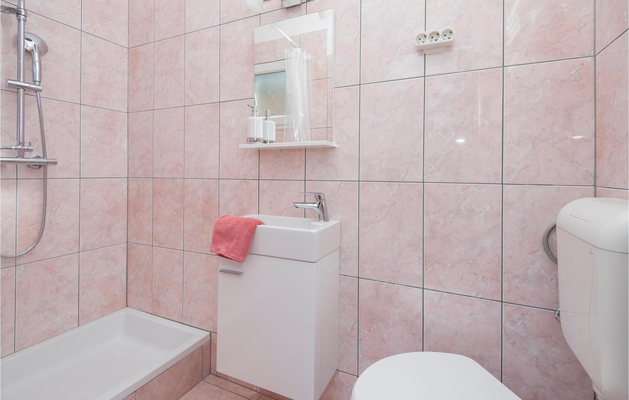Badeværelse 7m2 (nr. 1) - WC. Varmt og koldt vand. Bruser og badekar