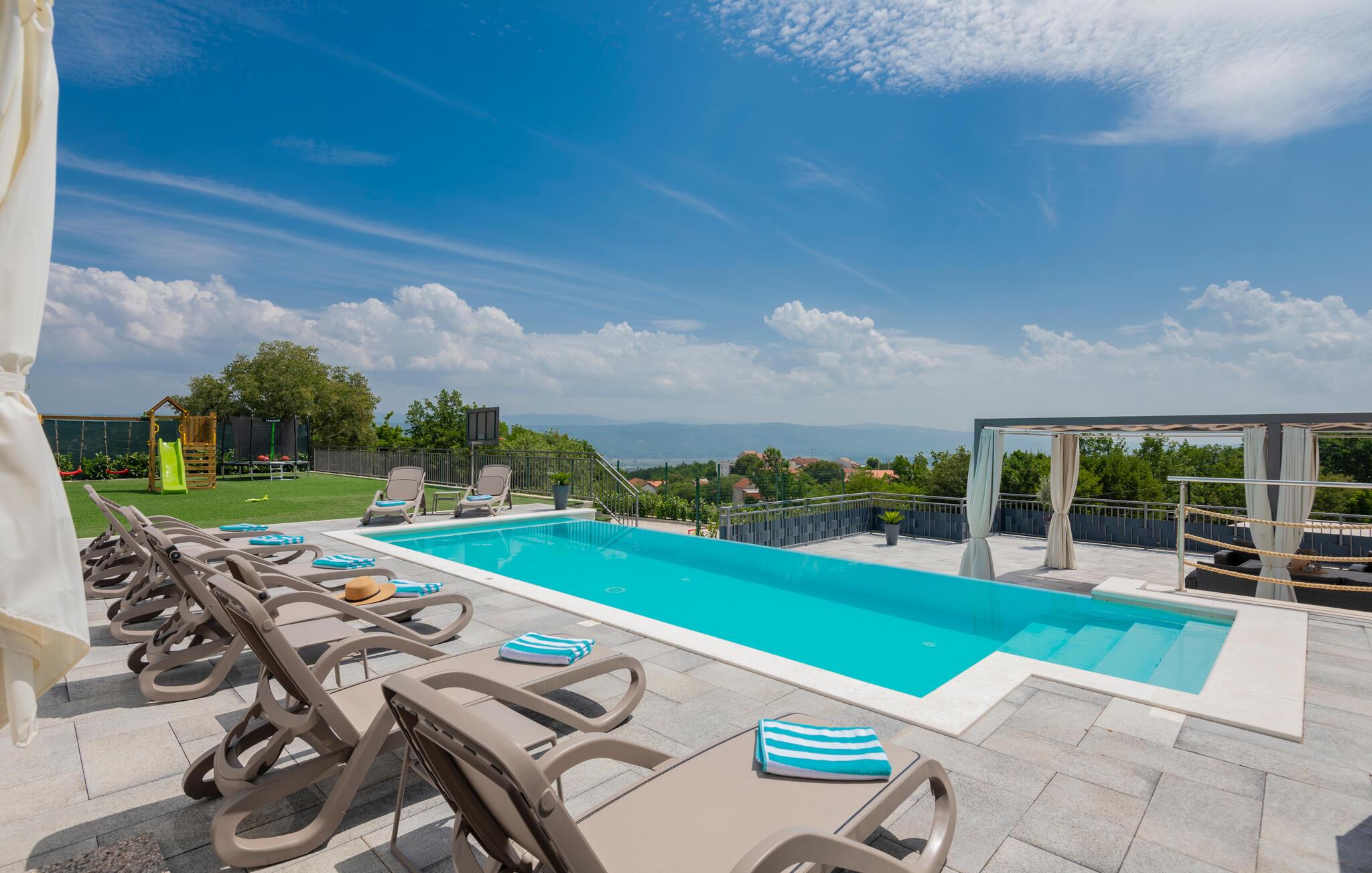 Stort og smagfuldt feriehus med swimmingpool og fantastisk panoramaudsigt over landskabet.