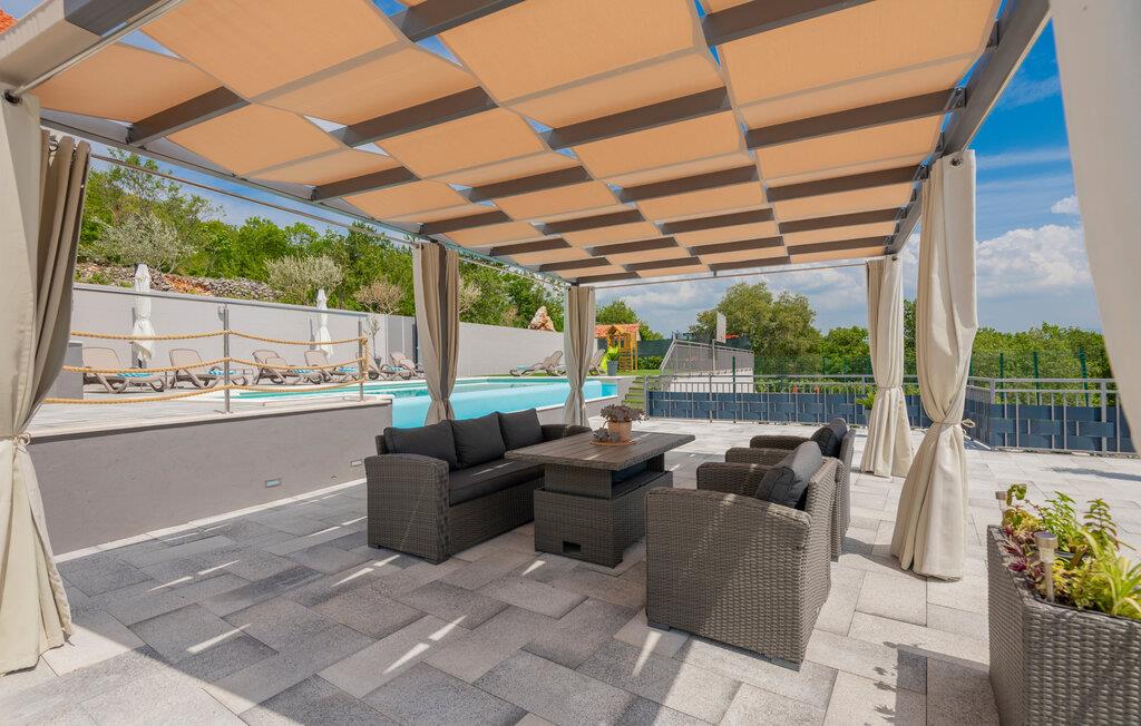 Tag en pause fra den hektiske hverdag og slap af i dette feriehus i to etager. Her kan I tilbringe en uforglemmelig tid sammen med familier, I rejser sammen med, eller en gruppe af venner. Takket være husets indretning og komplette udstyr kan I opdele etagerne og dermed også nyde lidt privatliv. De lyse og kærligt indrettede værelser lader jer ikke mangle noget og er det ideelle udgangspunkt for en god ferie. I kommer også til at tilbringe meget tid udenfor. To overdækkede terrasser indbyder til grill- eller cocktailaftener, mens solterrassen med pool er ideel for såvel solglade som også store og små badeløver og badenymfer.