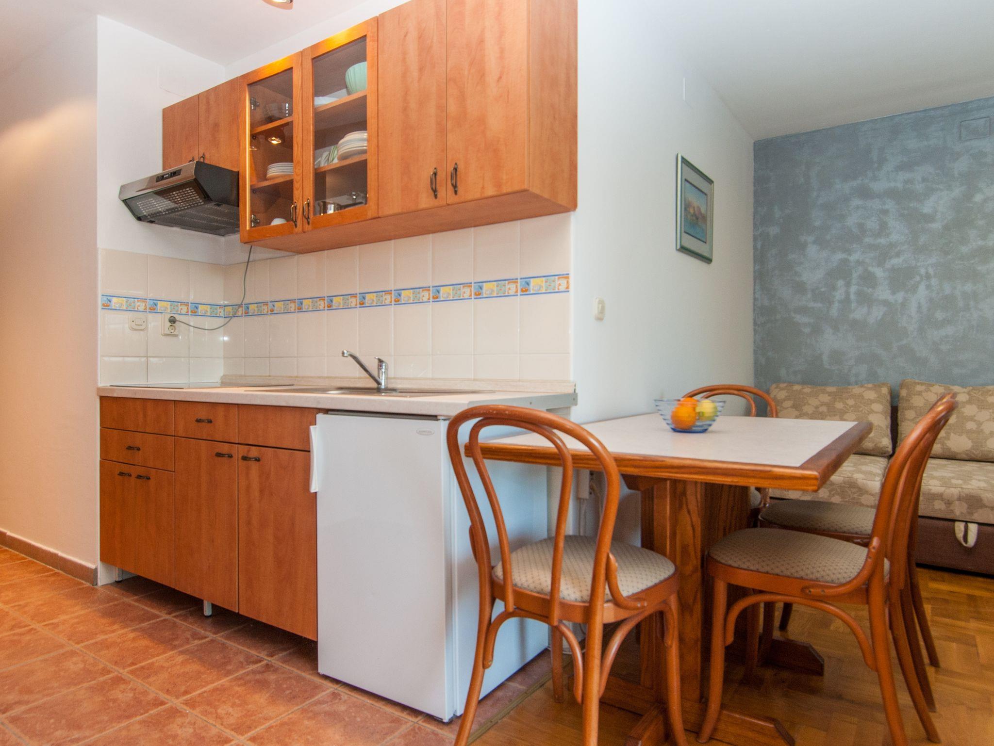 Ferienwohnung bietet Platz für 3 Gäste. Die Betten sind in Schlafzimmern, die es 1 gibt, und in Wohnzimmer, innerhalb einer Gesamtfläche von 27m2, angeordnet. Die Gäste haben eine eigene Terrasse zur Verfügung, auf der sie in warmen Sommernächten genießen können. Das Apartment bietet Meerblick. Es ist erlaubt, Speisen auf dem Gemeinschafts-Grill vorzubereiten. IM PREIS INBEGRIFFEN: Kurtaxe, Endreinigung, Klimatisierung, Parkplatz, Internet, Kinderbett, Bügeleisen, Bügelbrett, Föhn. VERBINDLICHE ZUSÄTZLICHE KOSTEN: Aufzahlung für Kurzaufenthalte (prozentualer Zuschlag pro Nächtigungsanzahl: 30% - 1, 20% - 2, 10% - 3). UNVERBINDLICHE ZUSÄTZLICHE KOSTEN: Bootsanlegeplatz (10,00 € pro Nacht). Die Verfügbarkeit zusätzlicher Dienstleistungen in Ihrem reservierten Termin und die Preise derselben (falls nicht aufgeführt) müssen im Voraus überprüft werden. Zusätzliche Dienstleistungen die in der Zahlungsaufforderung nicht aufgeführt sind werden direkt beim Vermieter bezahlt, angenommen der Gast nutzt auch diese. Ermäßigung auf den Grundpreis: Gratistag 21=19 (bei einem Aufenthalt von 21 Tagen oder mehr erhalten Sie 2 Gratistage für den Aufenthalt bis 31.12.26).