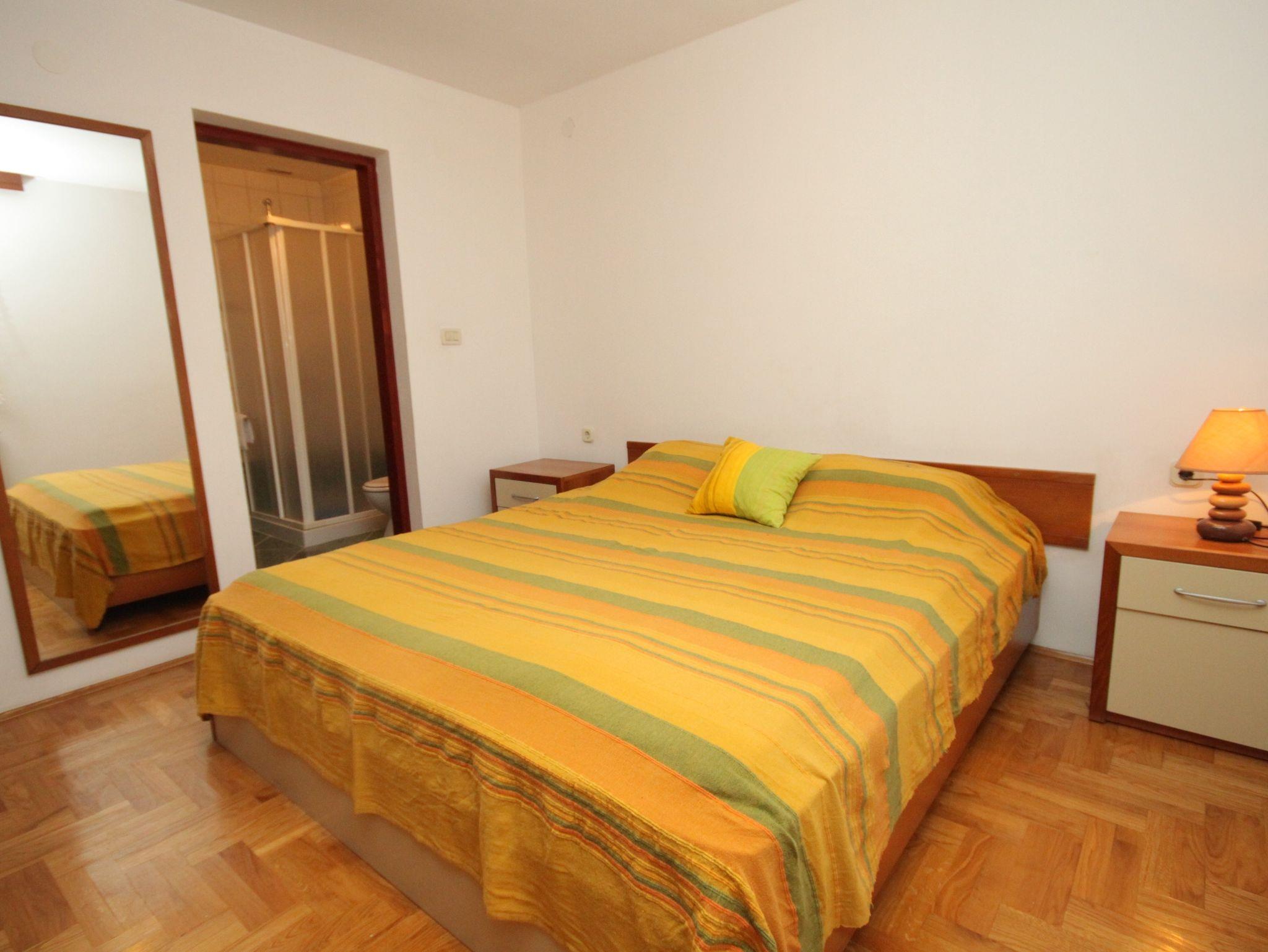 Ferienwohnung bietet Platz für 5 Gäste. Die Betten sind in Schlafzimmern, die es 2 gibt, innerhalb einer Gesamtfläche von 49m2, angeordnet. Die Gäste haben eine eigene Terrasse zur Verfügung, auf der sie in warmen Sommernächten genießen können. Es ist erlaubt, Speisen auf dem Gemeinschafts-Grill vorzubereiten. In der Unterkunftseinheit besteht die Möglichkeit des Mitbringens von Haustieren gegen Aufpreis. IM PREIS INBEGRIFFEN: Kurtaxe, Endreinigung, Klimatisierung, Parkplatz, Internet, Bügeleisen, Bügelbrett, Föhn. VERBINDLICHE ZUSÄTZLICHE KOSTEN: Aufzahlung für Kurzaufenthalte (prozentualer Zuschlag pro Nächtigungsanzahl: 30% - 1, 20% - 2, 10% - 3). UNVERBINDLICHE ZUSÄTZLICHE KOSTEN: Zentralheizung (5,00 € pro Nacht), Haustiere (10,00 € pro Nacht), Zusatzbett (5,00 € pro Nacht). Die Verfügbarkeit zusätzlicher Dienstleistungen in Ihrem reservierten Termin und die Preise derselben (falls nicht aufgeführt) müssen im Voraus überprüft werden. Zusätzliche Dienstleistungen die in der Zahlungsaufforderung nicht aufgeführt sind werden direkt beim Vermieter bezahlt, angenommen der Gast nutzt auch diese. Ermäßigung auf den Grundpreis: Gratistag 14=13 (bei einem Aufenthalt von 14 Tagen oder mehr erhalten Sie einen Gratistag für den Aufenthalt bis 31.12.26).
