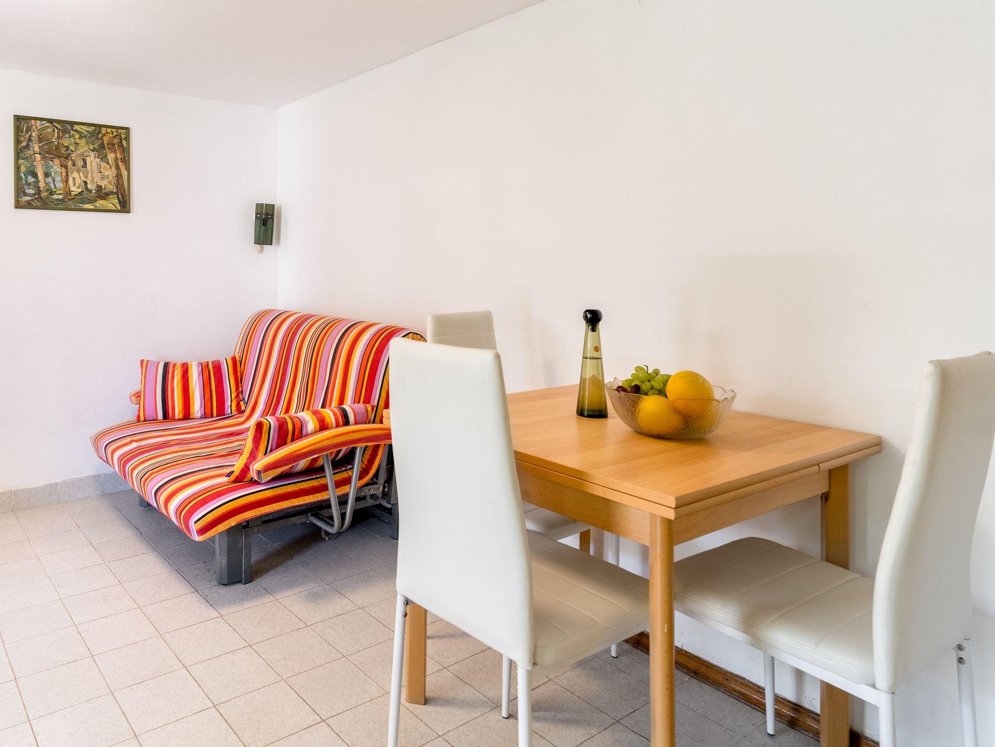 Studio bietet Platz für 2 Gäste. Die Betten sind in Schlafzimmern, die es 1 gibt, innerhalb einer Gesamtfläche von 31m2, angeordnet. Die Gäste haben eine eigene Terrasse zur Verfügung, auf der sie in warmen Sommernächten genießen können. Es ist erlaubt, Speisen auf dem Gemeinschafts-Grill vorzubereiten. In der Unterkunftseinheit besteht die Möglichkeit des Mitbringens von Haustieren gegen Aufpreis. IM PREIS INBEGRIFFEN: Kurtaxe, Endreinigung, Klimatisierung, Parkplatz, Internet, Kinderbett, Bügeleisen, Bügelbrett, Föhn. VERBINDLICHE ZUSÄTZLICHE KOSTEN: Aufzahlung für Kurzaufenthalte (prozentualer Zuschlag pro Nächtigungsanzahl: 30% - 1, 20% - 2, 10% - 3). UNVERBINDLICHE ZUSÄTZLICHE KOSTEN: Boot (180,00 € pro Nacht), Haustiere (3,00 € pro Nacht). Die Verfügbarkeit zusätzlicher Dienstleistungen in Ihrem reservierten Termin und die Preise derselben (falls nicht aufgeführt) müssen im Voraus überprüft werden. Zusätzliche Dienstleistungen die in der Zahlungsaufforderung nicht aufgeführt sind werden direkt beim Vermieter bezahlt, angenommen der Gast nutzt auch diese. Ermäßigung auf den Grundpreis: Gratistag 21=19 (bei einem Aufenthalt von 21 Tagen oder mehr erhalten Sie 2 Gratistage für den Aufenthalt bis 31.12.26).