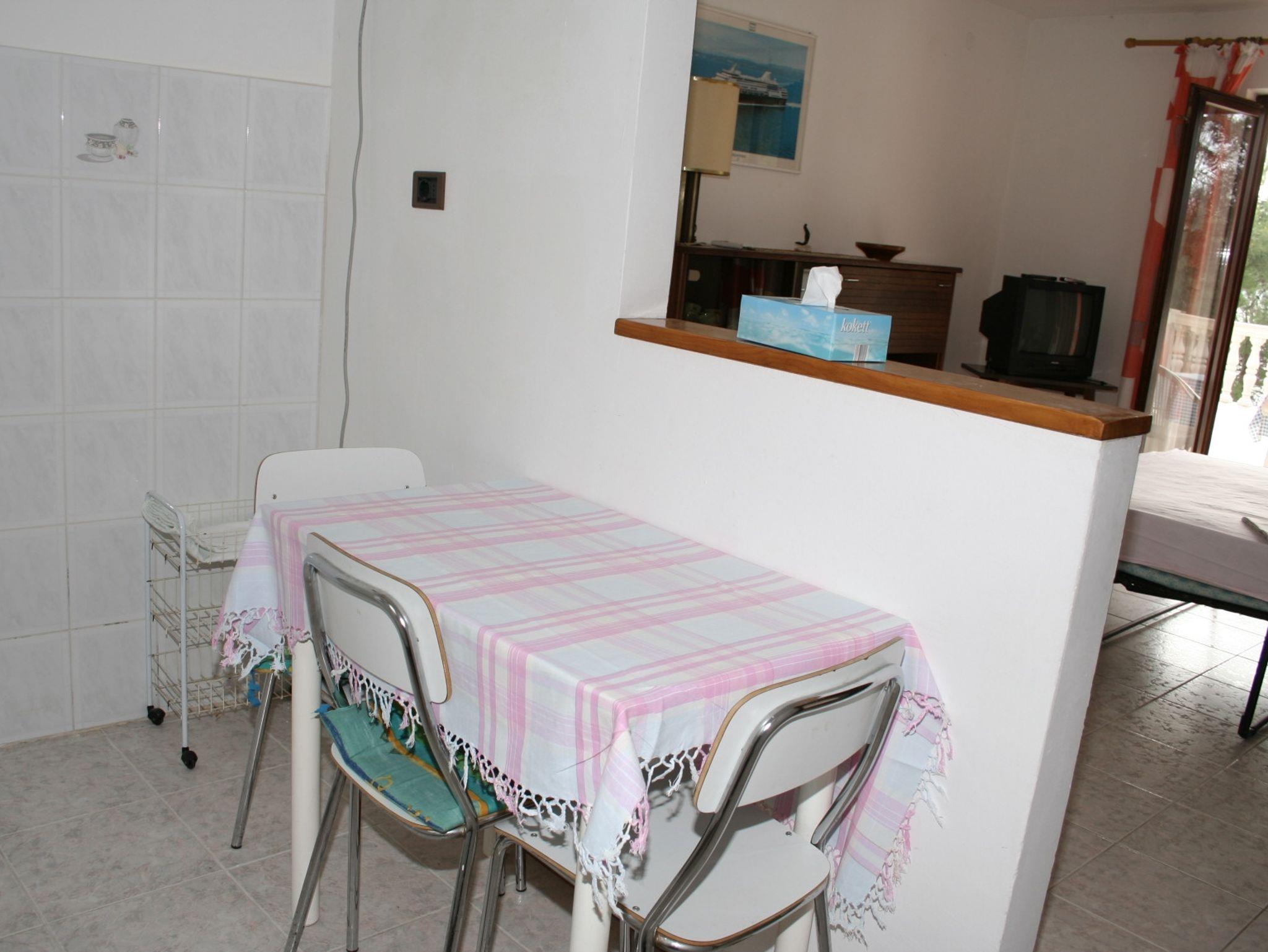 Ferienwohnung bietet Platz für 4 Gäste. Die Betten sind in Schlafzimmern, die es 1 gibt, und in Wohnzimmer, innerhalb einer Gesamtfläche von 45m2, angeordnet. Die Gäste haben eine eigene Terrasse zur Verfügung, auf der sie in warmen Sommernächten genießen können. Das Apartment bietet Meerblick. Es ist erlaubt, Speisen auf dem Gemeinschafts-Grill vorzubereiten. In der Unterkunftseinheit besteht die Möglichkeit des Mitbringens von Haustieren gegen Aufpreis. IM PREIS INBEGRIFFEN: Kurtaxe, Endreinigung, Klimatisierung, Parkplatz, Internet, Bügeleisen, Bügelbrett. VERBINDLICHE ZUSÄTZLICHE KOSTEN: Aufzahlung für Kurzaufenthalte (prozentualer Zuschlag pro Nächtigungsanzahl: 30% - 1, 20% - 2, 10% - 3). UNVERBINDLICHE ZUSÄTZLICHE KOSTEN: Bootsanlegeplatz (10,00 € pro Nacht), Haustiere (5,00 € pro Nacht). Die Verfügbarkeit zusätzlicher Dienstleistungen in Ihrem reservierten Termin und die Preise derselben (falls nicht aufgeführt) müssen im Voraus überprüft werden. Zusätzliche Dienstleistungen die in der Zahlungsaufforderung nicht aufgeführt sind werden direkt beim Vermieter bezahlt, angenommen der Gast nutzt auch diese.