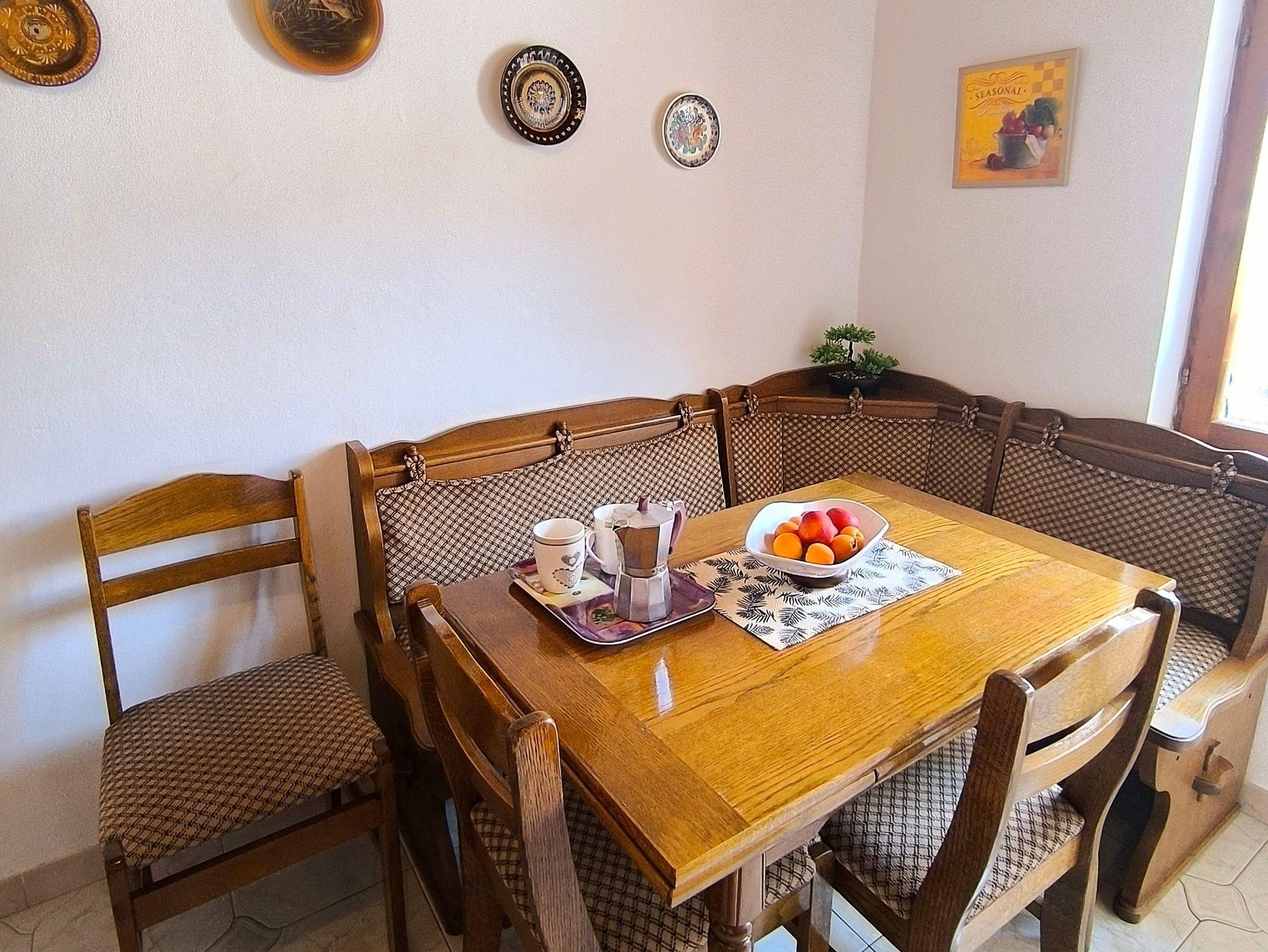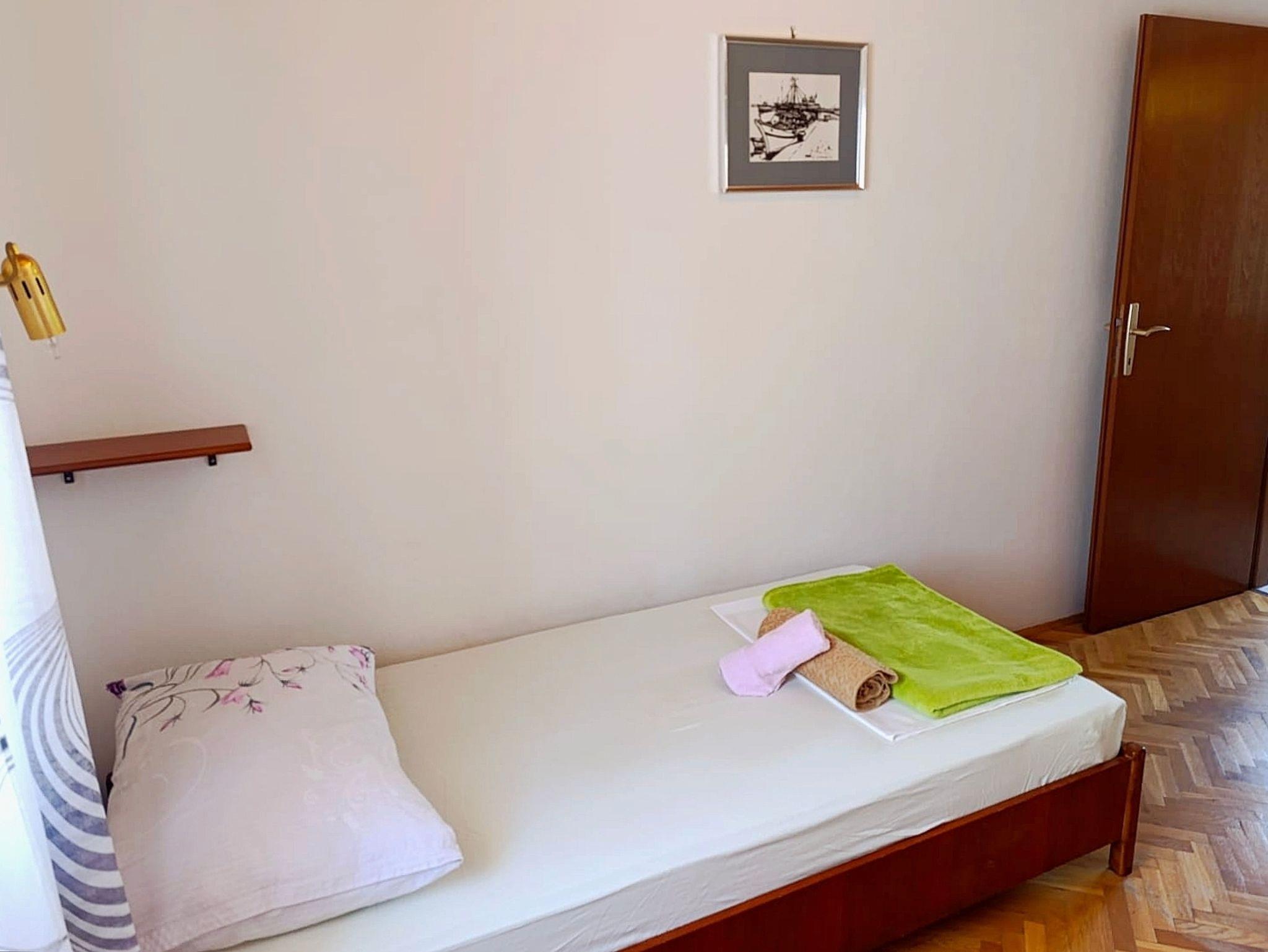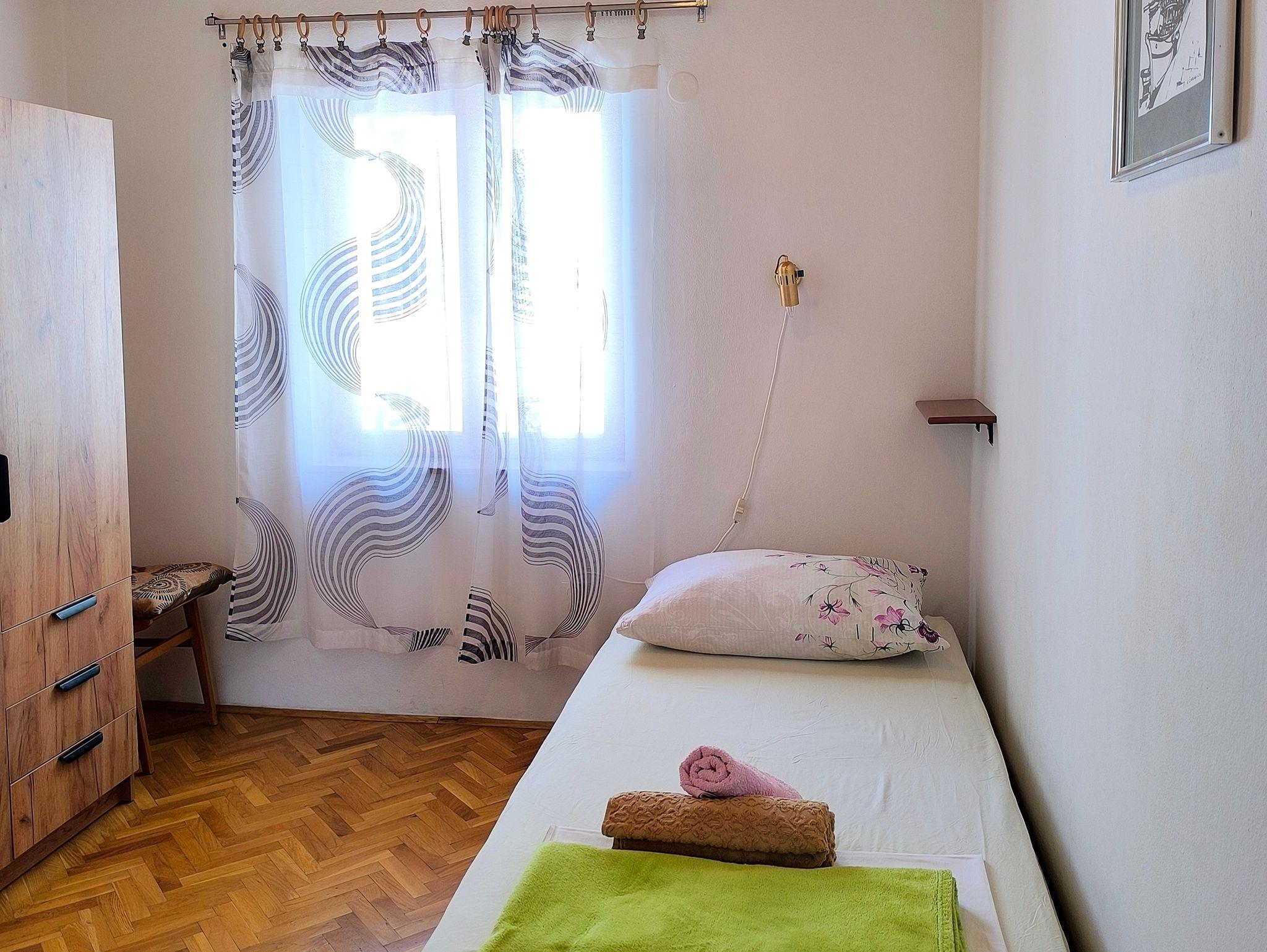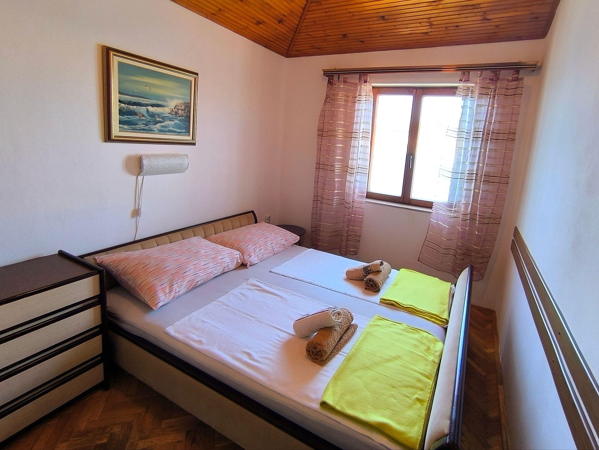 Ferienwohnung bietet Platz für 5 Gäste. Die Betten sind in Schlafzimmern, die es 3 gibt, innerhalb einer Gesamtfläche von 53m2, angeordnet. Die Gäste haben eine eigene Terrasse zur Verfügung, auf der sie in warmen Sommernächten genießen können. Das Apartment bietet Meerblick. IM PREIS INBEGRIFFEN: Kurtaxe, Endreinigung, Klimatisierung, Parkplatz, Internet, Bügeleisen, Bügelbrett, Föhn. VERBINDLICHE ZUSÄTZLICHE KOSTEN: Aufzahlung für Kurzaufenthalte (prozentualer Zuschlag pro Nächtigungsanzahl: 30% - 1, 20% - 2, 10% - 3). UNVERBINDLICHE ZUSÄTZLICHE KOSTEN: Bootsanlegeplatz (12,00 € pro Nacht). Die Verfügbarkeit zusätzlicher Dienstleistungen in Ihrem reservierten Termin und die Preise derselben (falls nicht aufgeführt) müssen im Voraus überprüft werden. Zusätzliche Dienstleistungen die in der Zahlungsaufforderung nicht aufgeführt sind werden direkt beim Vermieter bezahlt, angenommen der Gast nutzt auch diese. Ermäßigung auf den Grundpreis: Gratistag 28=25 (bei einem Aufenthalt von 28 oder mehr Tagen erhalten Sie 3 kostenlose Tage für den Aufenthalt bis 31.12.26).