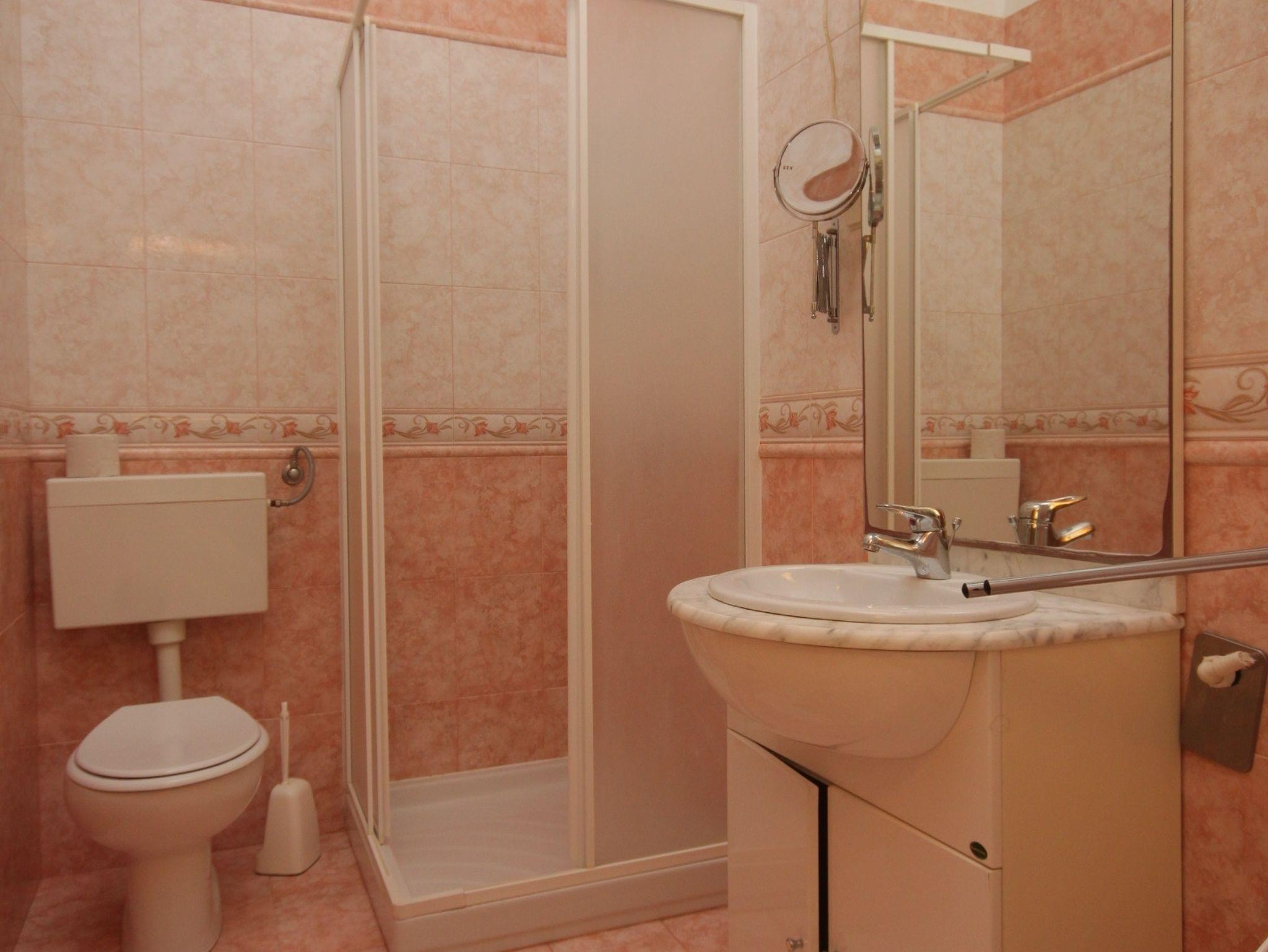 Studio bietet Platz für 2 Gäste. Die Betten sind in Schlafzimmern, die es 1 gibt, innerhalb einer Gesamtfläche von 26m2, angeordnet. Die Gäste haben eine eigene Terrasse zur Verfügung, auf der sie in warmen Sommernächten genießen können. Das Studio-Apartment bietet Meerblick. Es ist erlaubt, Speisen auf dem Gemeinschafts-Grill vorzubereiten. IM PREIS INBEGRIFFEN: Kurtaxe, Endreinigung, Parkplatz, Internet. VERBINDLICHE ZUSÄTZLICHE KOSTEN: Aufzahlung für Kurzaufenthalte (prozentualer Zuschlag pro Nächtigungsanzahl: 30% - 1, 20% - 2, 10% - 3). UNVERBINDLICHE ZUSÄTZLICHE KOSTEN: Klimatisierung (5,00 € pro Nacht), Zusatzbett (7,00 € pro Nacht). Die Verfügbarkeit zusätzlicher Dienstleistungen in Ihrem reservierten Termin und die Preise derselben (falls nicht aufgeführt) müssen im Voraus überprüft werden. Zusätzliche Dienstleistungen die in der Zahlungsaufforderung nicht aufgeführt sind werden direkt beim Vermieter bezahlt, angenommen der Gast nutzt auch diese.