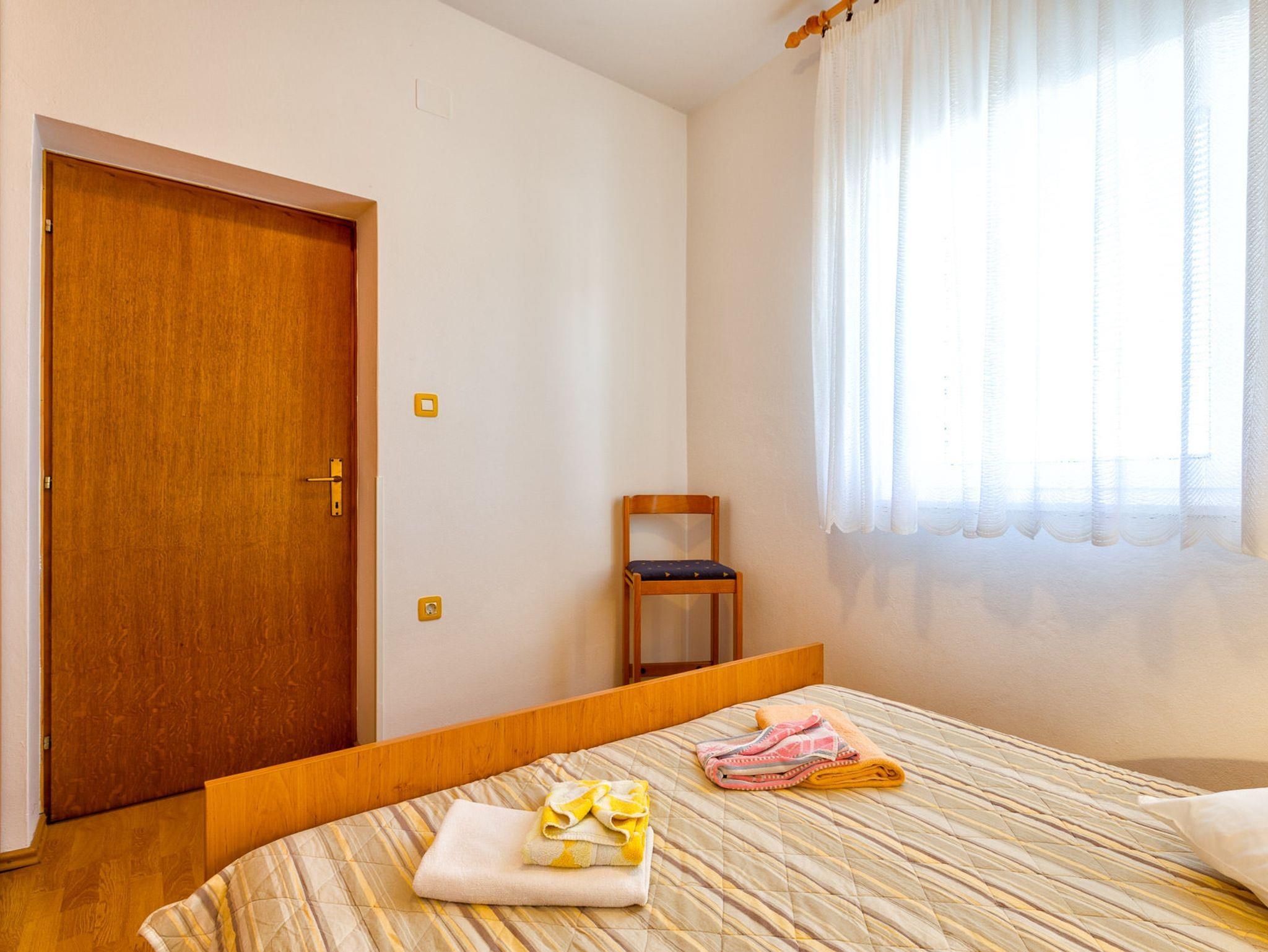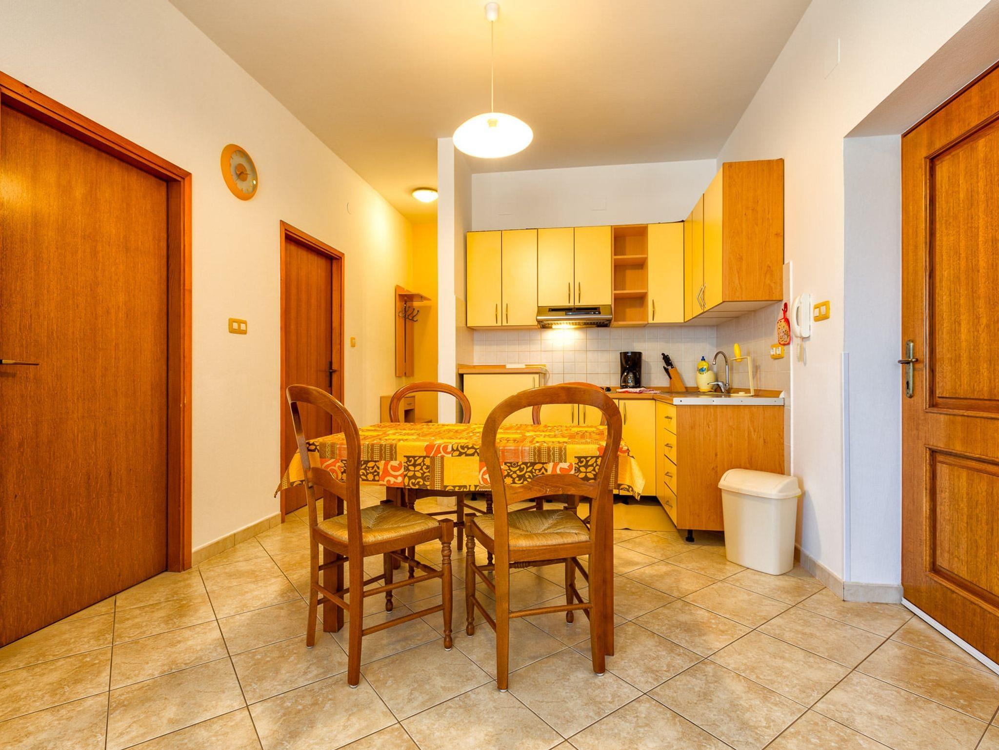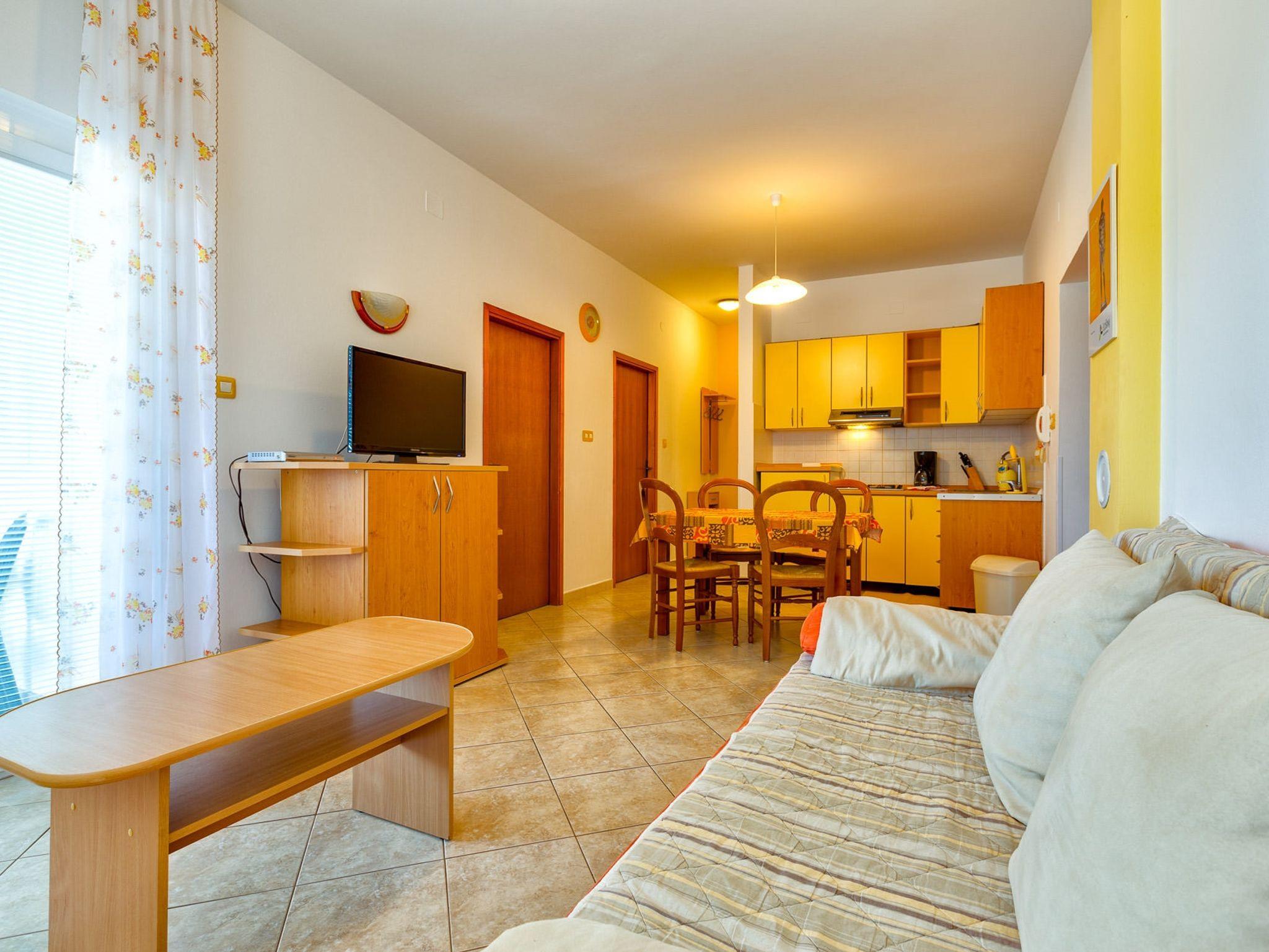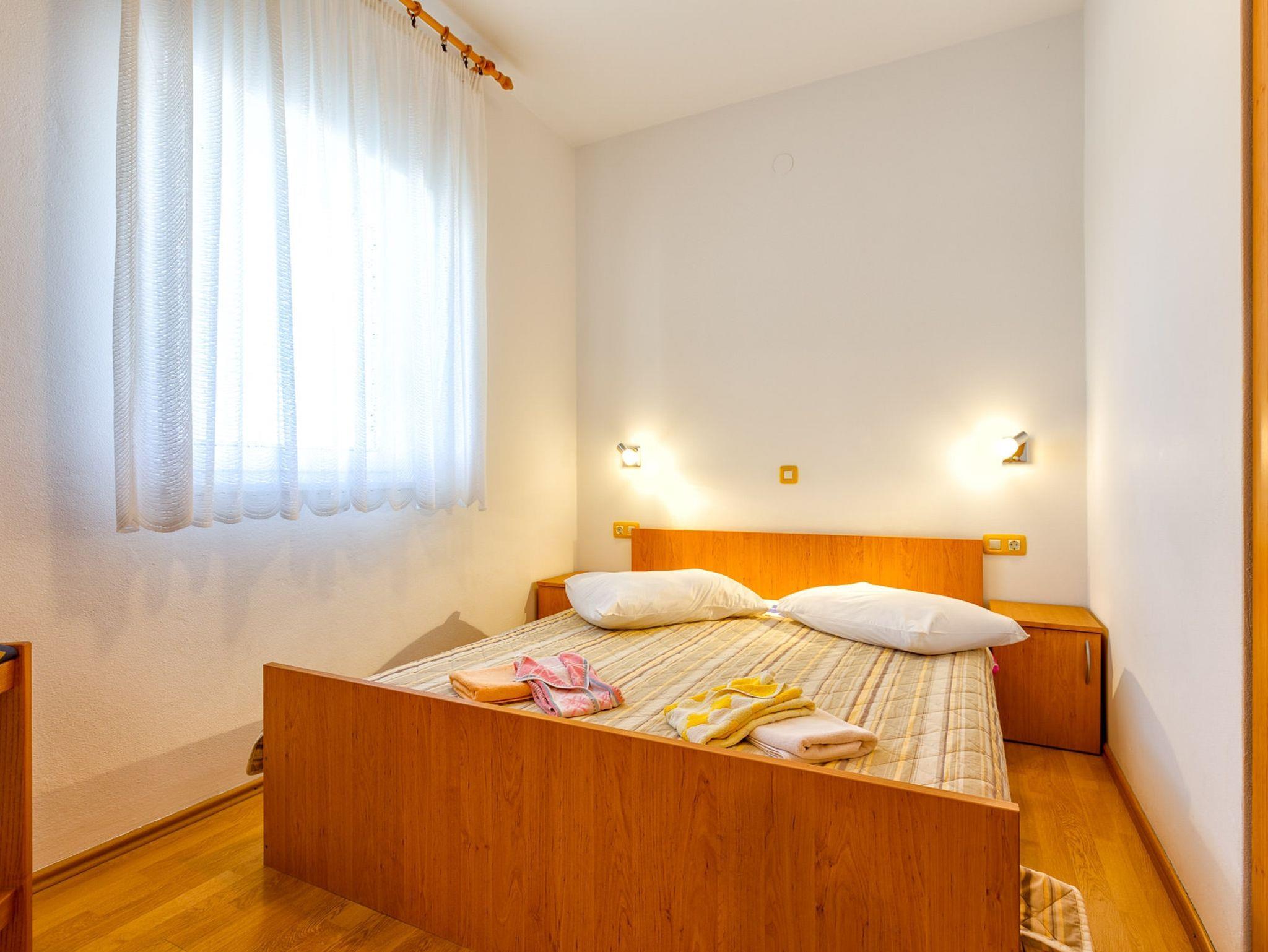 Ferienwohnung bietet Platz für 4 Gäste. Die Betten sind in Schlafzimmern, die es 2 gibt, innerhalb einer Gesamtfläche von 49m2, angeordnet. Die Gäste haben eine eigene Terrasse zur Verfügung, auf der sie in warmen Sommernächten genießen können. Das Apartment bietet Meerblick. Es ist erlaubt, Speisen auf dem Gemeinschafts-Grill vorzubereiten. In der Unterkunftseinheit besteht die Möglichkeit des Mitbringens von Haustieren gegen Aufpreis. IM PREIS INBEGRIFFEN: Kurtaxe, Endreinigung, Klimatisierung, Parkplatz, Internet, Wäschewaschen, Bügeleisen, Bügelbrett, Föhn. VERBINDLICHE ZUSÄTZLICHE KOSTEN: Aufzahlung für Kurzaufenthalte (prozentualer Zuschlag pro Nächtigungsanzahl: 30% - 1, 20% - 2, 10% - 3). UNVERBINDLICHE ZUSÄTZLICHE KOSTEN: Haustiere (25,00 € pro Nacht), Zusatzbett (25,00 € pro Nacht). Die Verfügbarkeit zusätzlicher Dienstleistungen in Ihrem reservierten Termin und die Preise derselben (falls nicht aufgeführt) müssen im Voraus überprüft werden. Zusätzliche Dienstleistungen die in der Zahlungsaufforderung nicht aufgeführt sind werden direkt beim Vermieter bezahlt, angenommen der Gast nutzt auch diese. Ermäßigung auf den Grundpreis: Gratistag 14=13 (bei einem Aufenthalt von 14 Tagen oder mehr erhalten Sie einen Gratistag für den Aufenthalt bis 31.12.26).