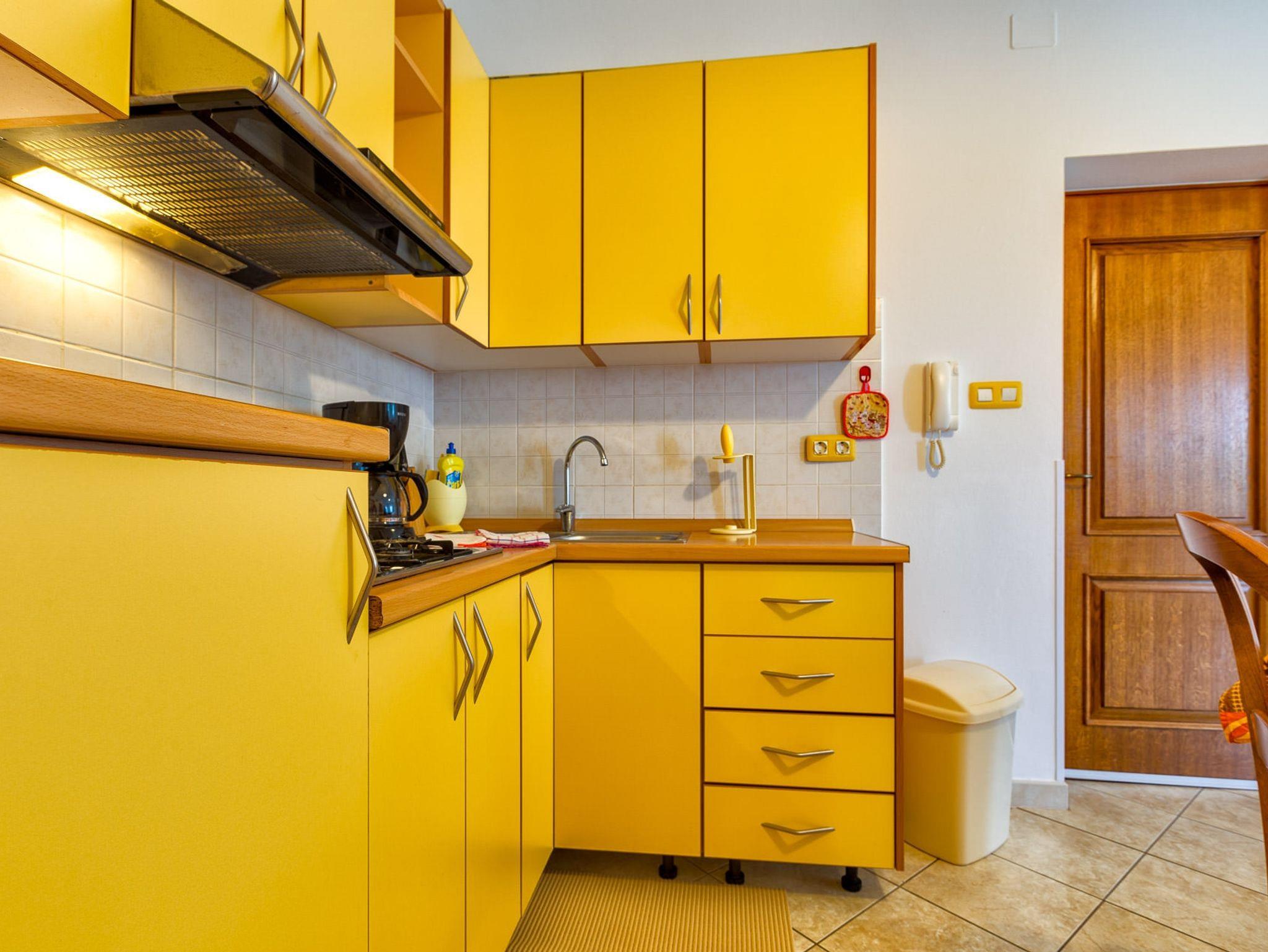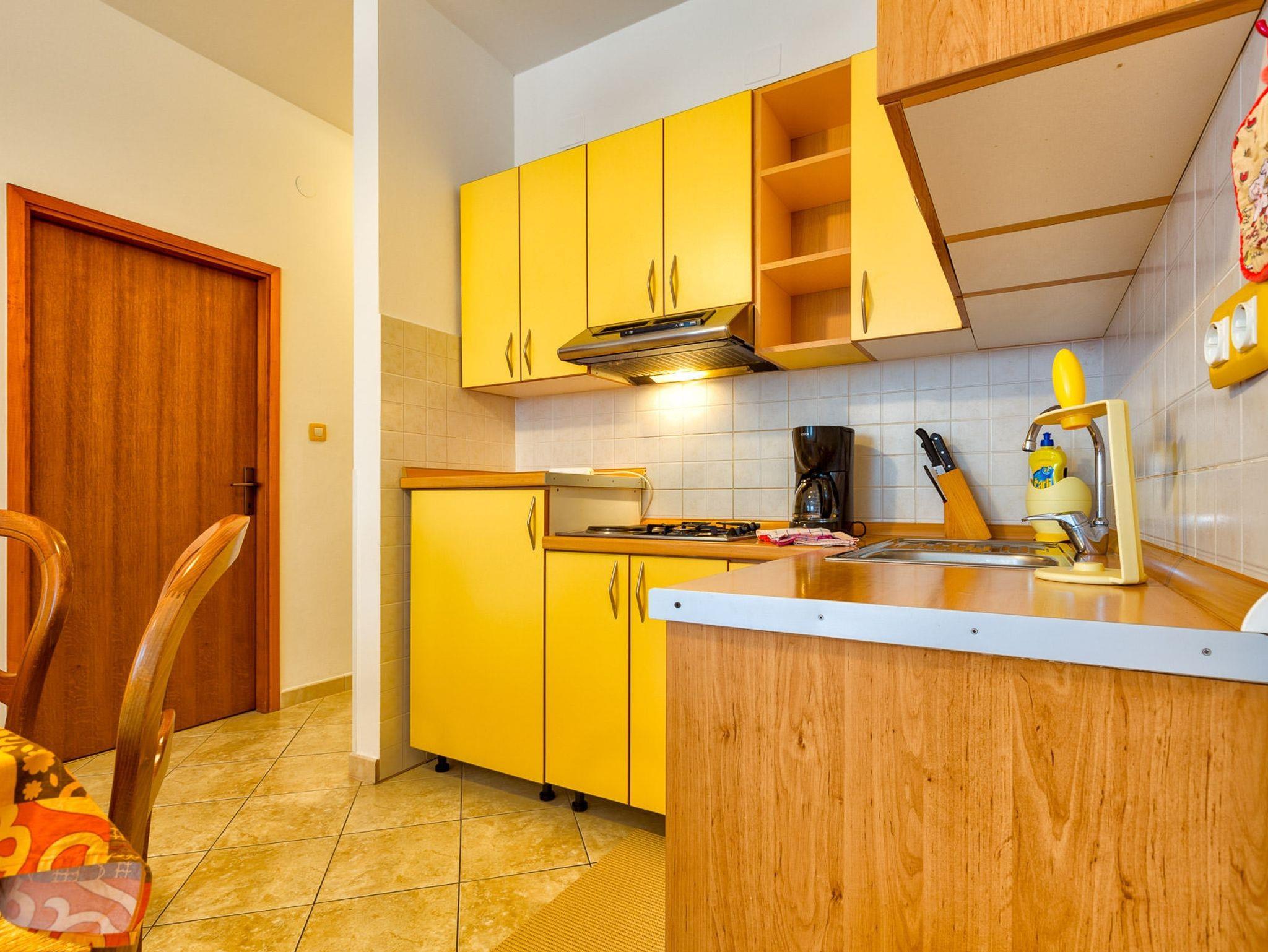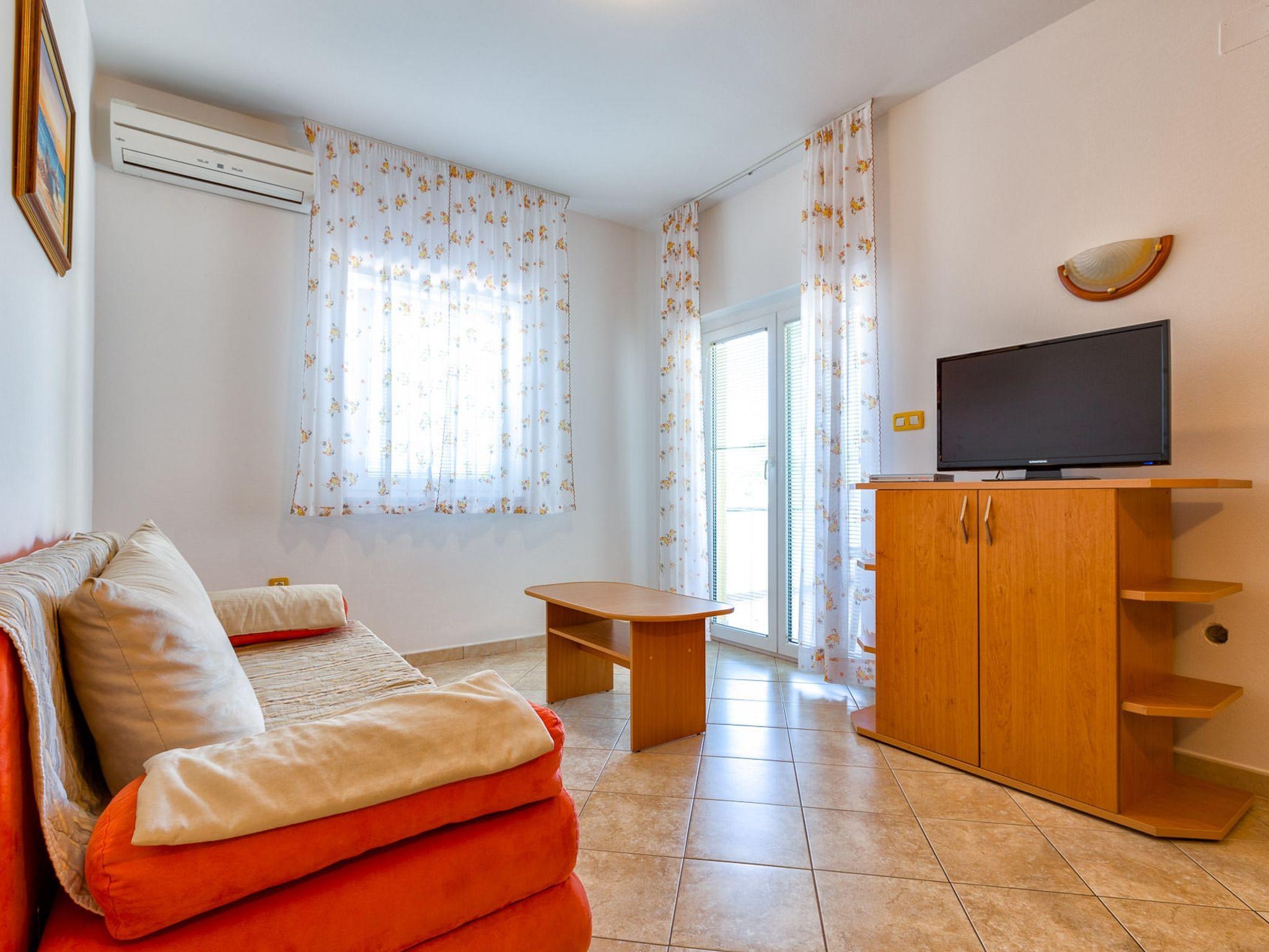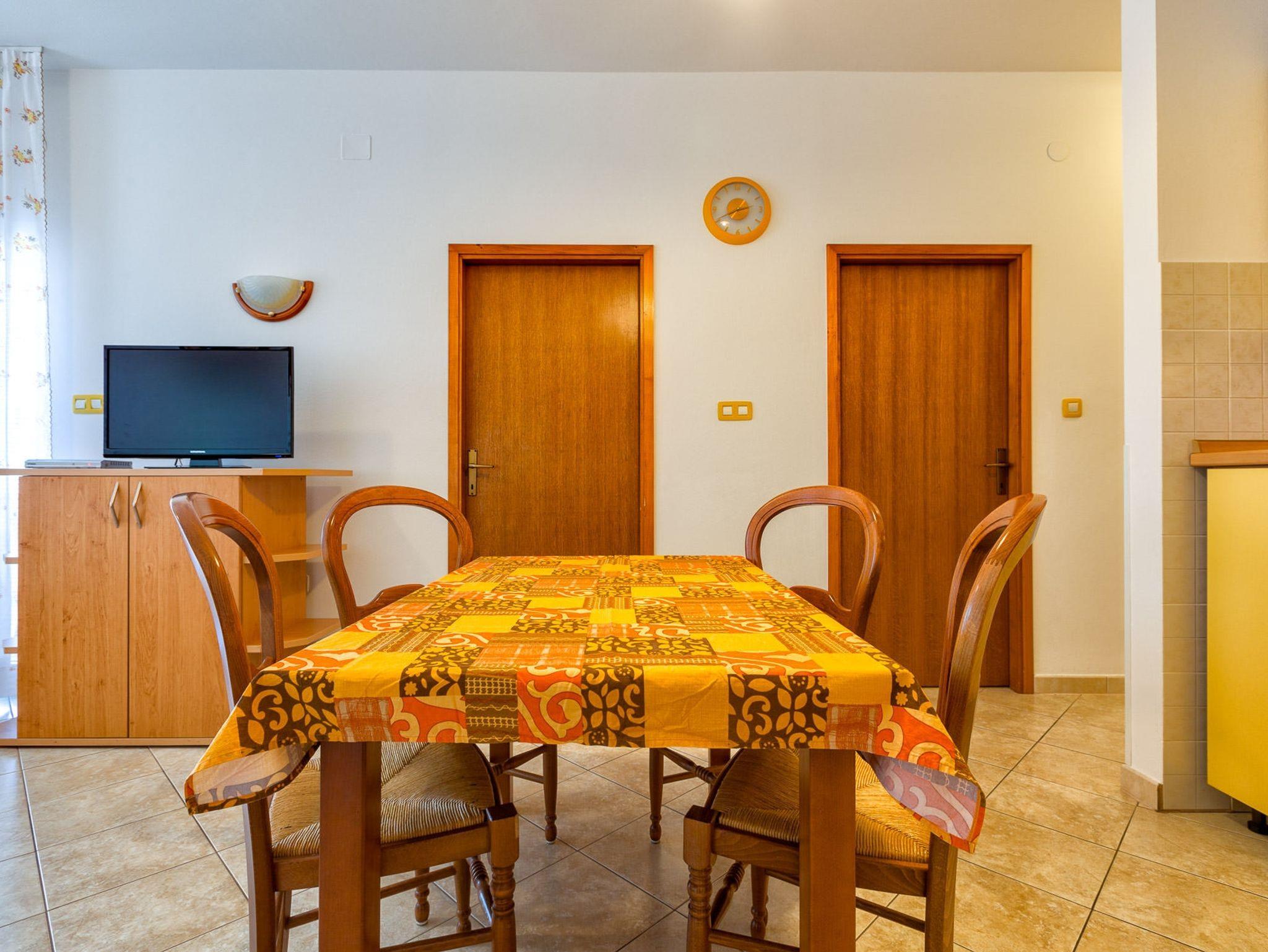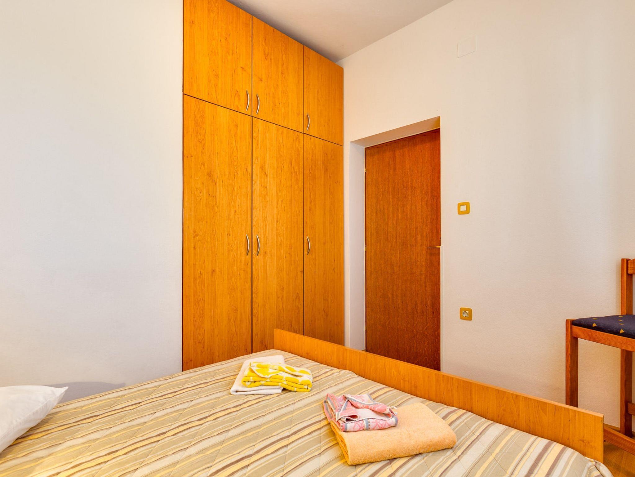 Ferienwohnung bietet Platz für 4 Gäste. Die Betten sind in Schlafzimmern, die es 2 gibt, innerhalb einer Gesamtfläche von 49m2, angeordnet. Die Gäste haben eine eigene Terrasse zur Verfügung, auf der sie in warmen Sommernächten genießen können. Das Apartment bietet Meerblick. Es ist erlaubt, Speisen auf dem Gemeinschafts-Grill vorzubereiten. In der Unterkunftseinheit besteht die Möglichkeit des Mitbringens von Haustieren gegen Aufpreis. IM PREIS INBEGRIFFEN: Kurtaxe, Endreinigung, Klimatisierung, Parkplatz, Internet, Wäschewaschen, Bügeleisen, Bügelbrett, Föhn. VERBINDLICHE ZUSÄTZLICHE KOSTEN: Aufzahlung für Kurzaufenthalte (prozentualer Zuschlag pro Nächtigungsanzahl: 30% - 1, 20% - 2, 10% - 3). UNVERBINDLICHE ZUSÄTZLICHE KOSTEN: Haustiere (25,00 € pro Nacht), Zusatzbett (25,00 € pro Nacht). Die Verfügbarkeit zusätzlicher Dienstleistungen in Ihrem reservierten Termin und die Preise derselben (falls nicht aufgeführt) müssen im Voraus überprüft werden. Zusätzliche Dienstleistungen die in der Zahlungsaufforderung nicht aufgeführt sind werden direkt beim Vermieter bezahlt, angenommen der Gast nutzt auch diese. Ermäßigung auf den Grundpreis: Gratistag 14=13 (bei einem Aufenthalt von 14 Tagen oder mehr erhalten Sie einen Gratistag für den Aufenthalt bis 31.12.26).